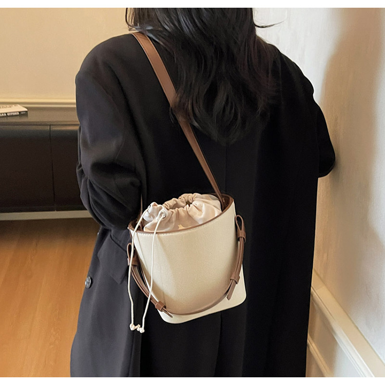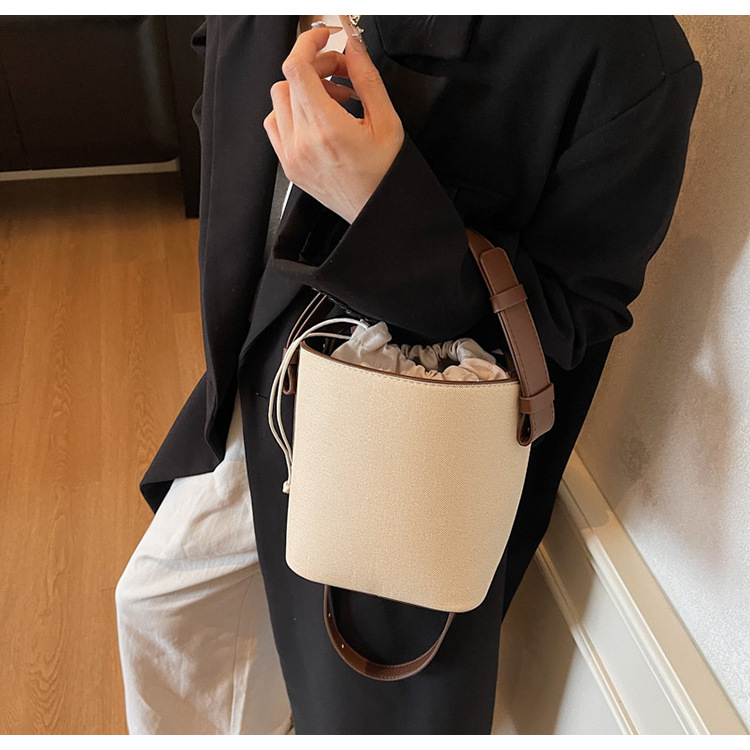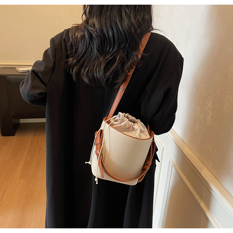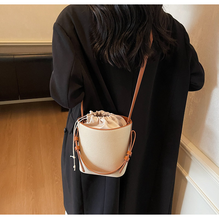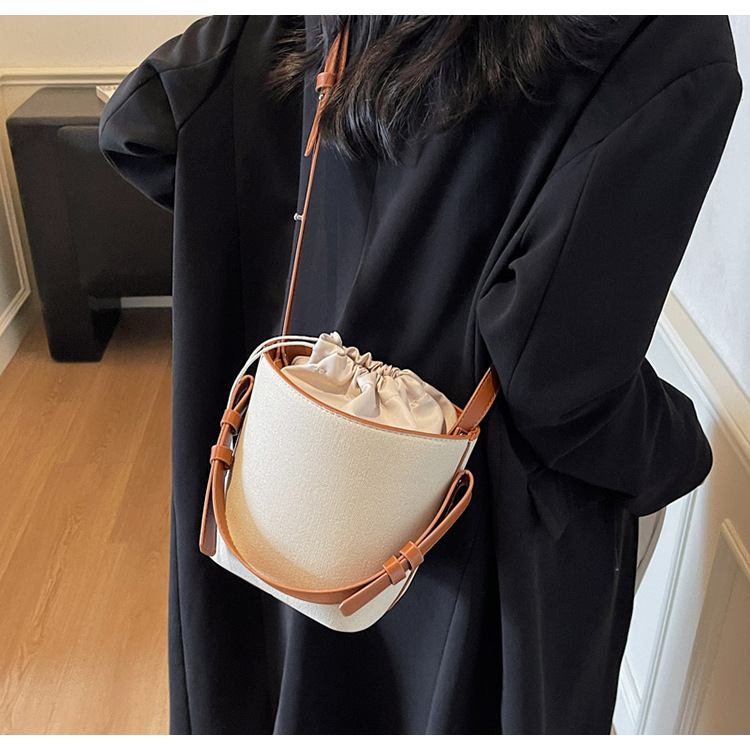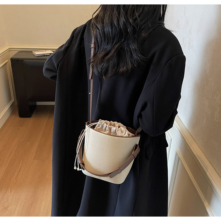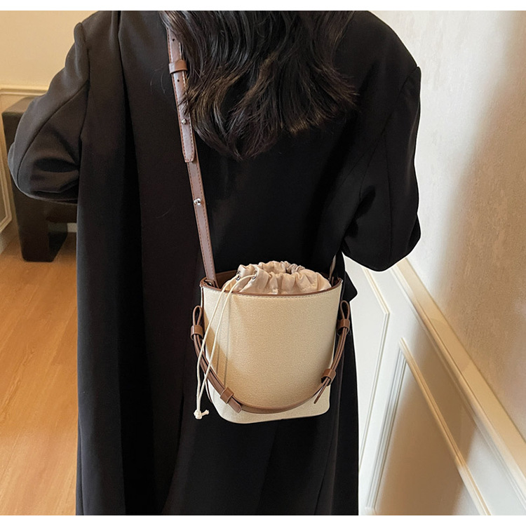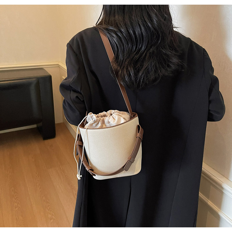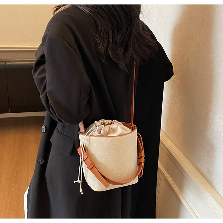 2025 nueva bolsa de cubo de lona de color de contraste para mujeres de alto nivel nicho de diseño de viaje de hombro portátil bolso de mano