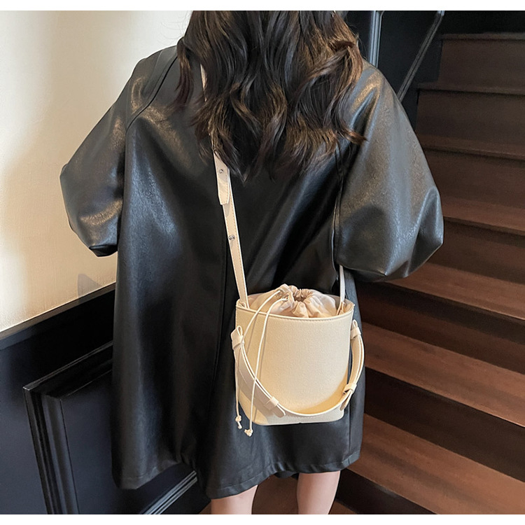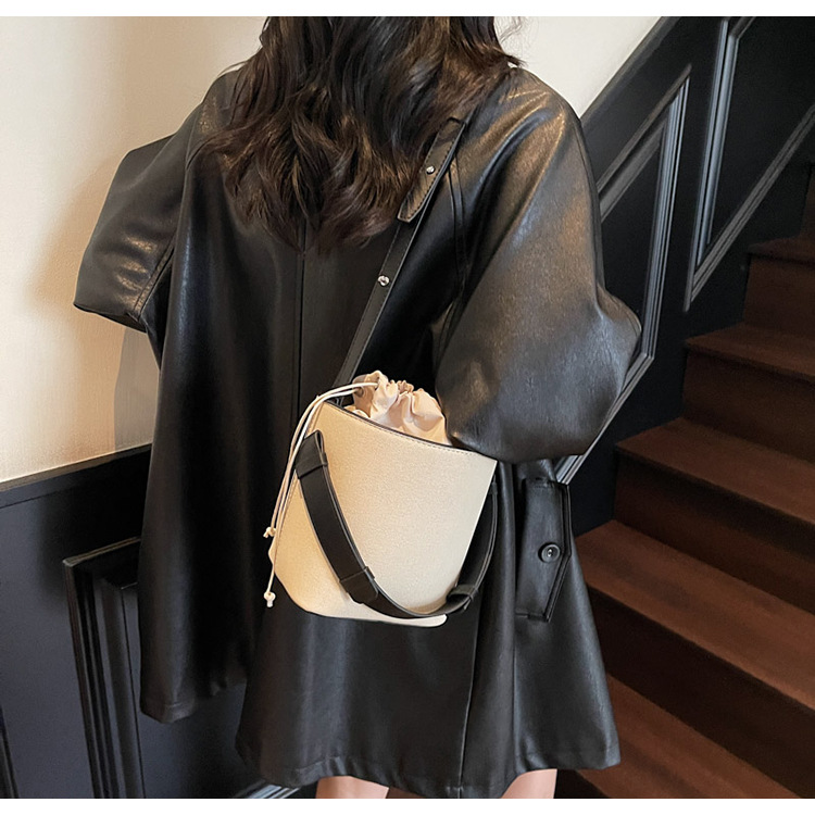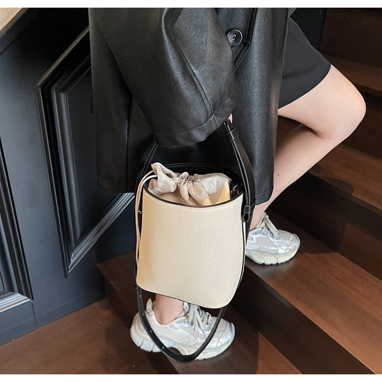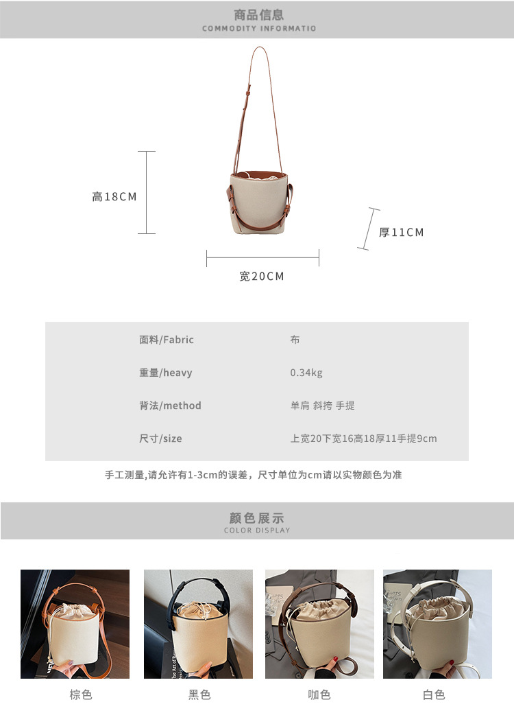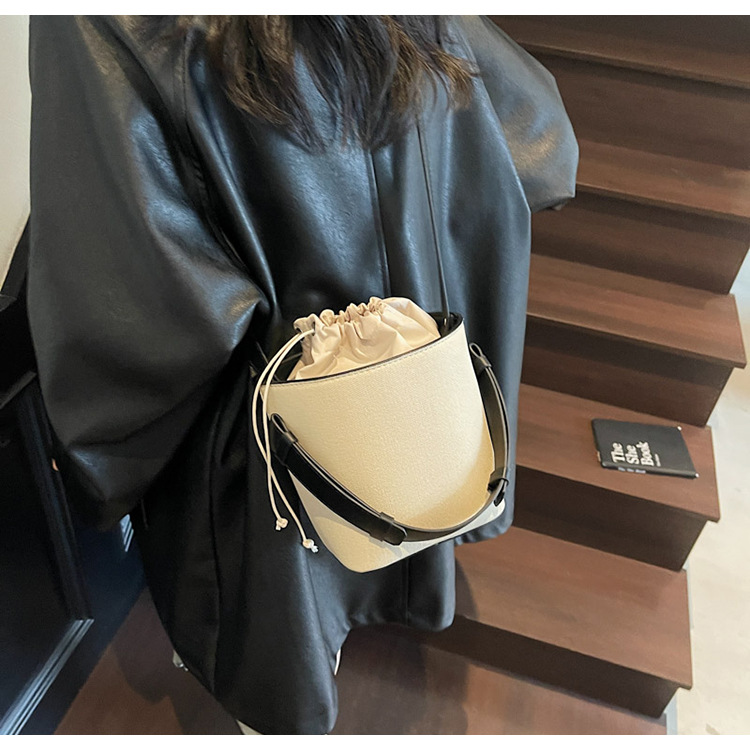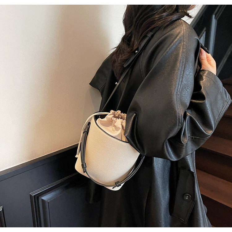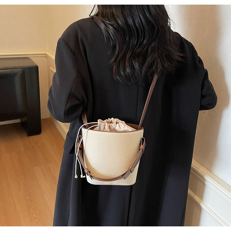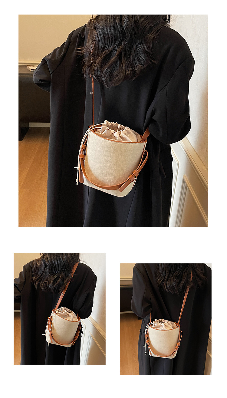 2025 nueva bolsa de cubo de lona de color de contraste para mujeres de alto nivel nicho de diseño de viaje de hombro portátil bolso de mano