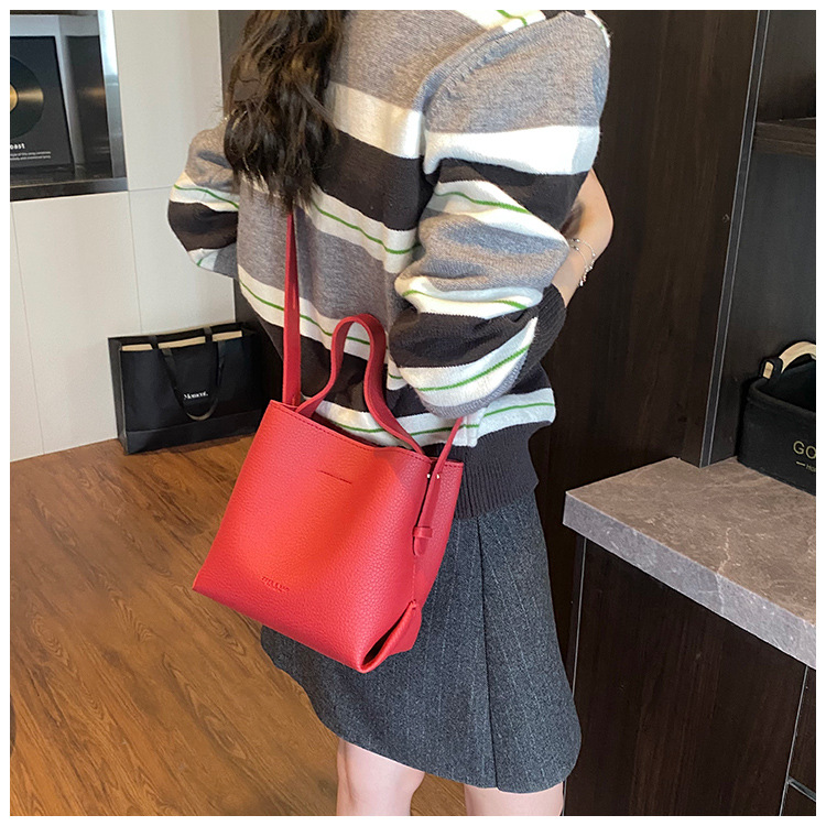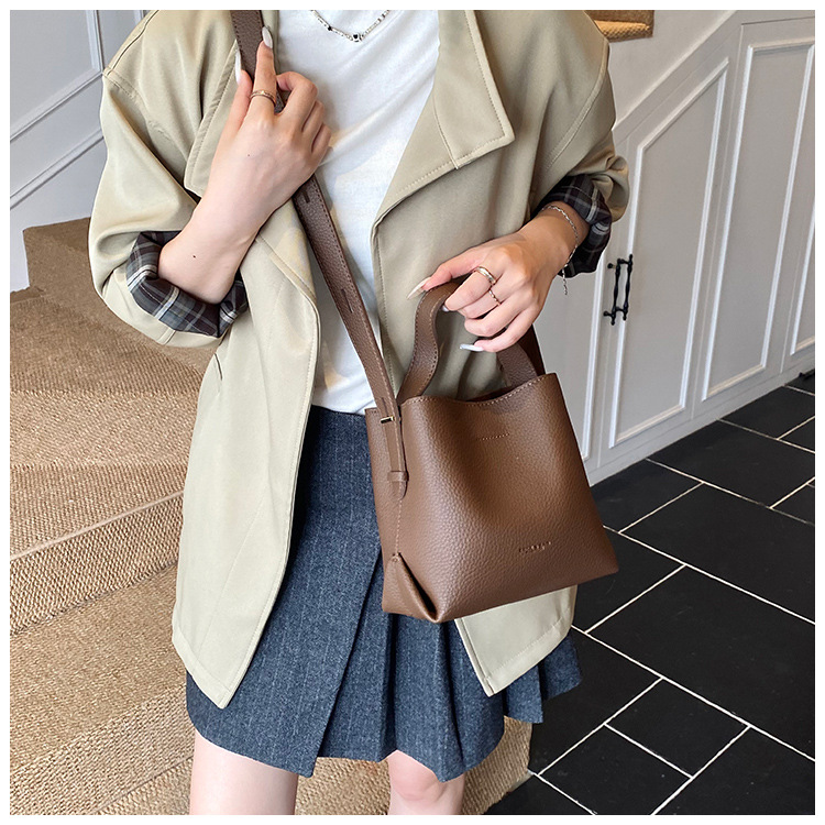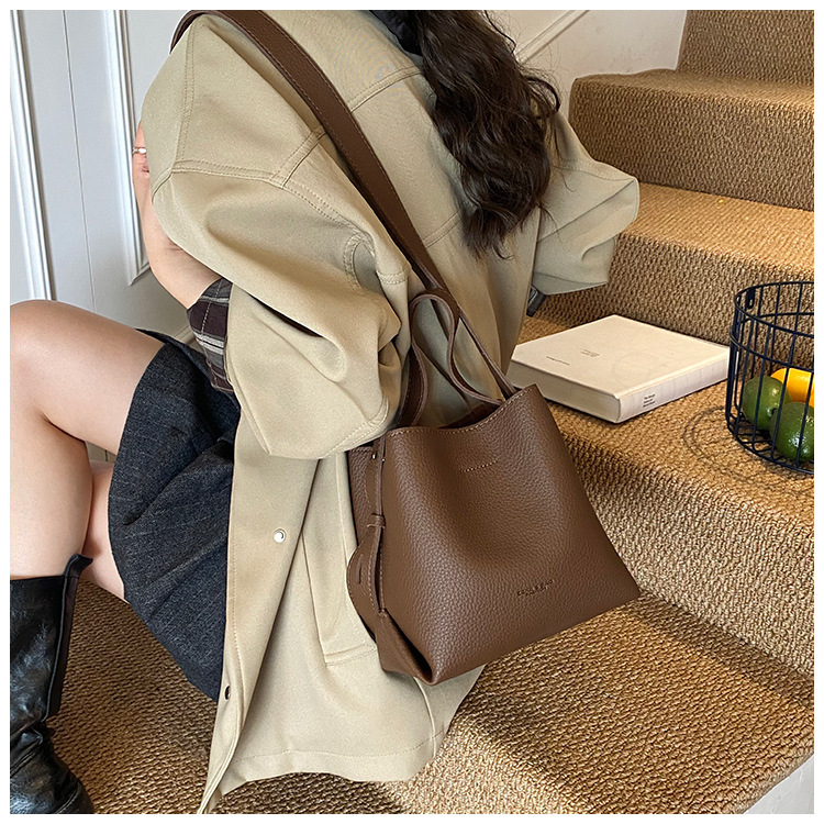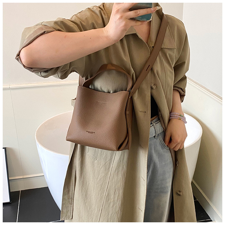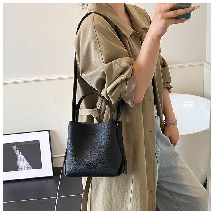 Bolso de mano de alta sensación, bolso de cubo de gran capacidad para mujeres, otoño y invierno 2025, nuevo estilo de moda bolso de hombro, bolso de mochila versátil