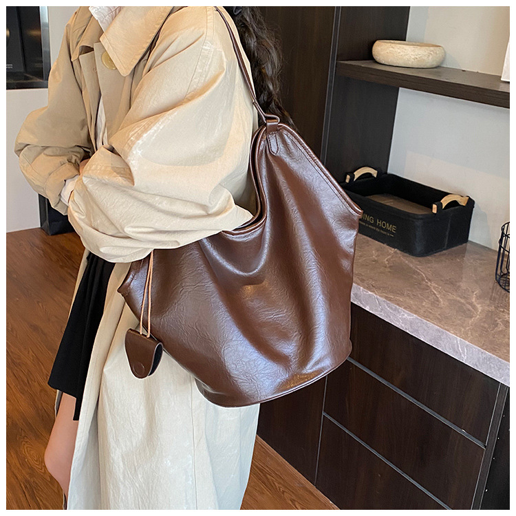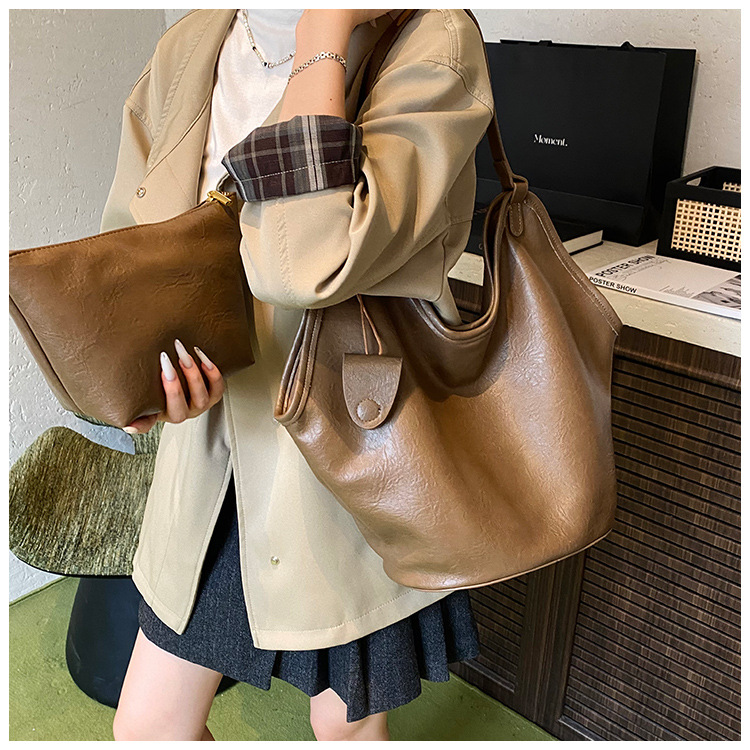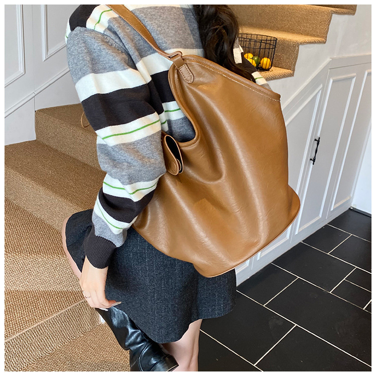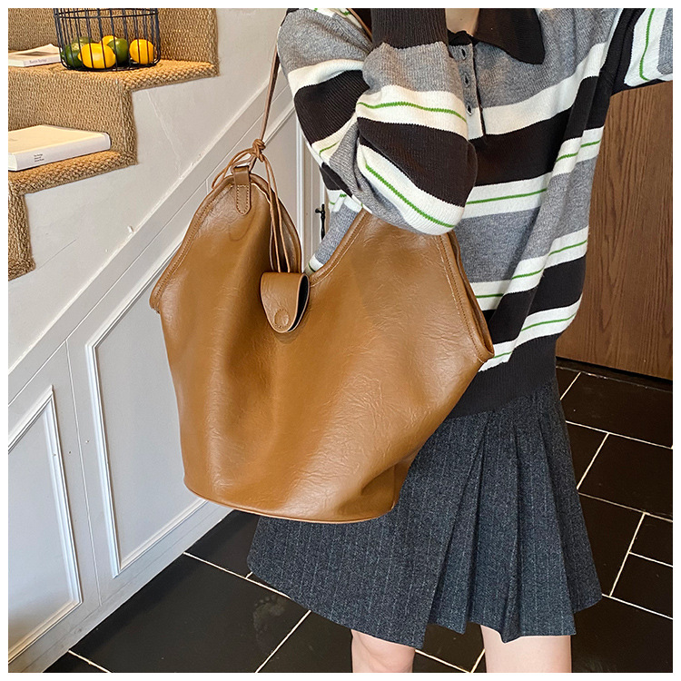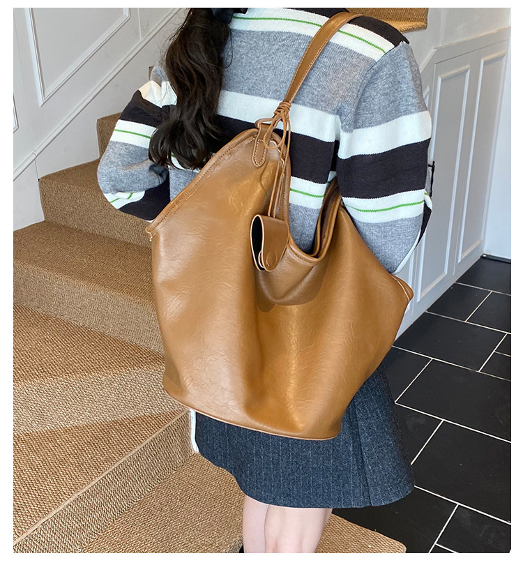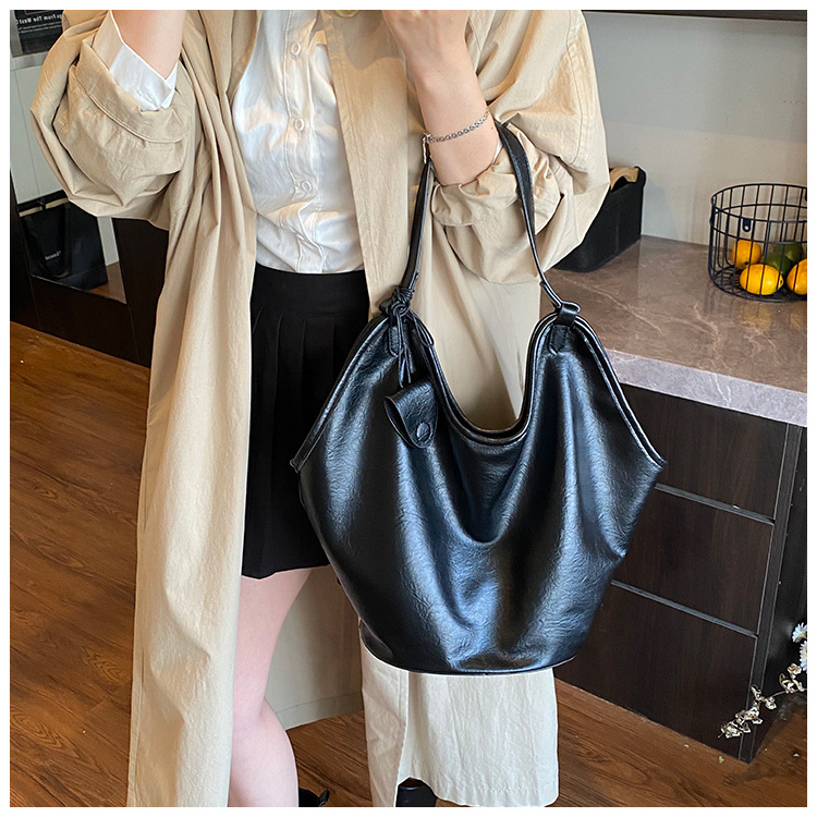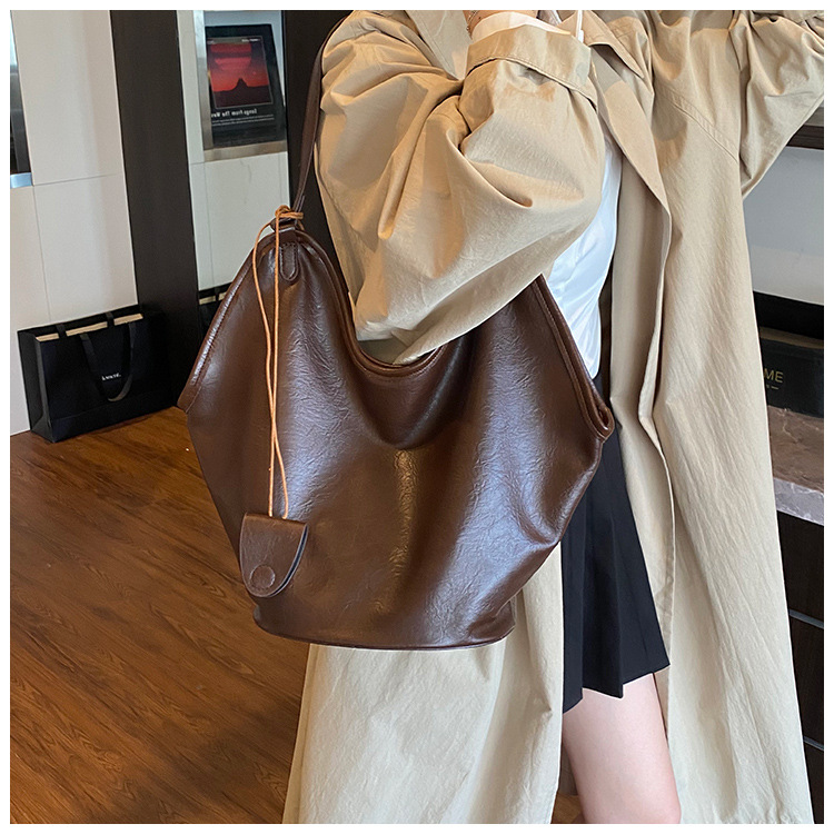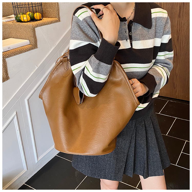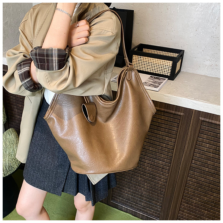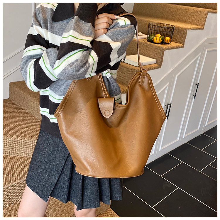 Bolsa de cubo transfronteriza de gran capacidad, bolsa de viaje retro de mujer 2025, otoño y invierno, nueva moda, bolsa de brazo, bolsa de hombro universal