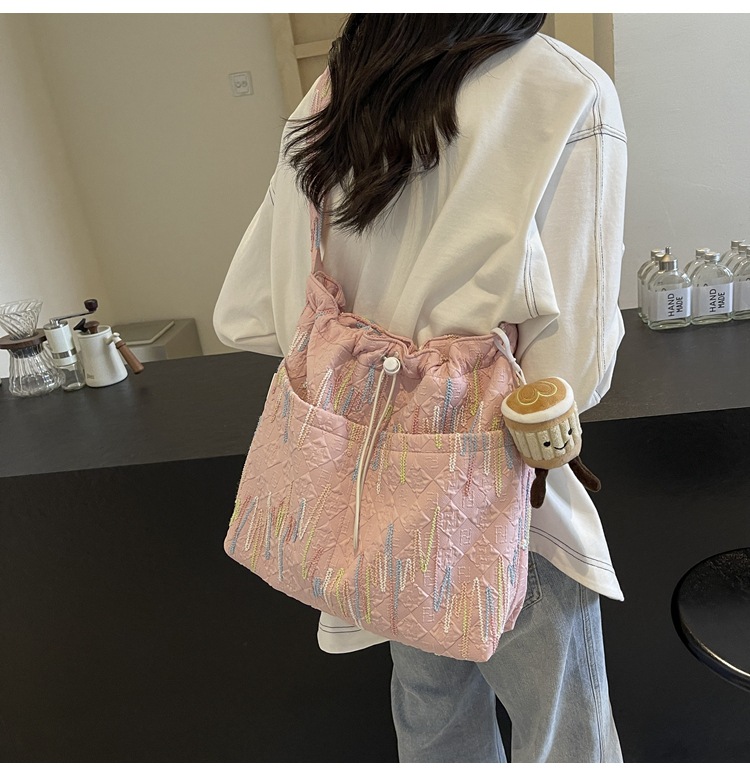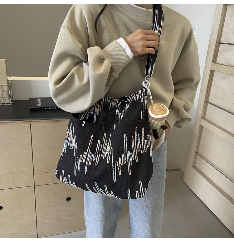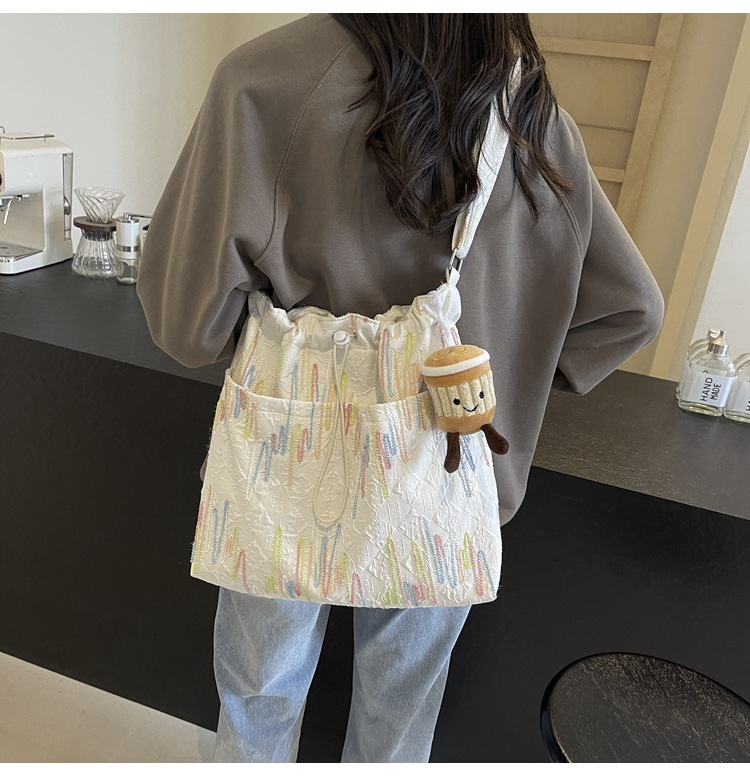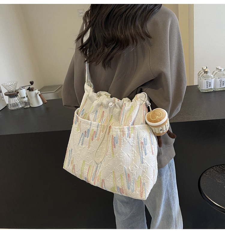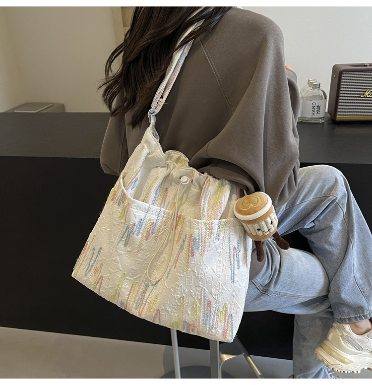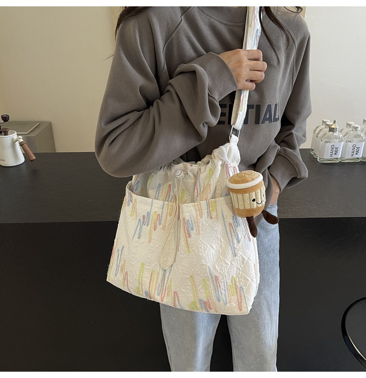 Alto sentido de la bolsa de lona de transporte casual versátil2024 nuevo bolso de mujer de verano popular gran capacidad bolso de cubo