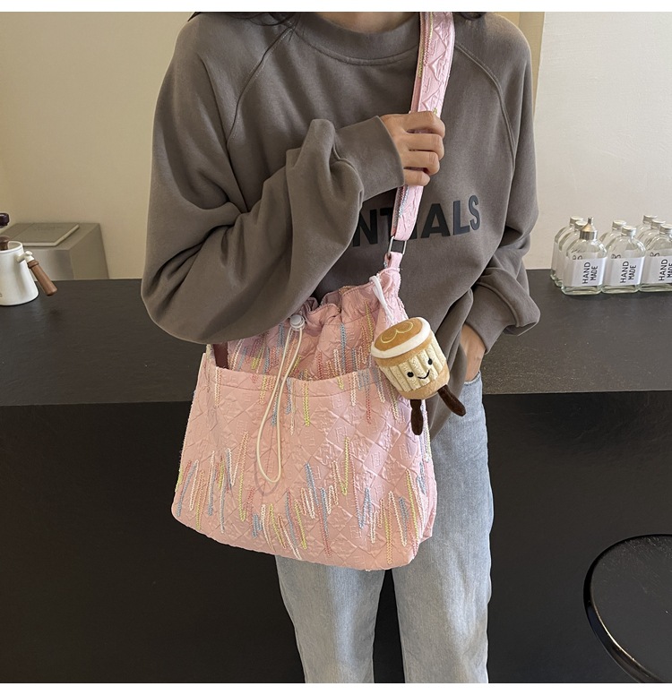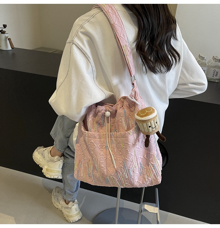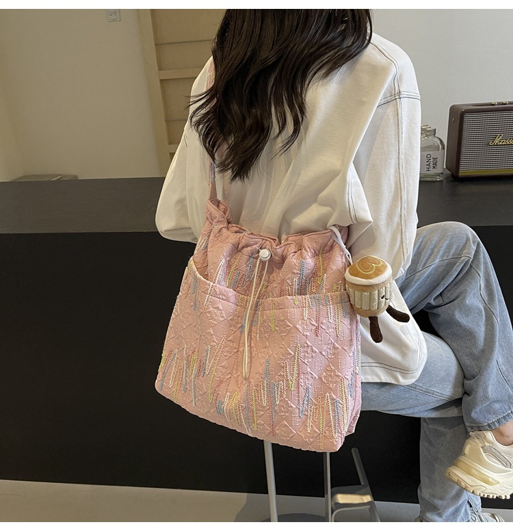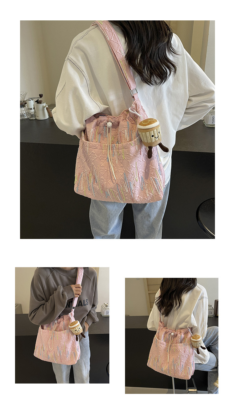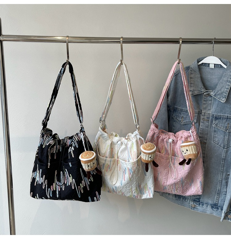 Alto sentido de la bolsa de lona de transporte casual versátil2024 nuevo bolso de mujer de verano popular gran capacidad bolso de cubo