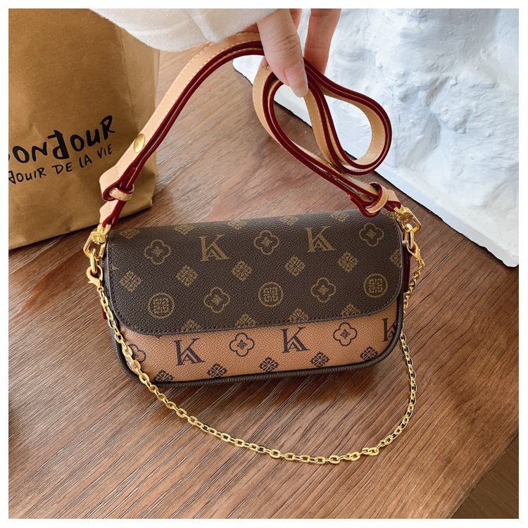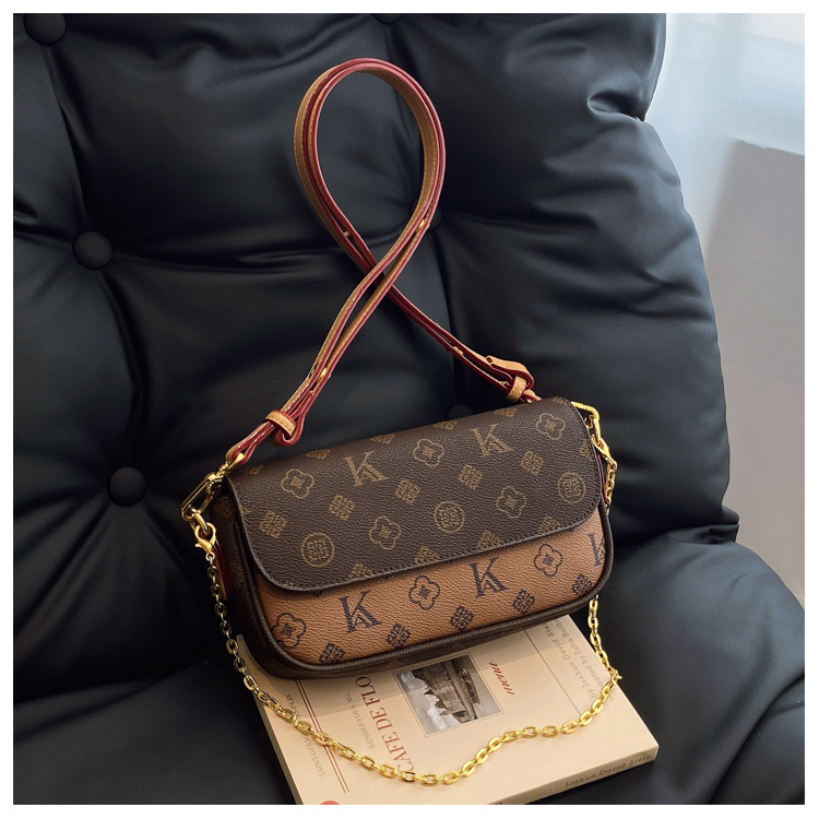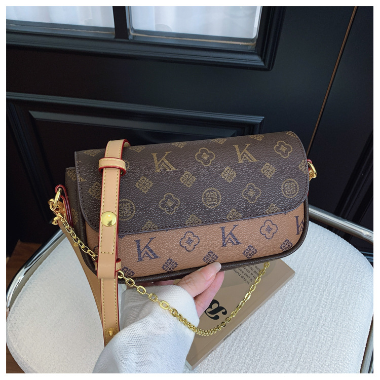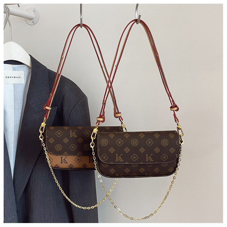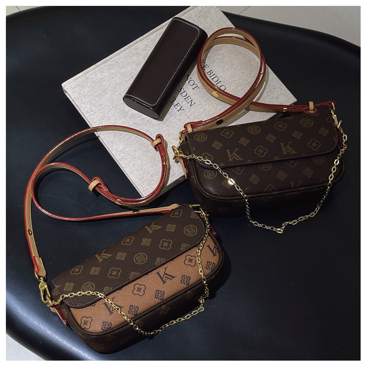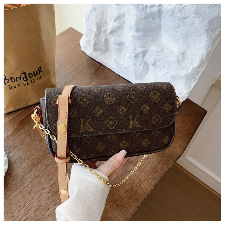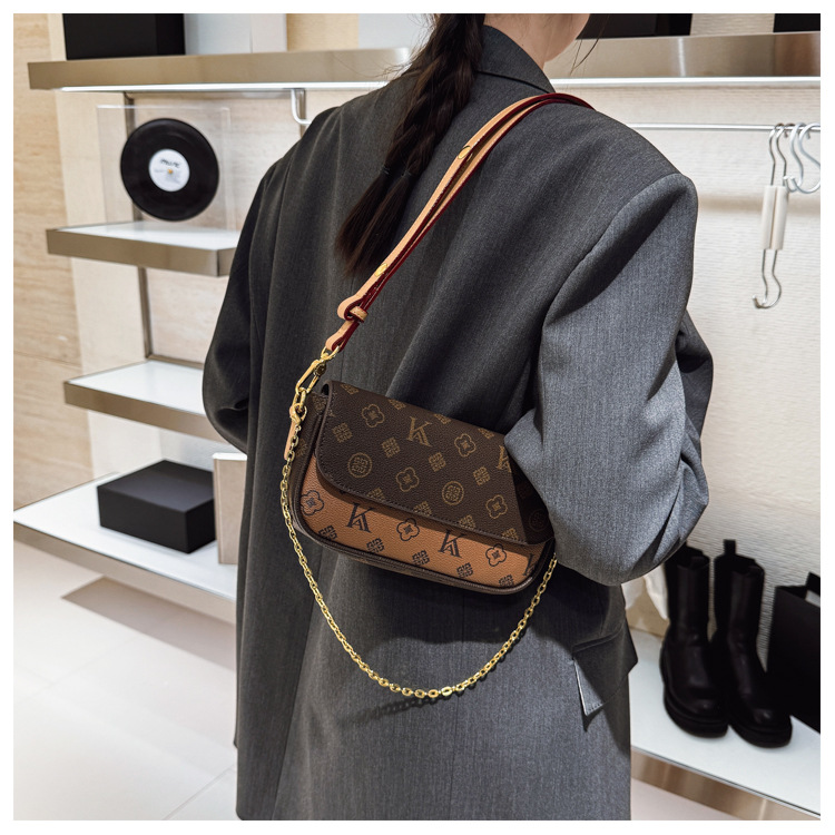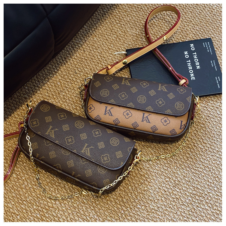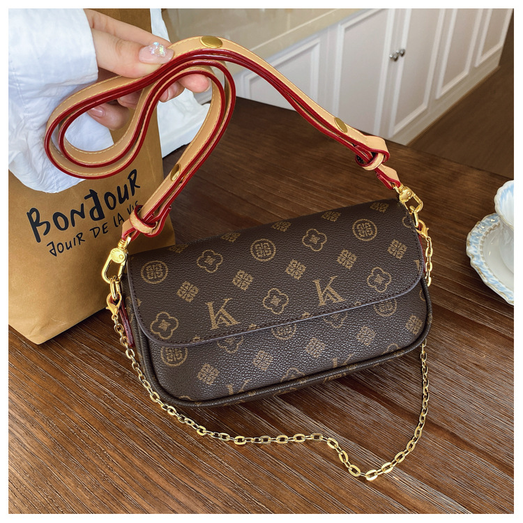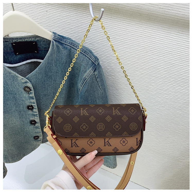 Bolso de impresión de alta sensación para mujeres 2025, nuevo lujo ligero retro bolso de cinturón pequeño bolso cuadrado, cadena de moda bolso de hombro bajo la axila