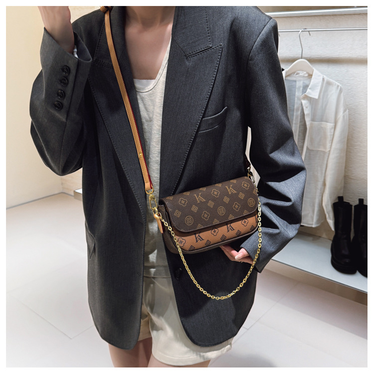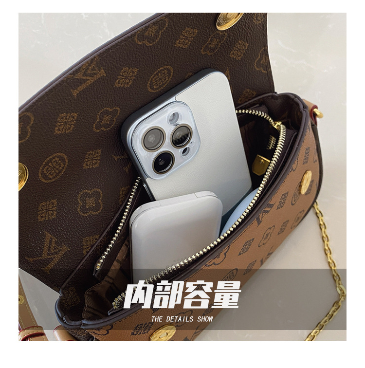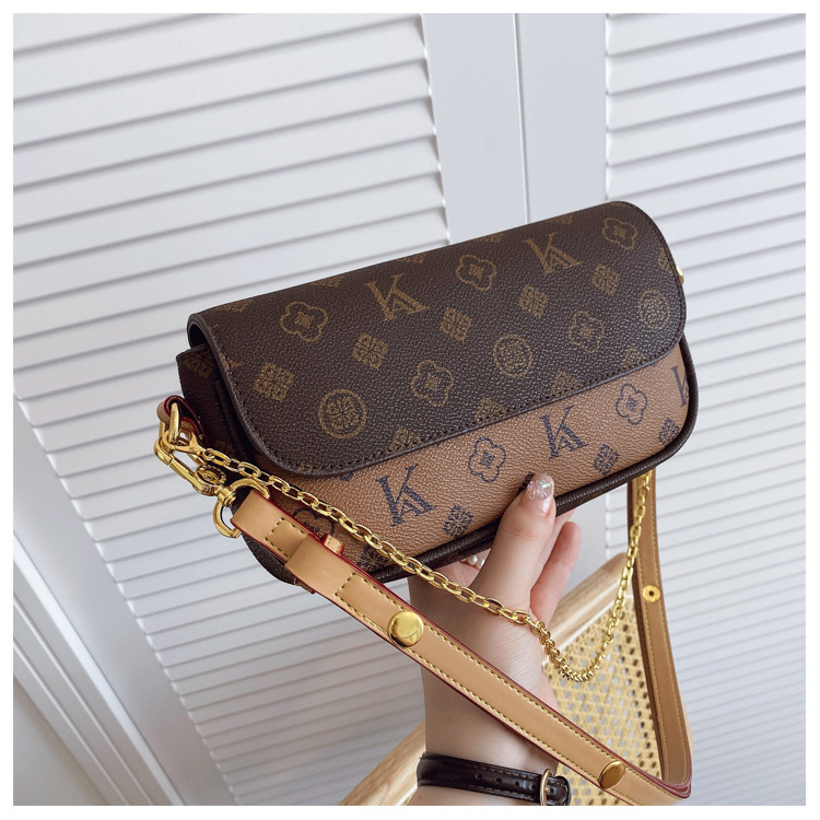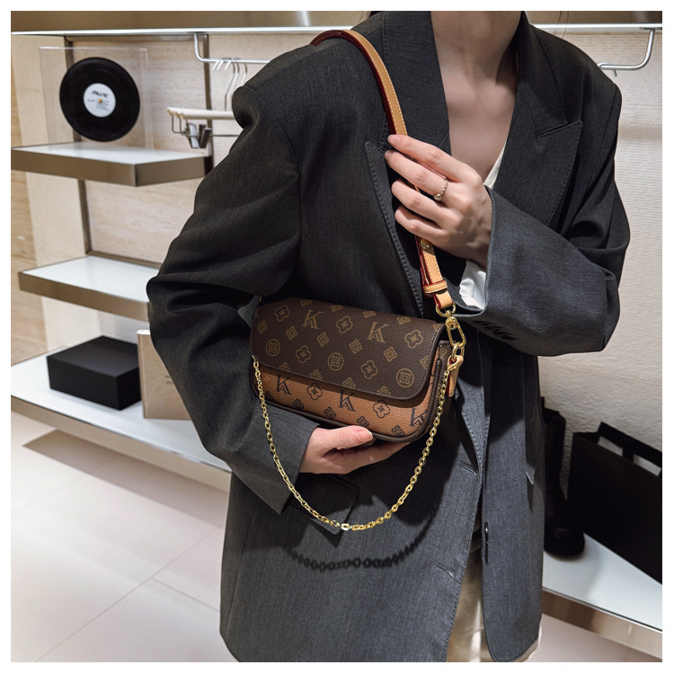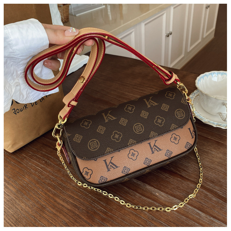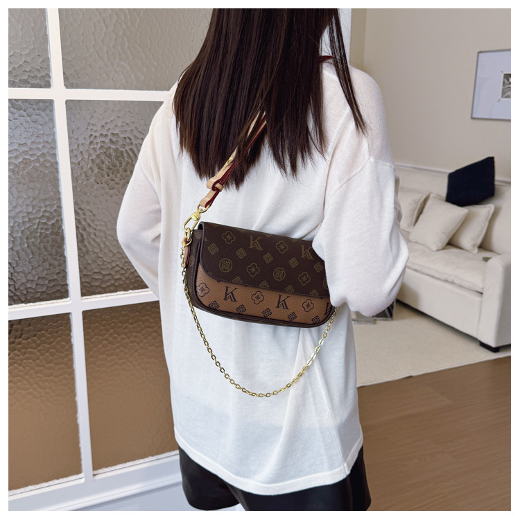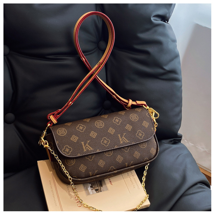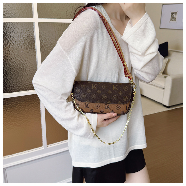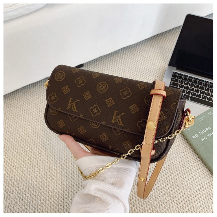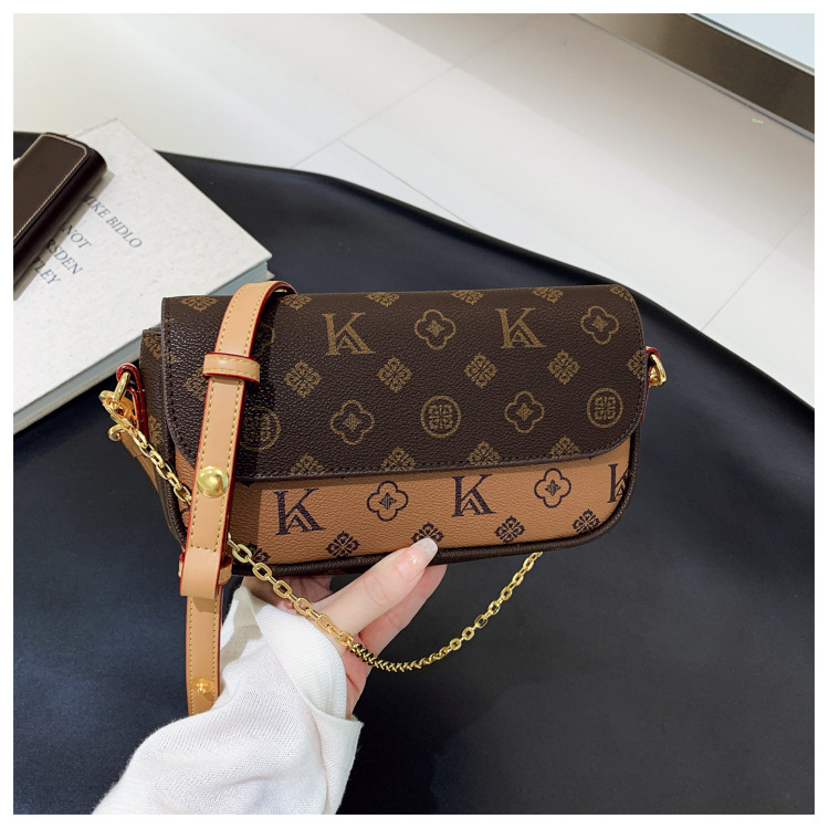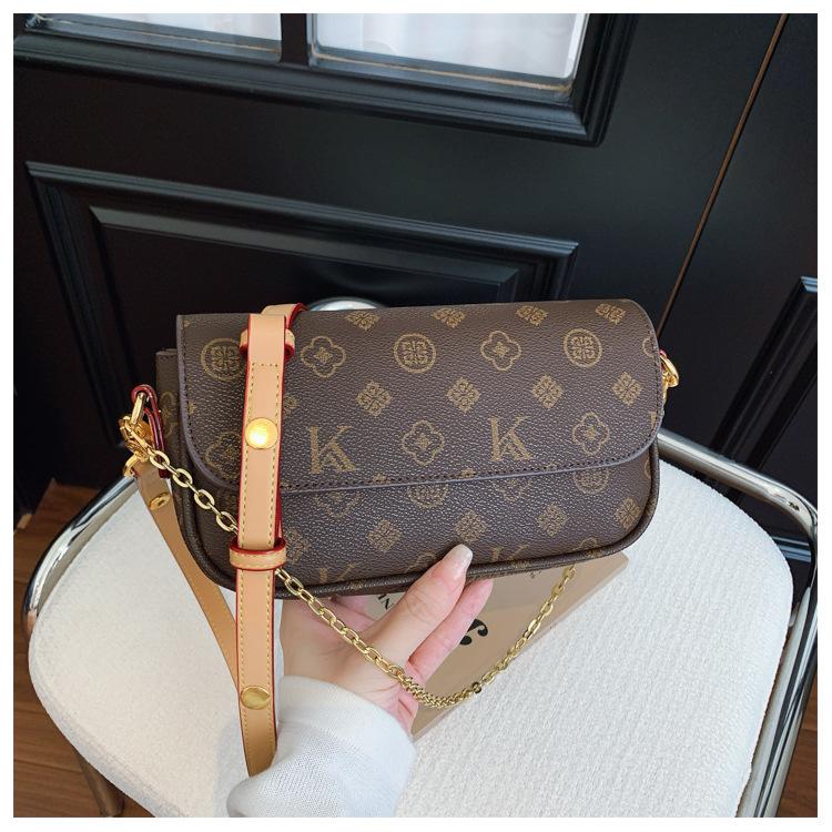 Bolso de impresión de alta sensación para mujeres 2025, nuevo lujo ligero retro bolso de cinturón pequeño bolso cuadrado, cadena de moda bolso de hombro bajo la axila