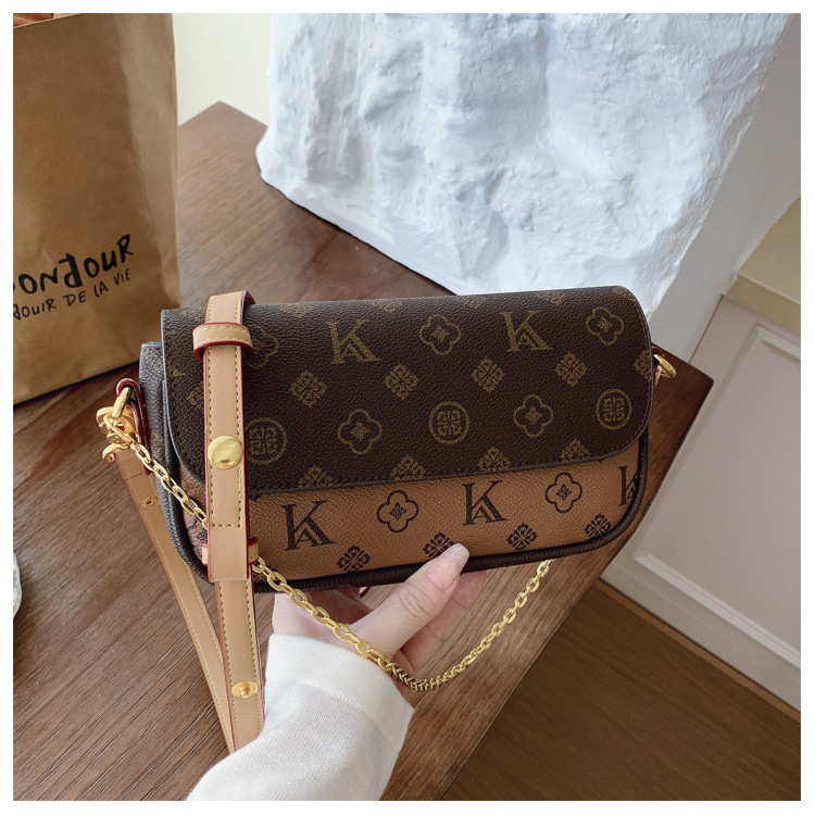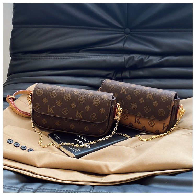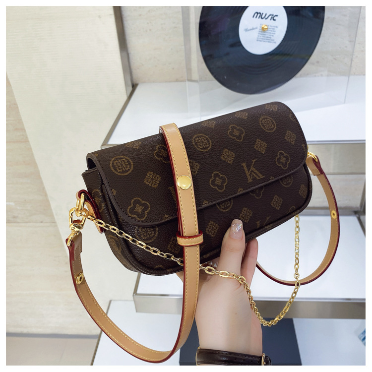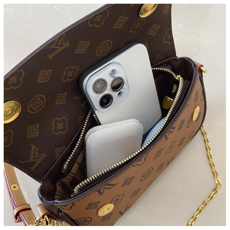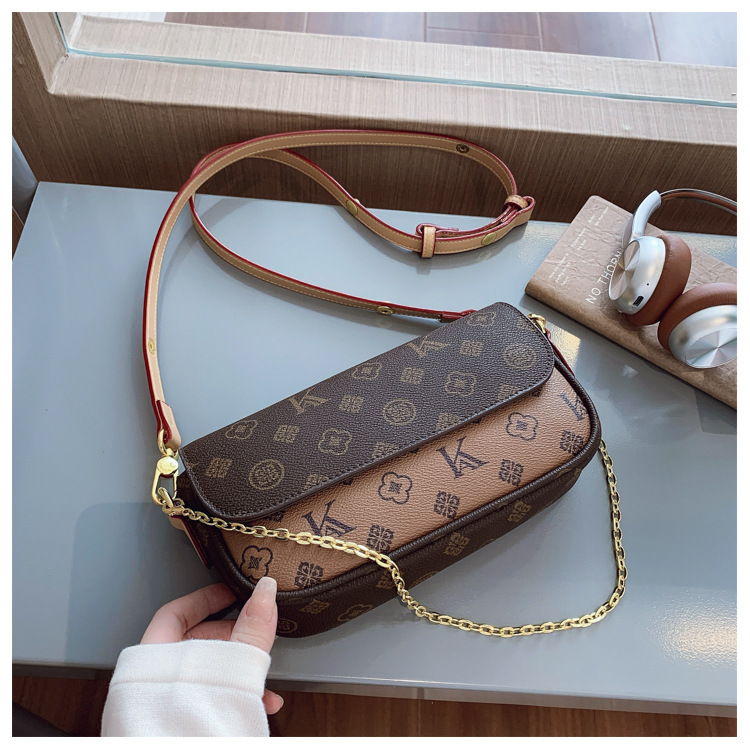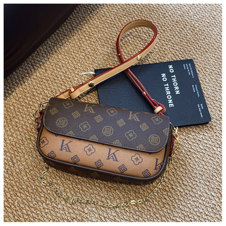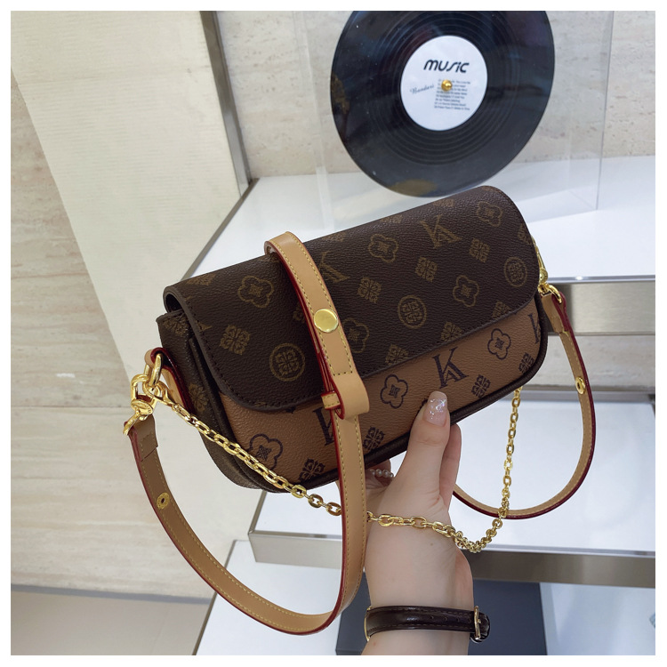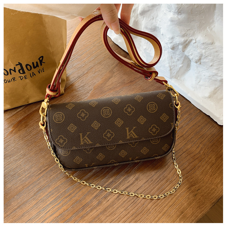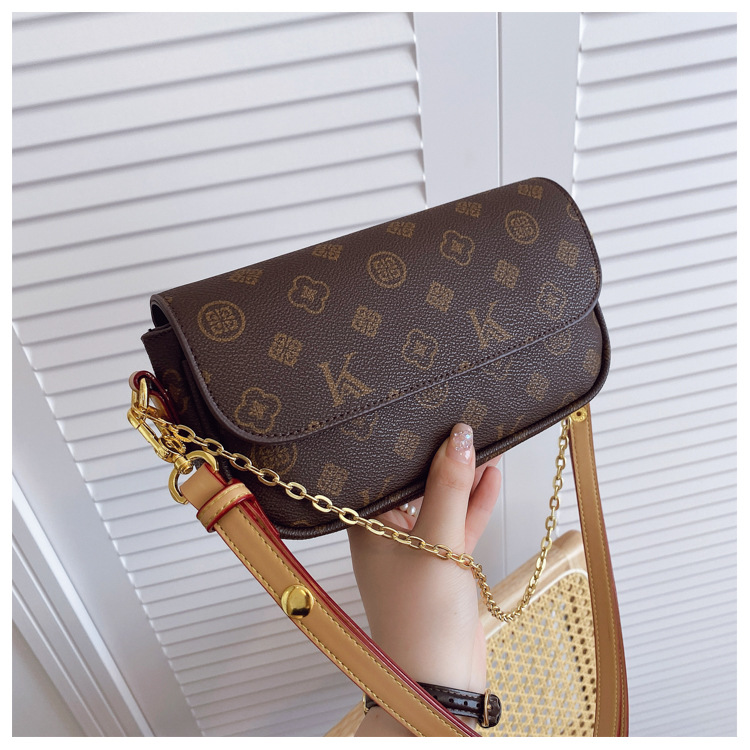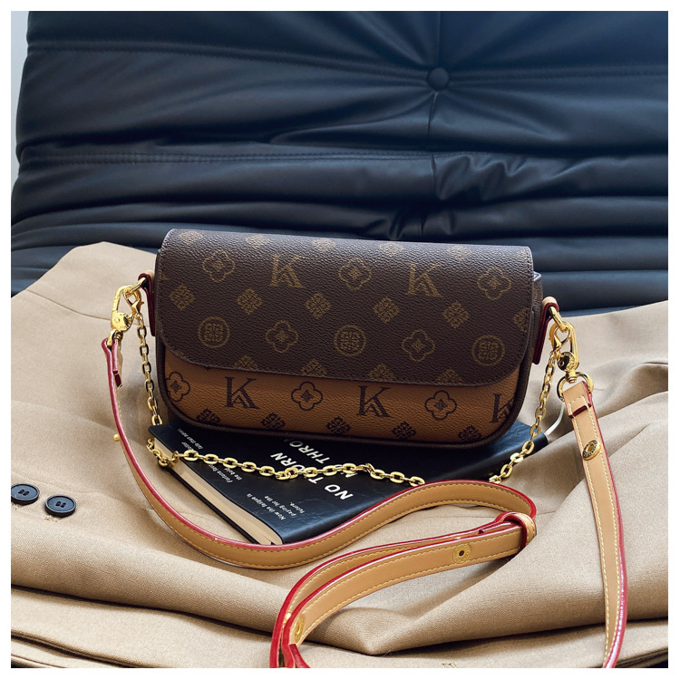 Bolso de impresión de alta sensación para mujeres 2025, nuevo lujo ligero retro bolso de cinturón pequeño bolso cuadrado, cadena de moda bolso de hombro bajo la axila