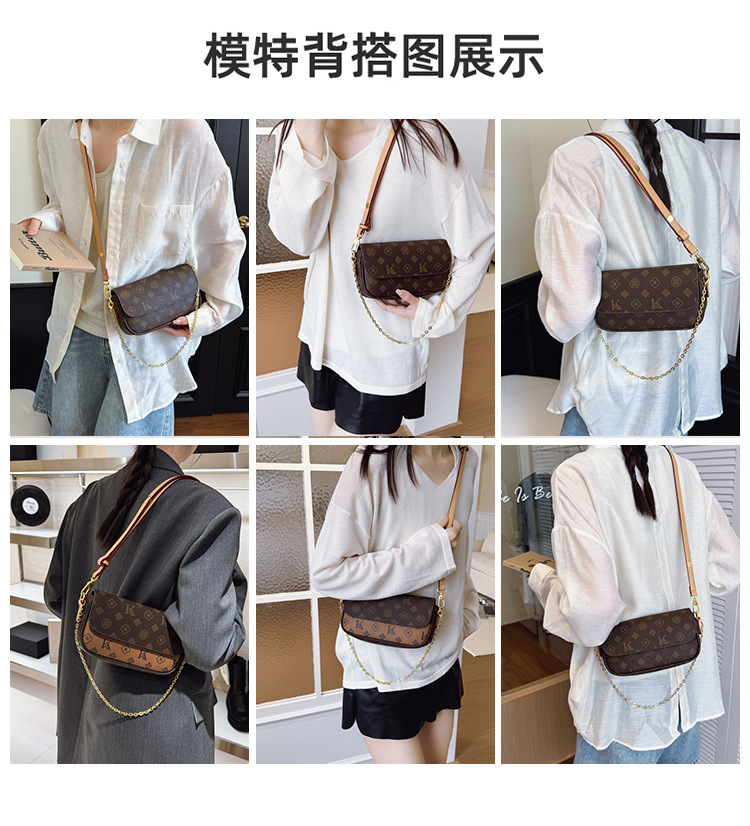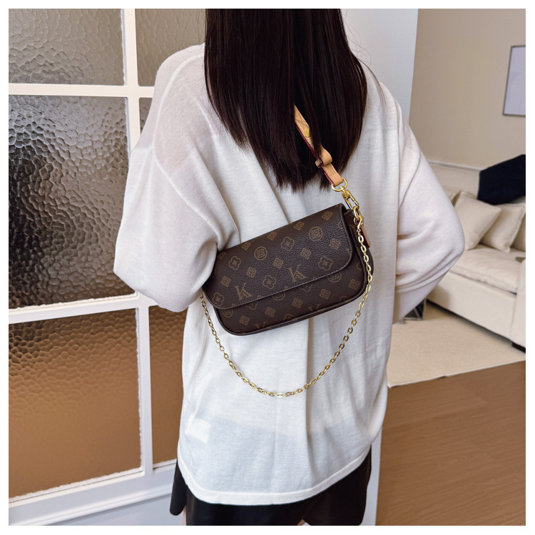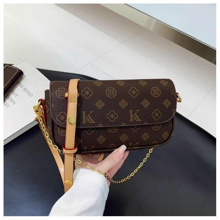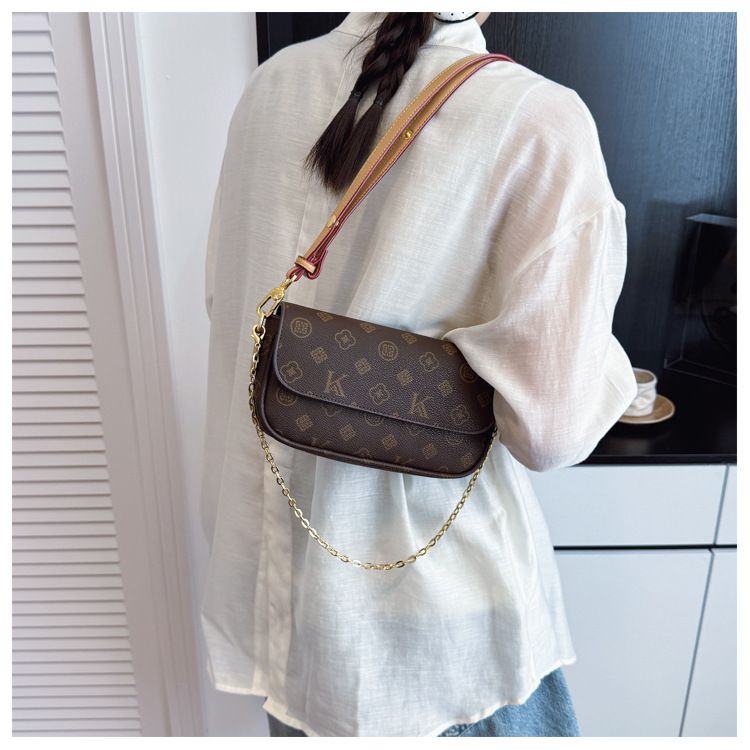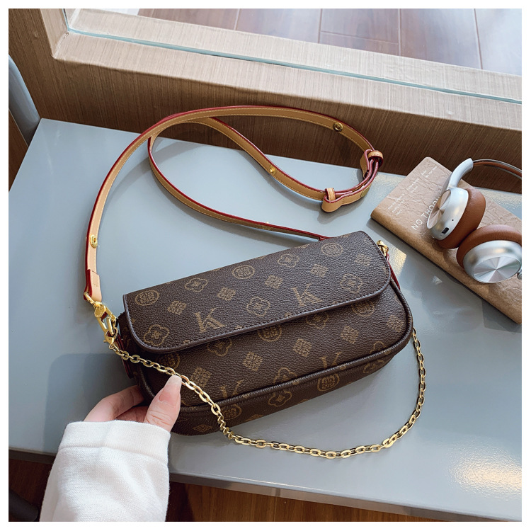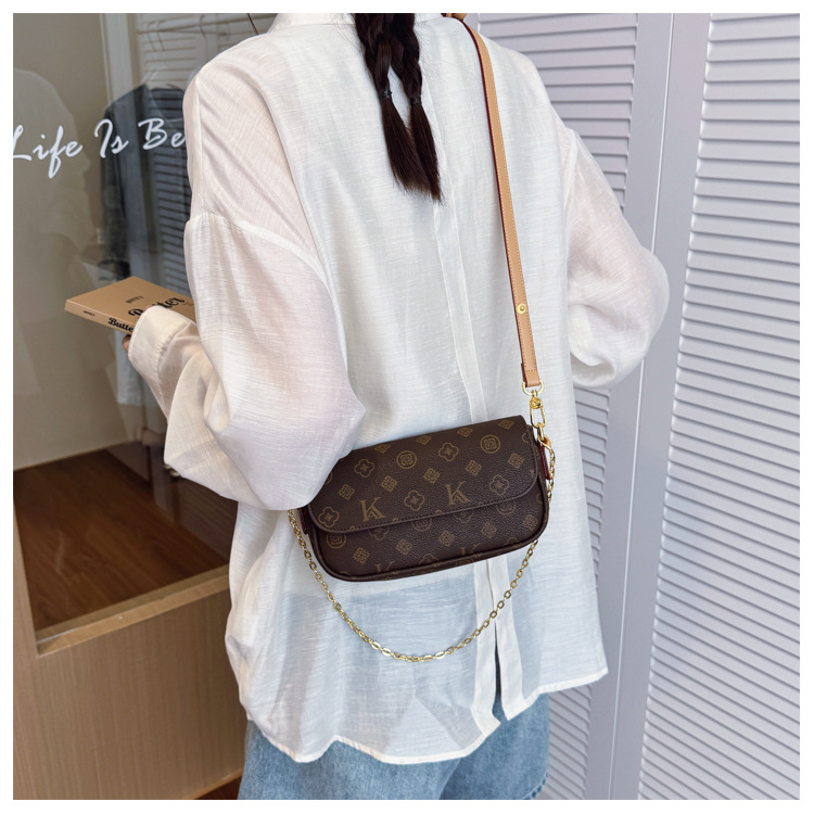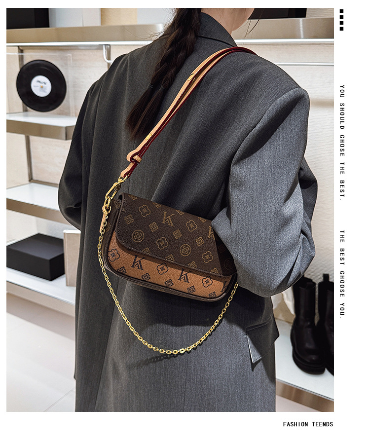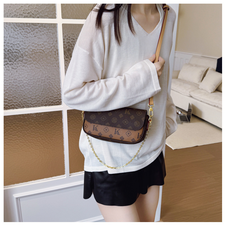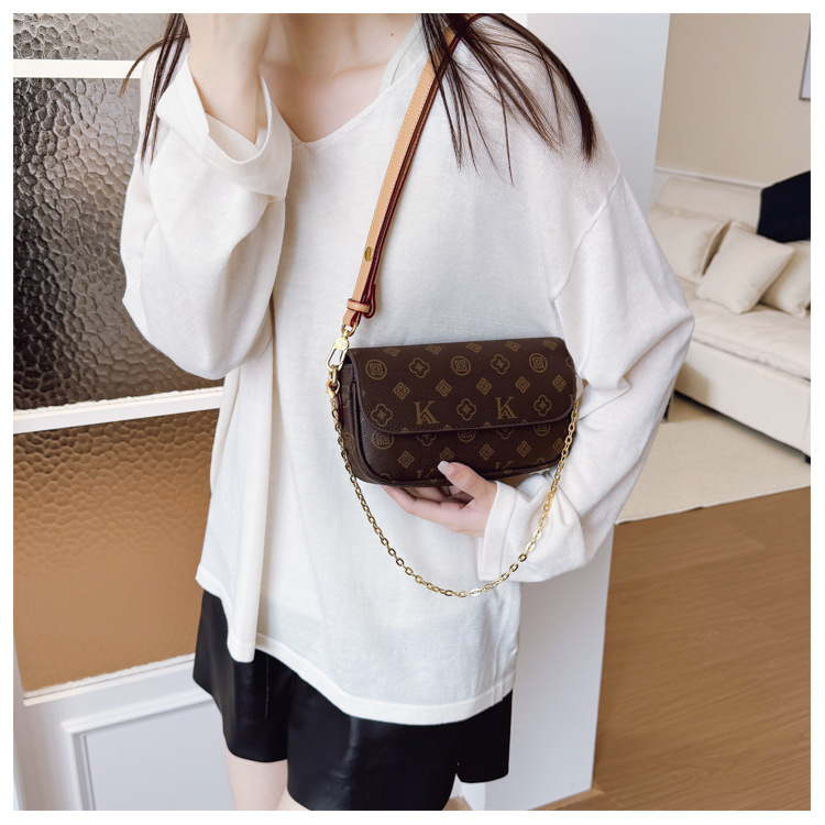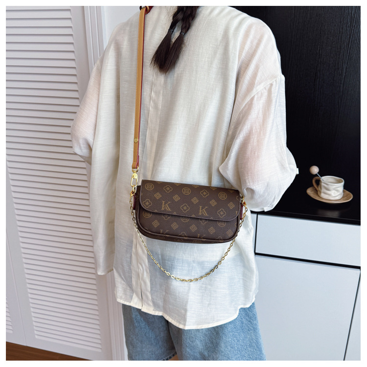 Bolso de impresión de alta sensación para mujeres 2025, nuevo lujo ligero retro bolso de cinturón pequeño bolso cuadrado, cadena de moda bolso de hombro bajo la axila