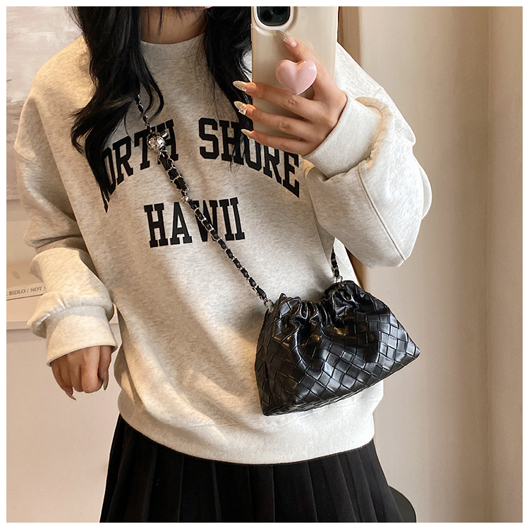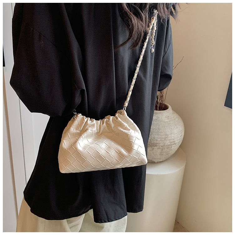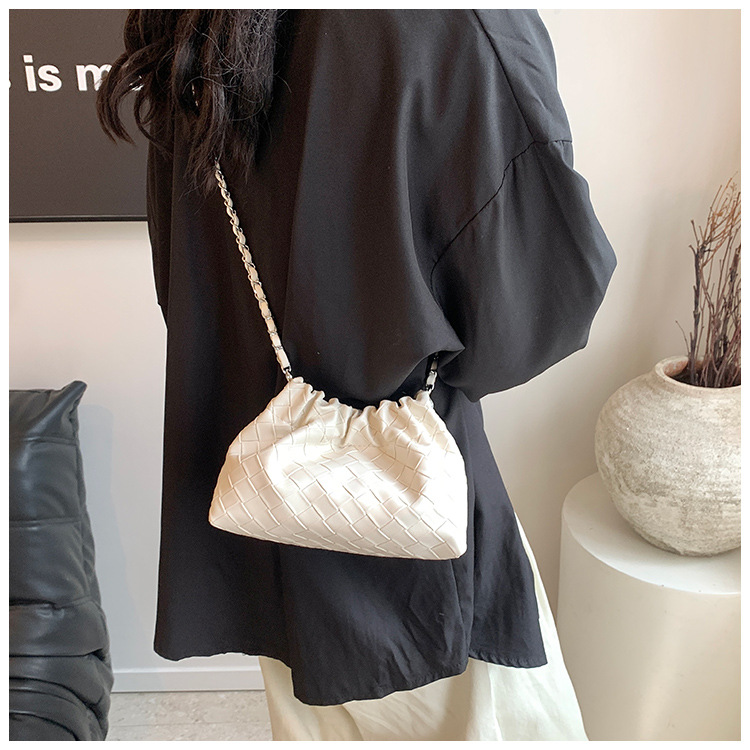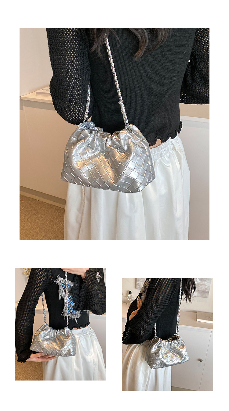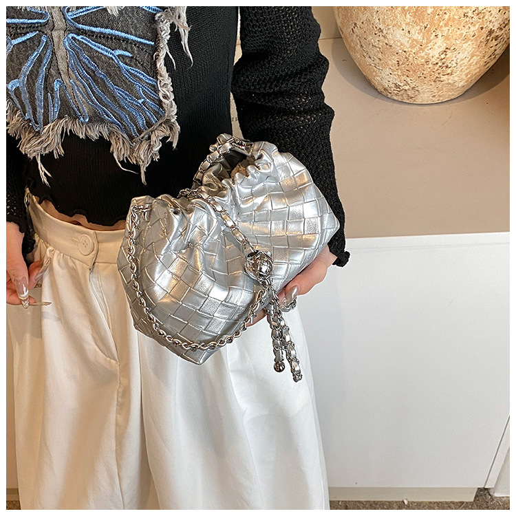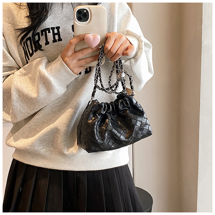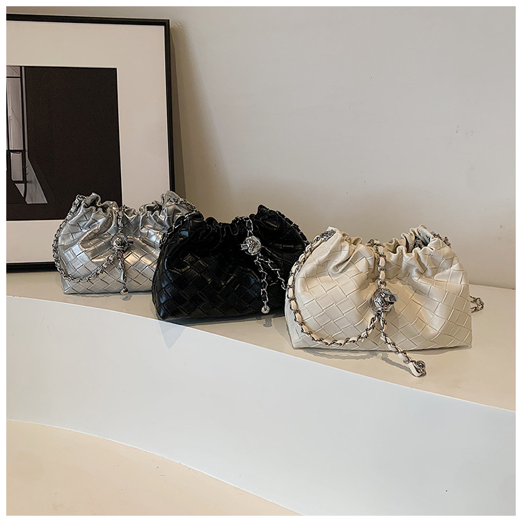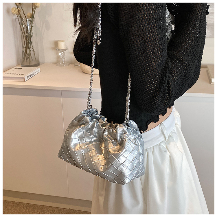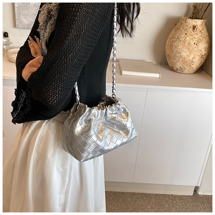 Nicho Zhong bolso de tejido casual para mujeres 2024 verano nueva moda versátil bolso de hombro bolso de cubo de cadena plegada