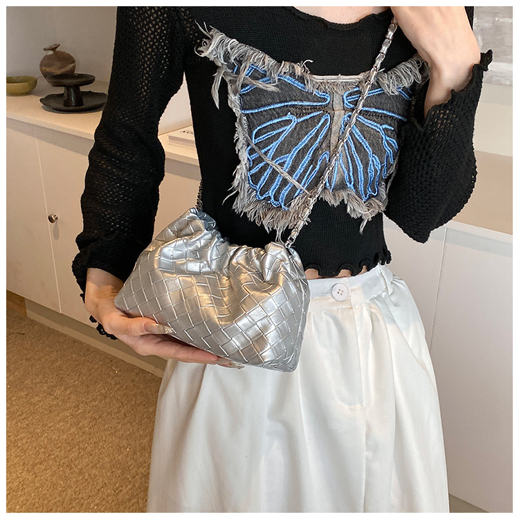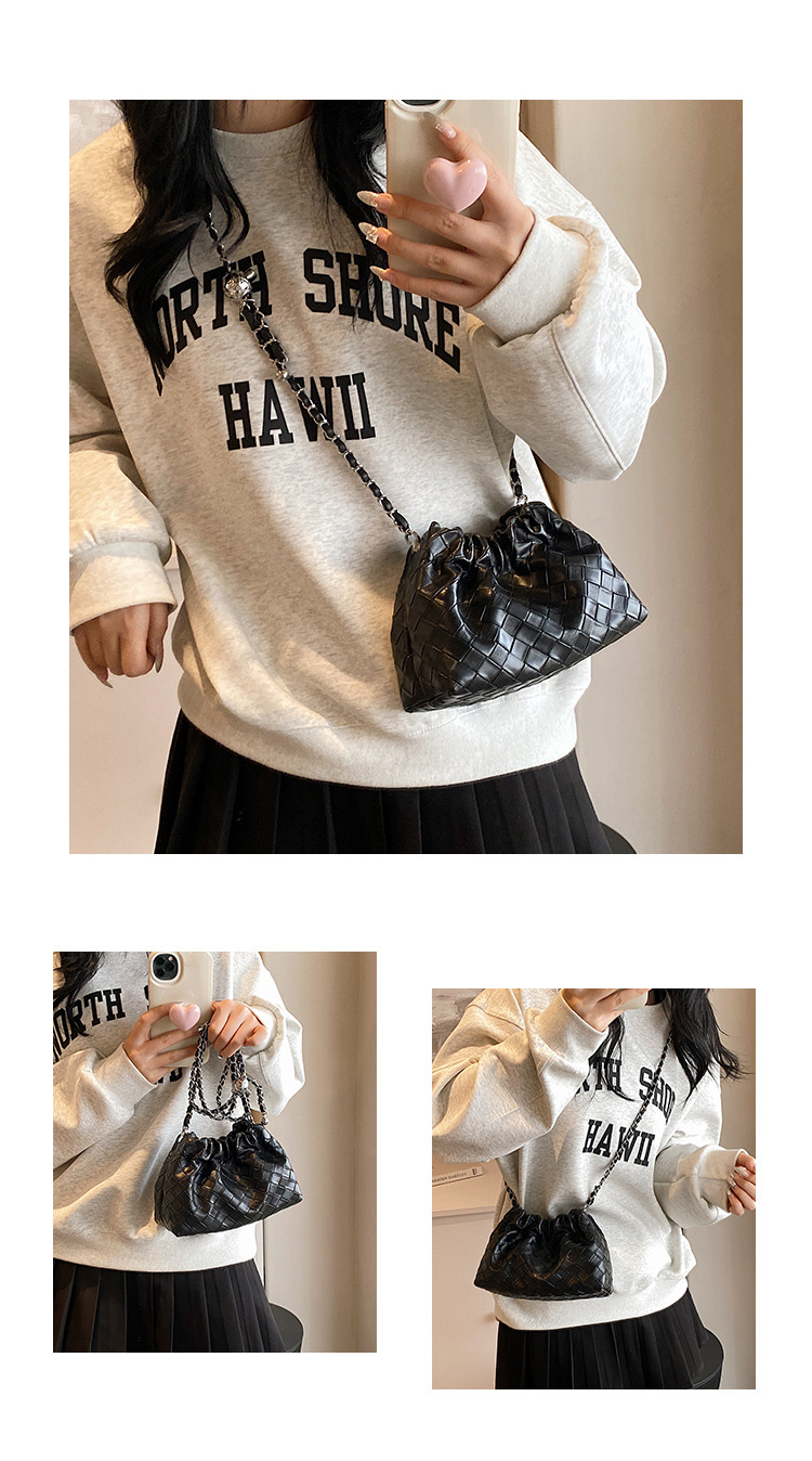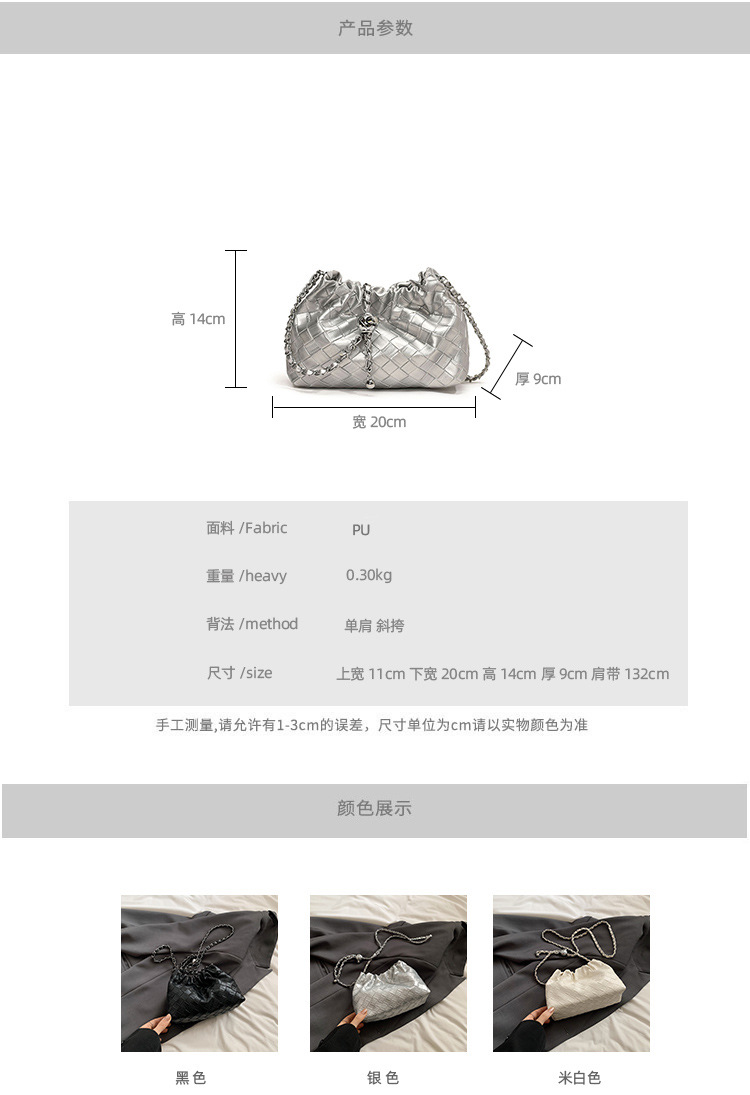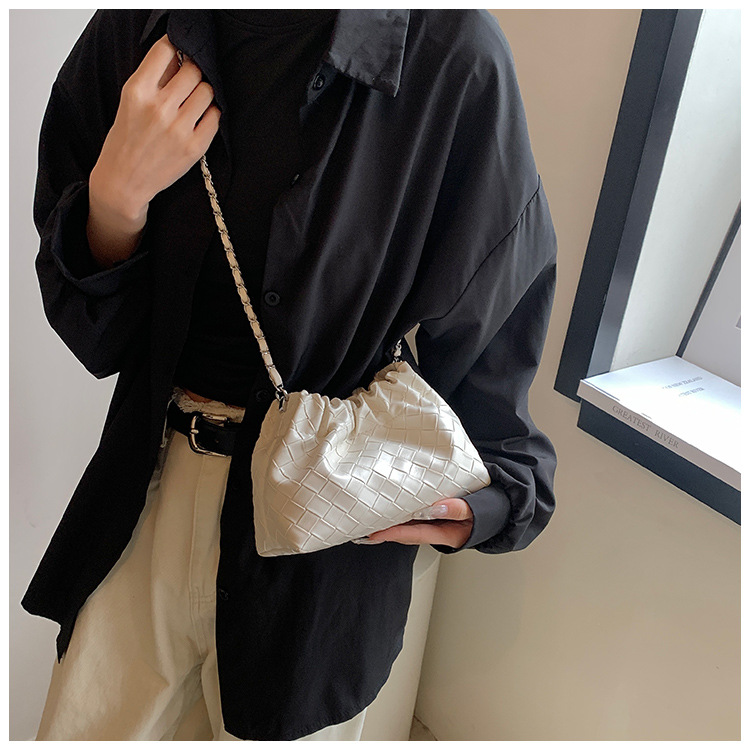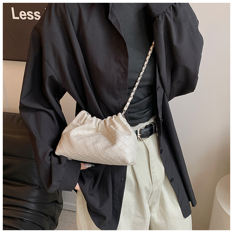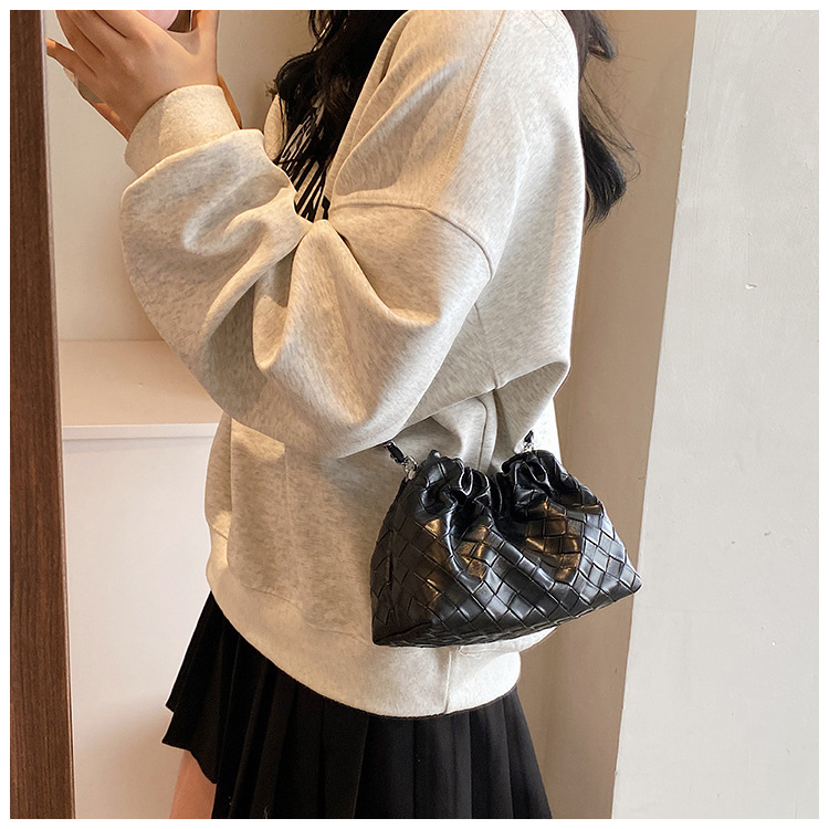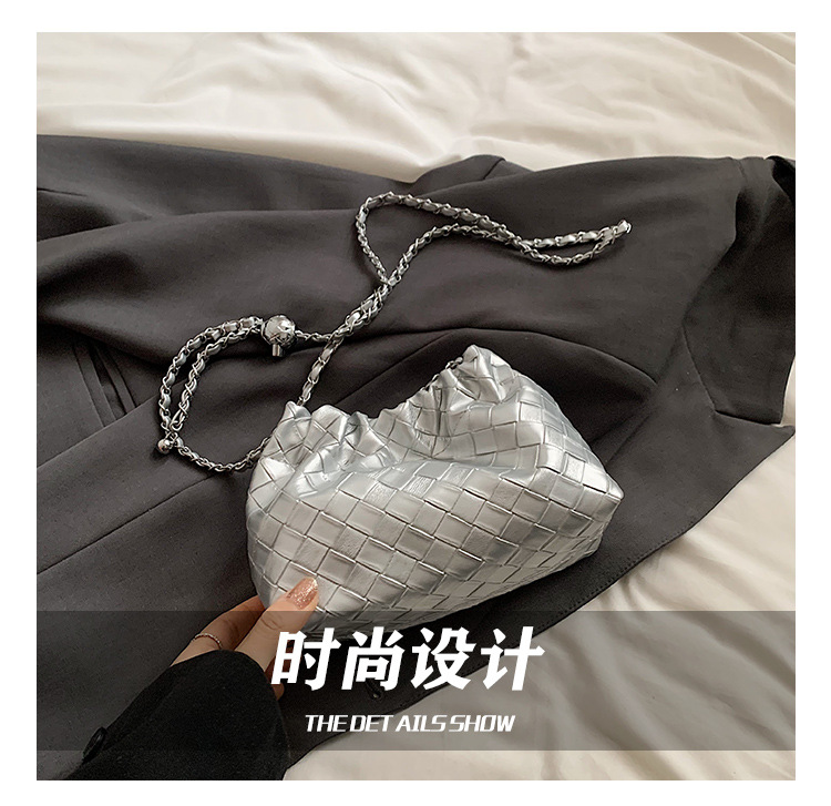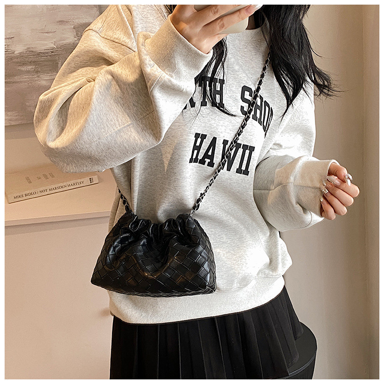Nicho Zhong bolso de tejido casual para mujeres 2024 verano nueva moda versátil bolso de hombro bolso de cubo de cadena plegada
