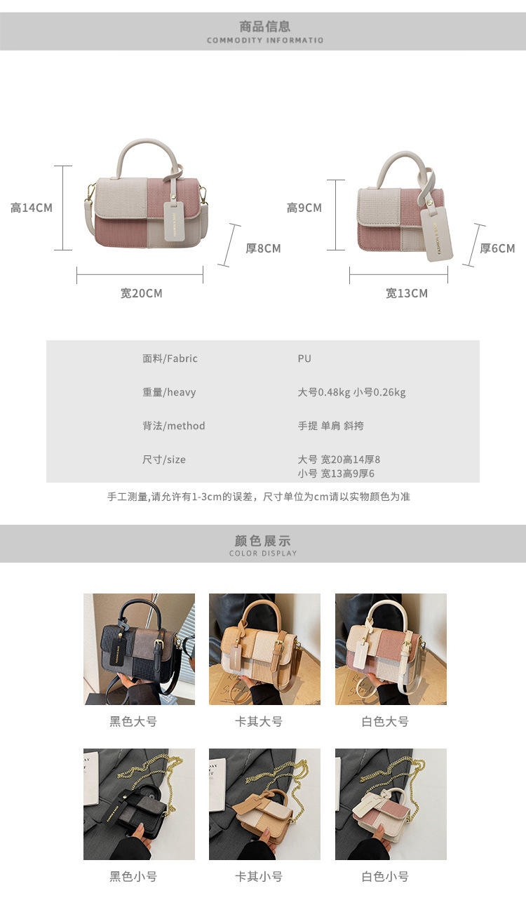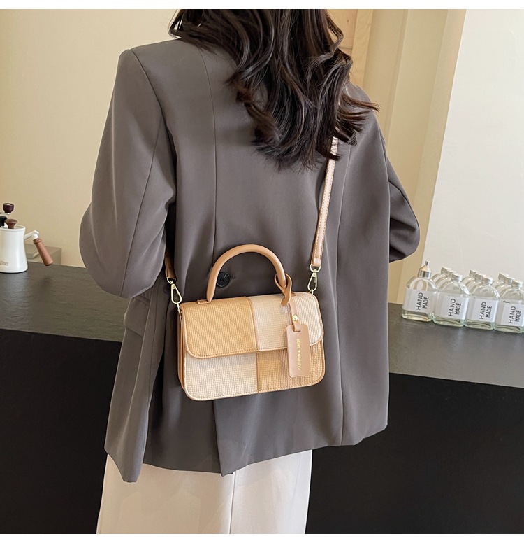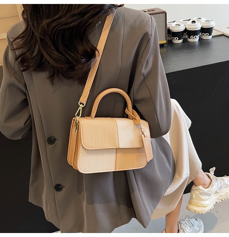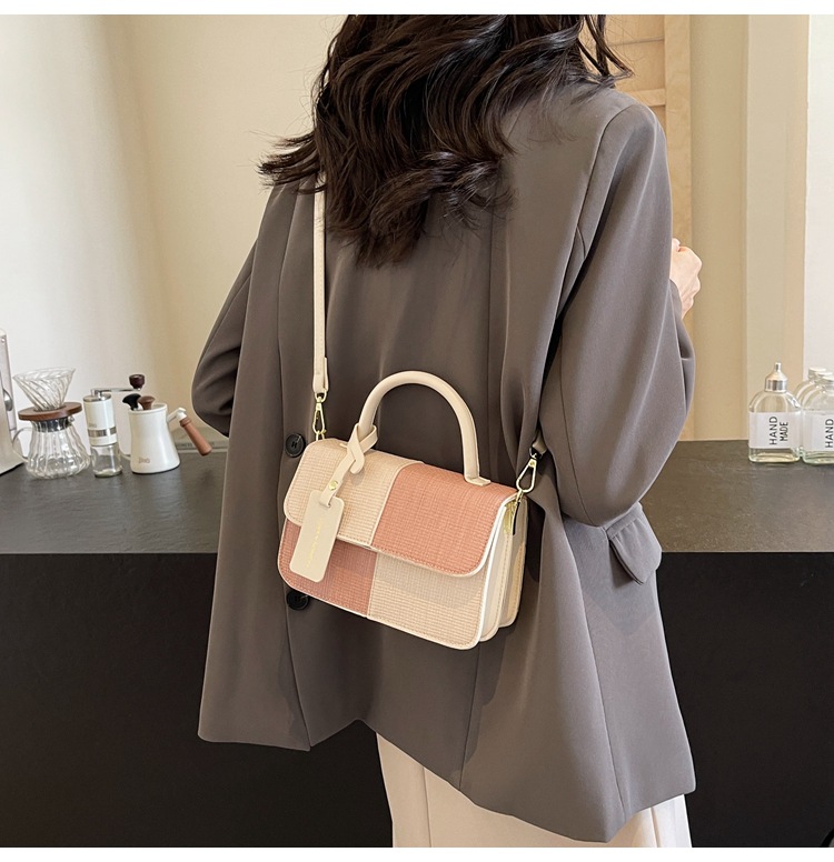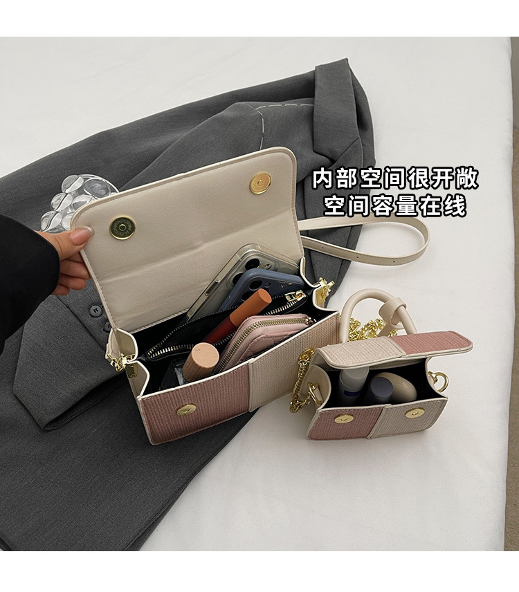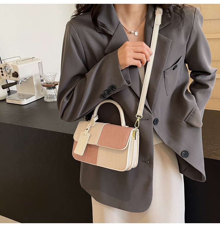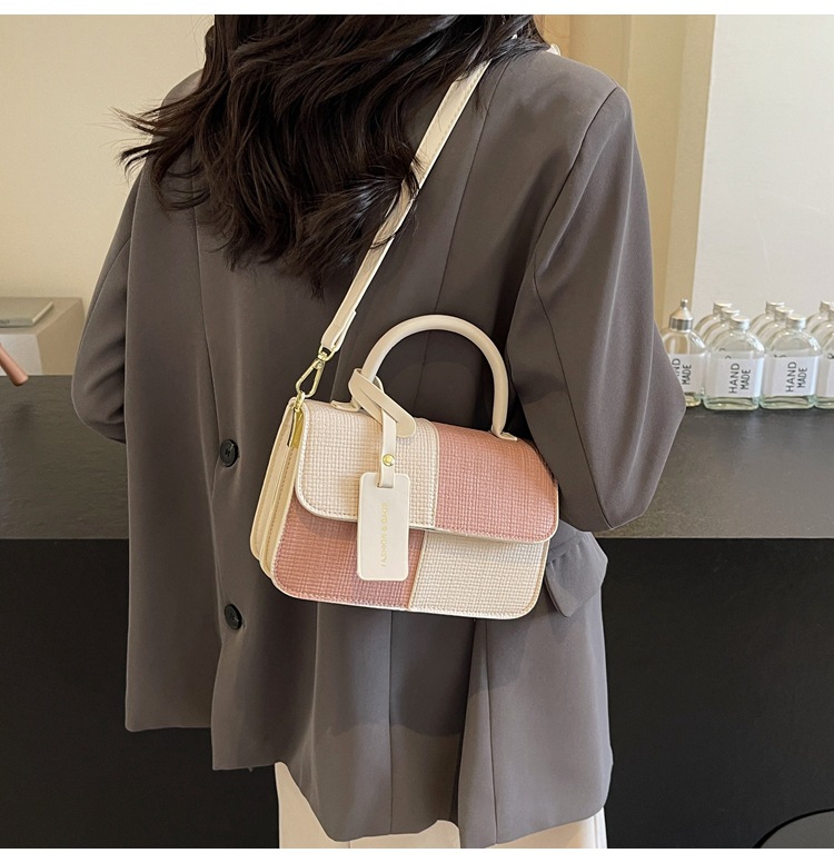 Bolso de mano coreano de contraste de color para mujeres 2024 primavera y verano nuevo bolso de moda universal bolso pequeño de nicho textura mochila