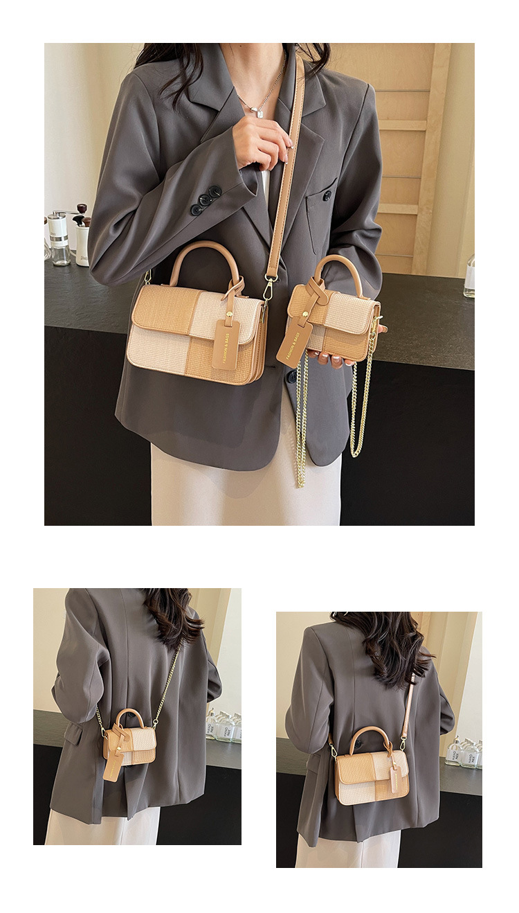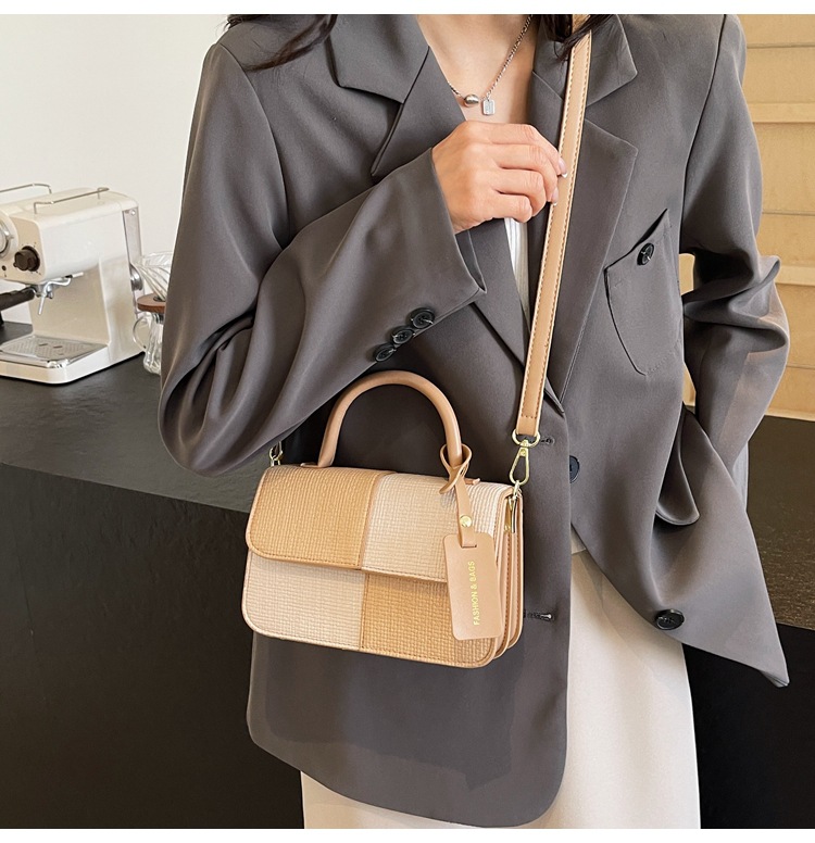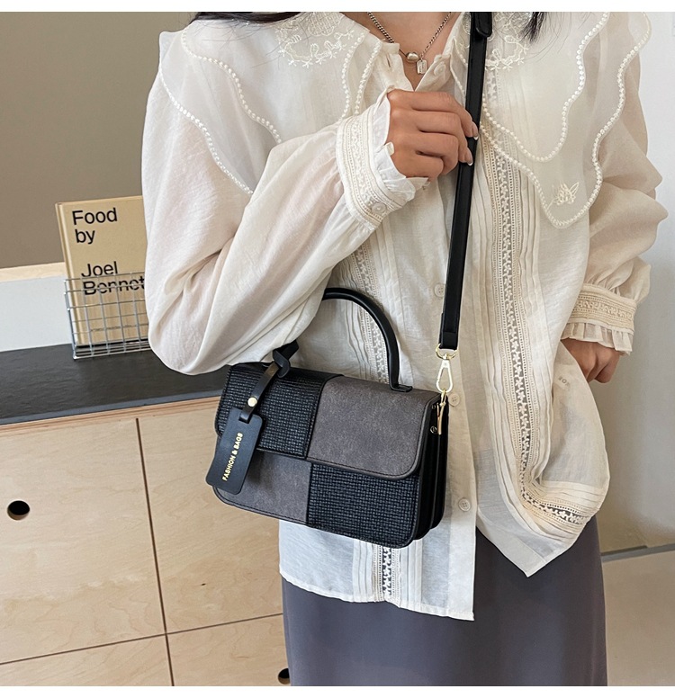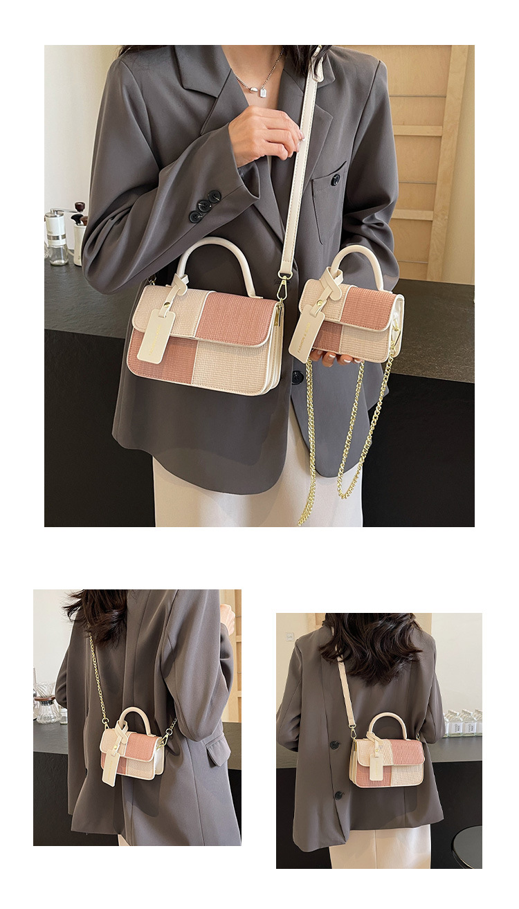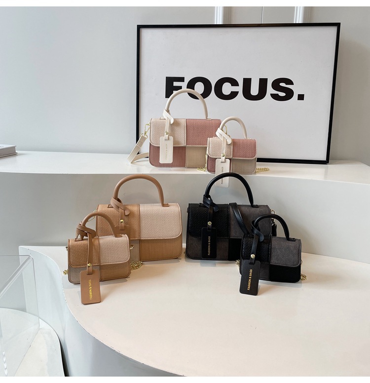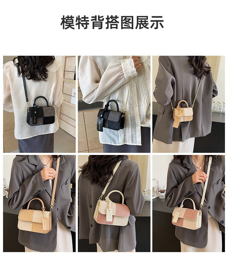 Bolso de mano coreano de contraste de color para mujeres 2024 primavera y verano nuevo bolso de moda universal bolso pequeño de nicho textura mochila