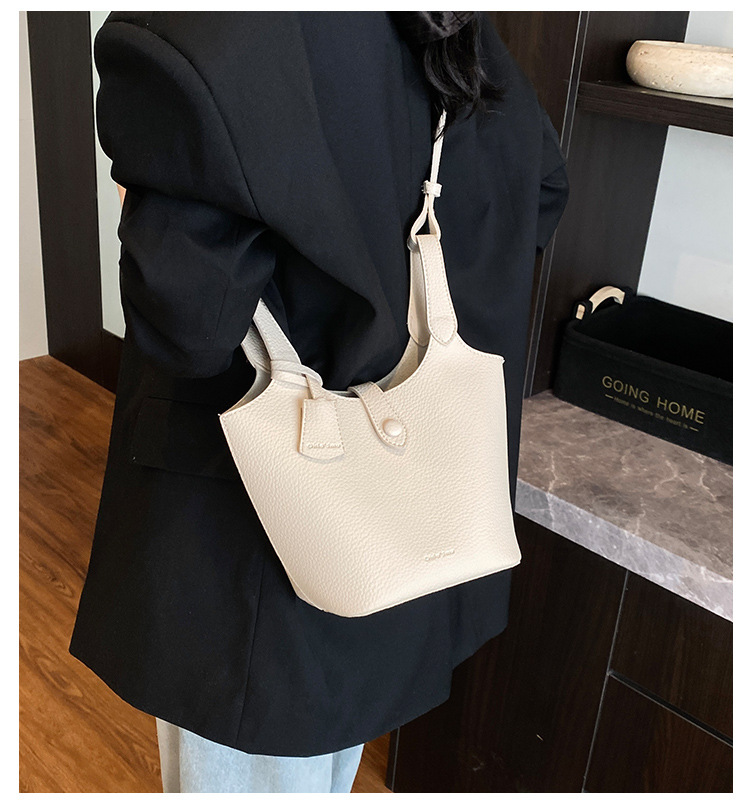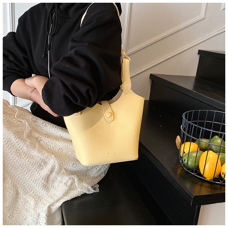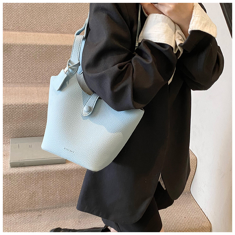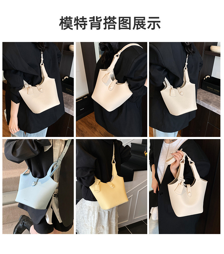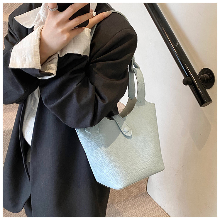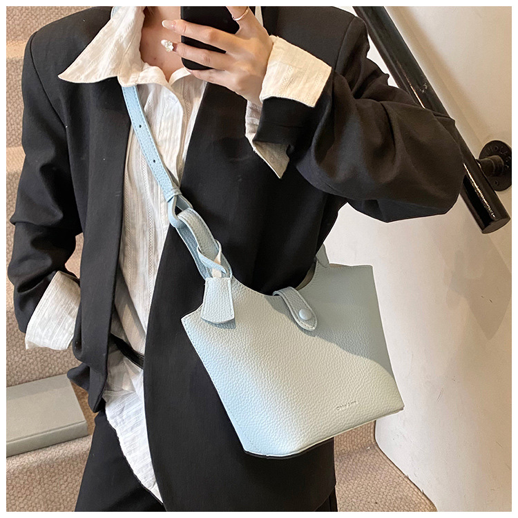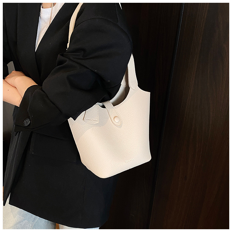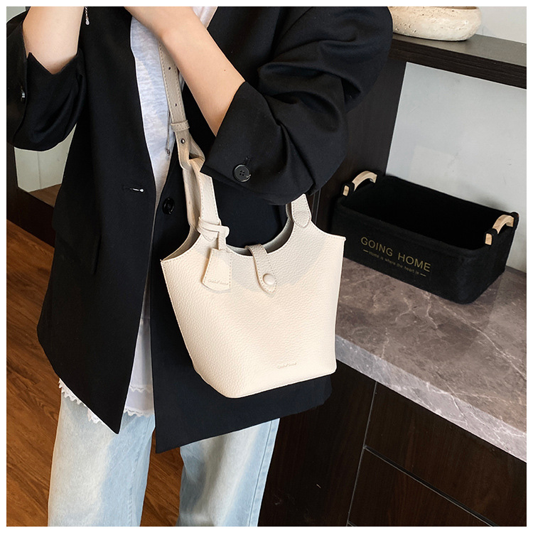 Moda coreana de gran capacidad bolsas de cubo de mano mujeres 2025 primavera y verano nueva canasta de lichi mochila de hombro