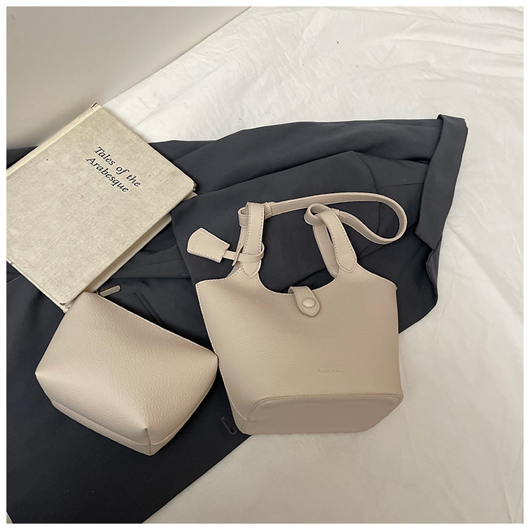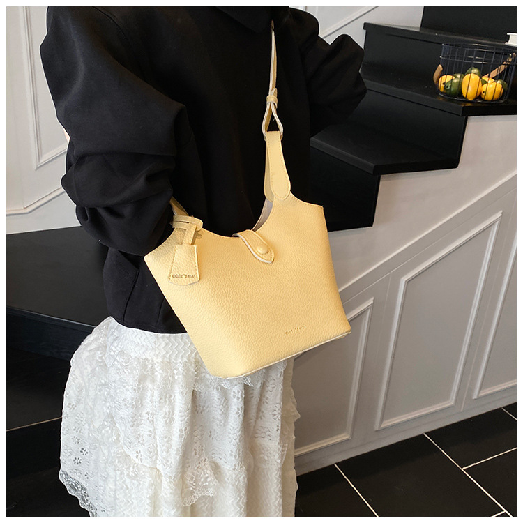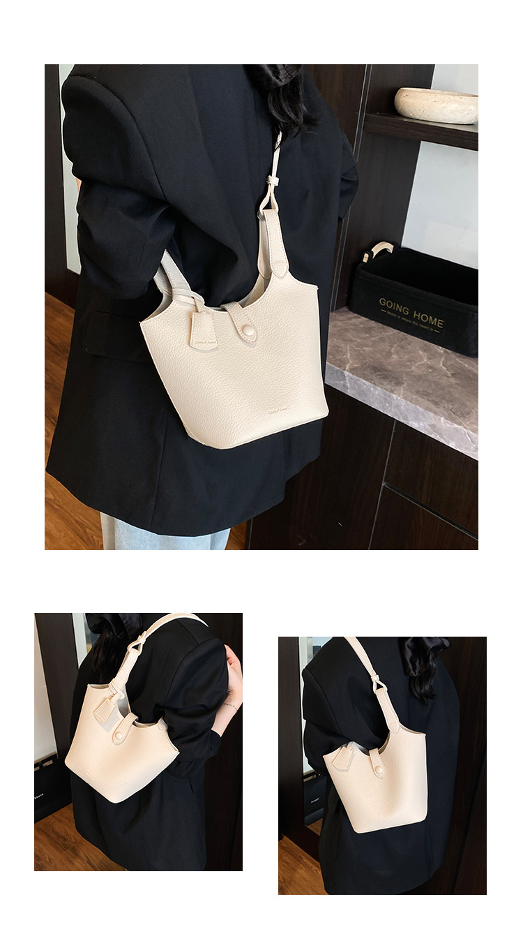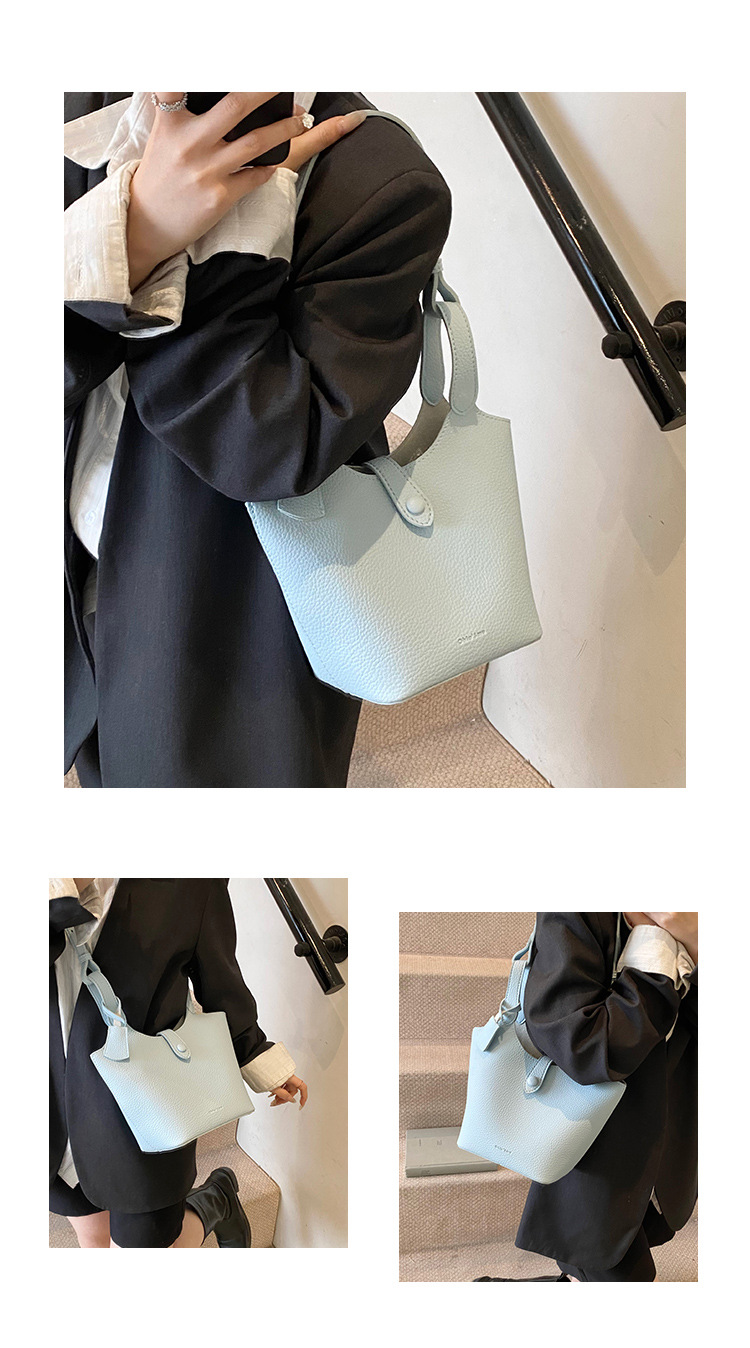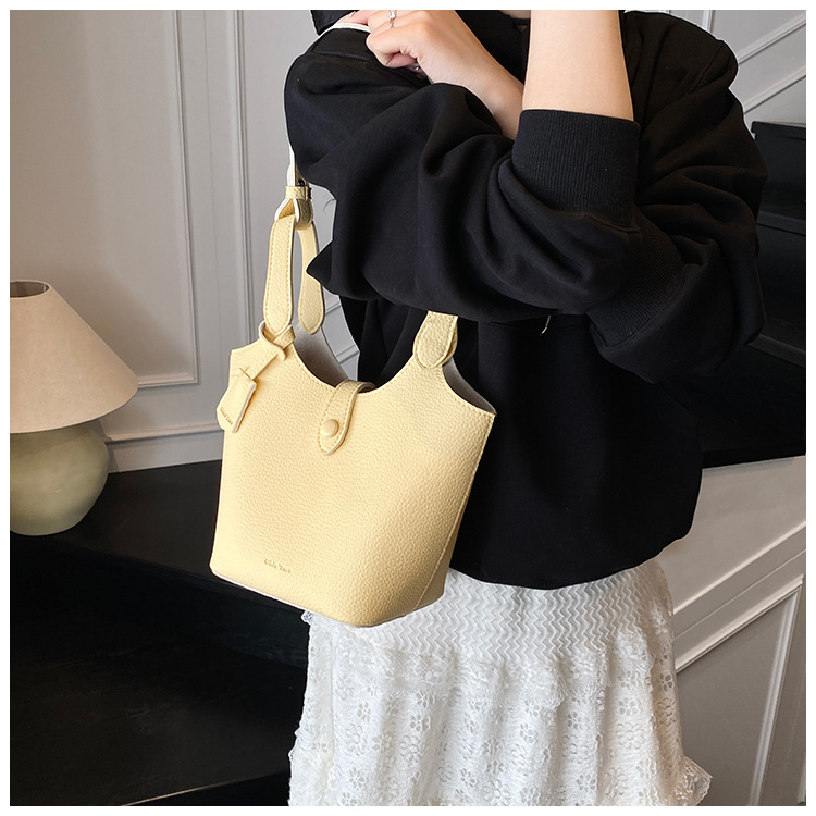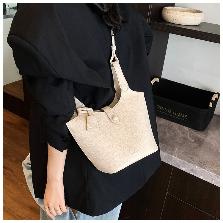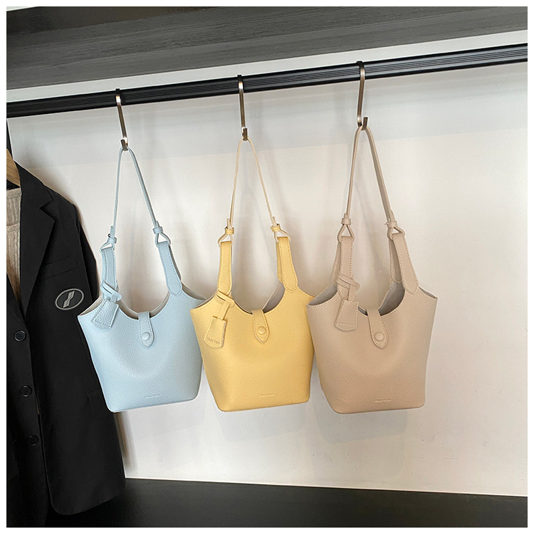 Moda coreana de gran capacidad bolsas de cubo de mano mujeres 2025 primavera y verano nueva canasta de lichi mochila de hombro