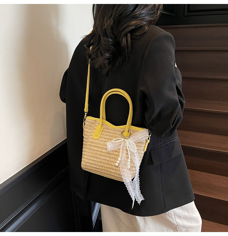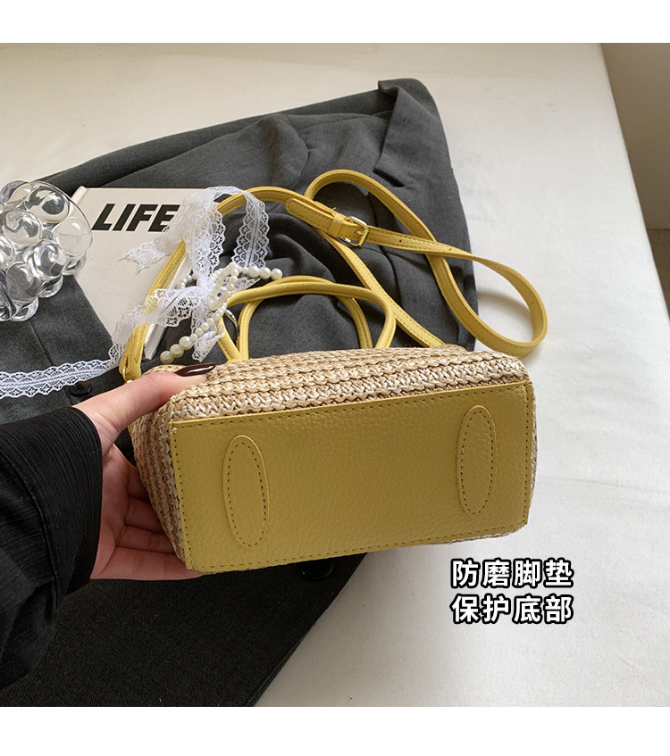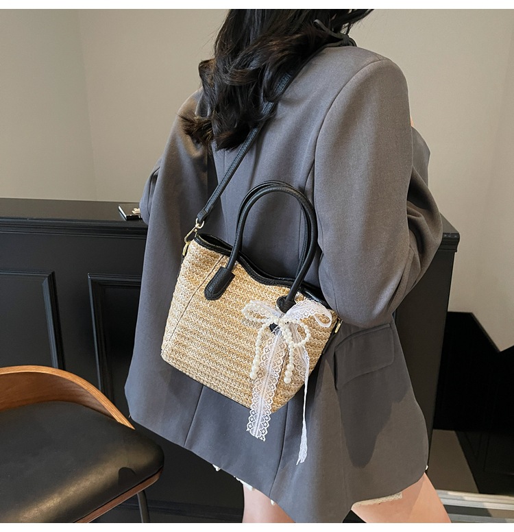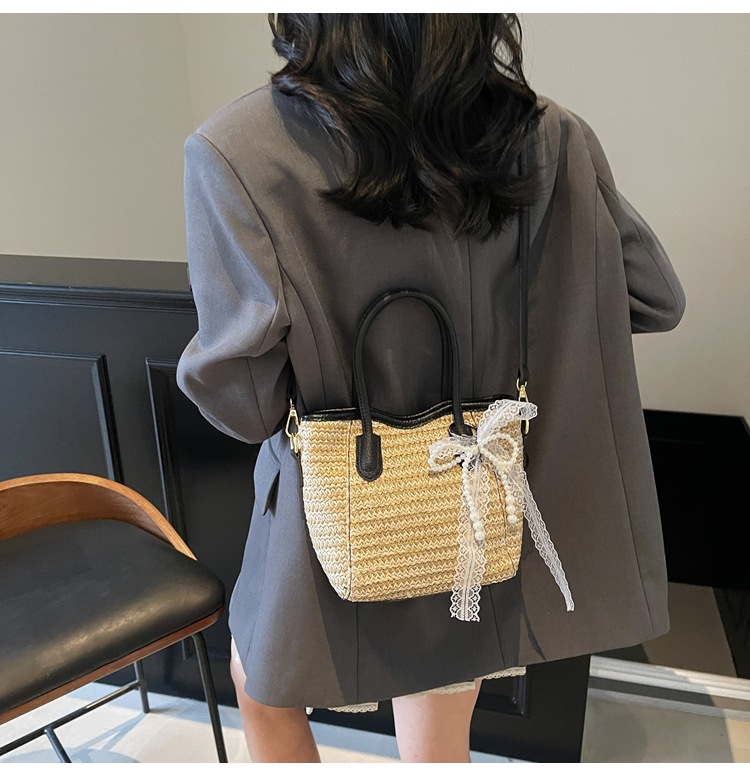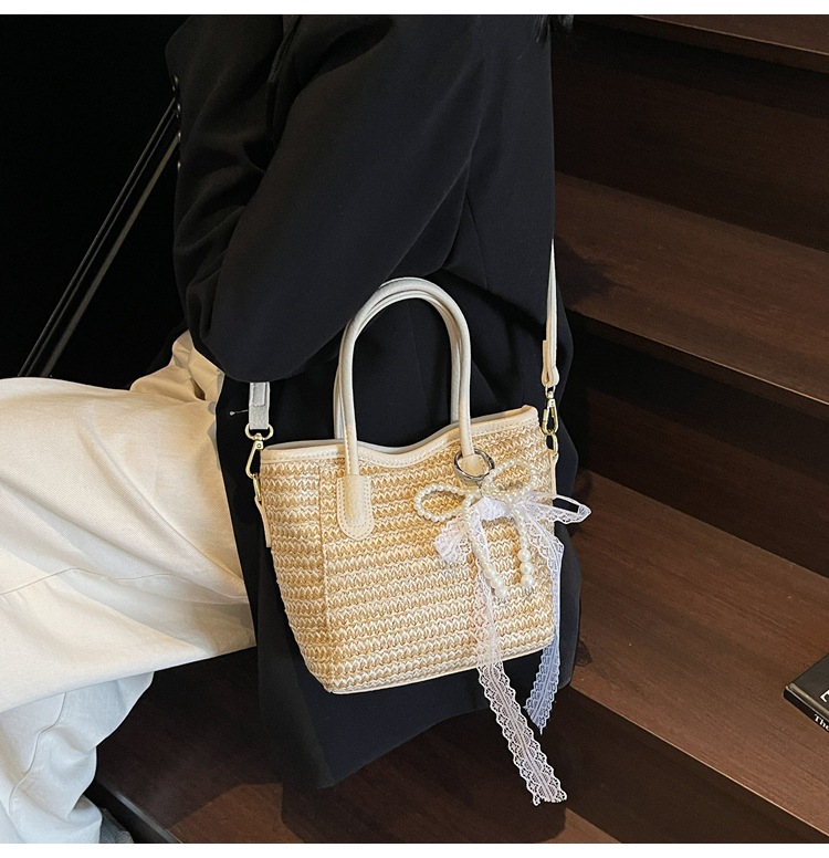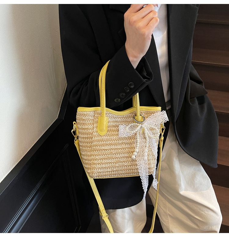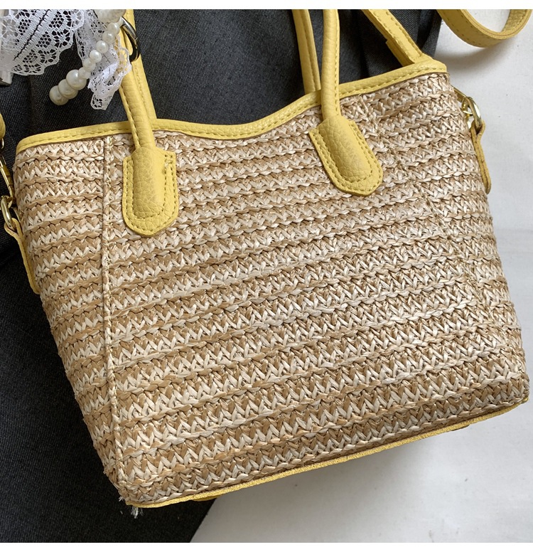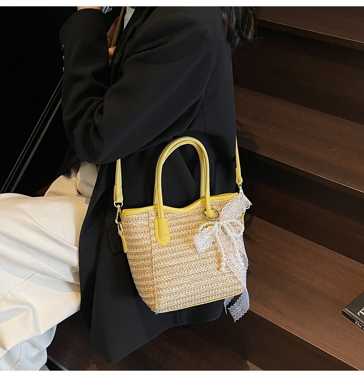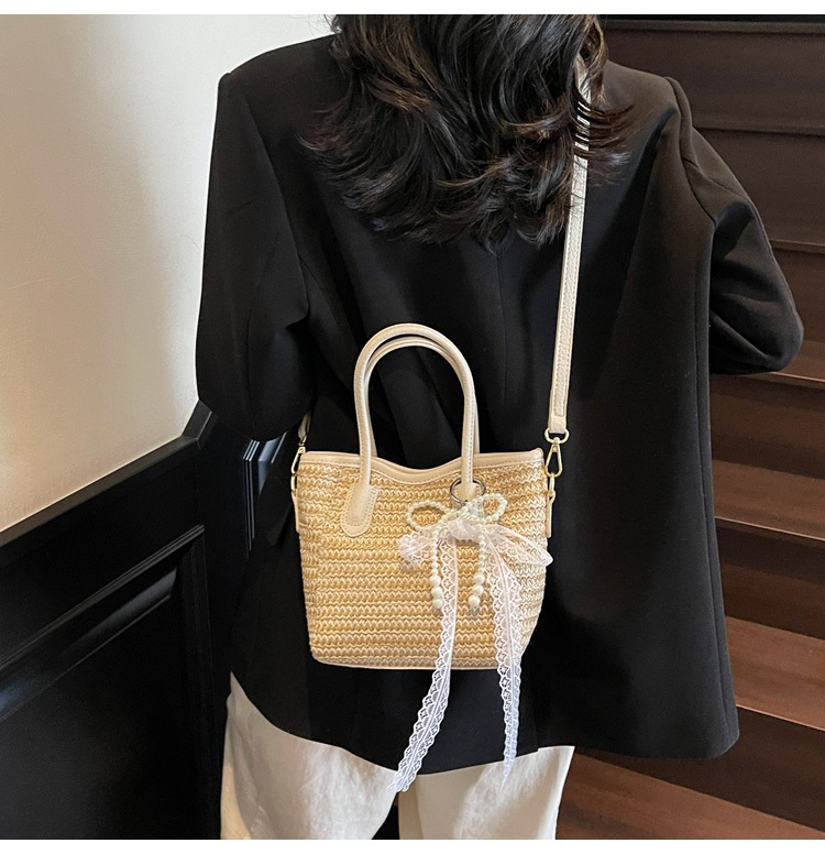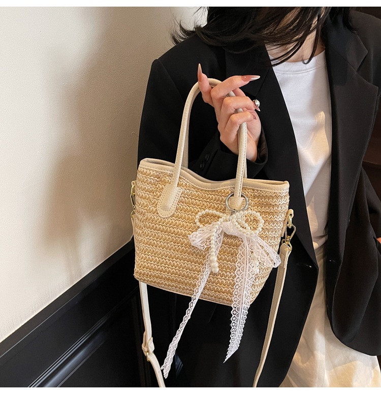 Bolso de cubo portátil de paja de gran capacidad de tendencia para mujer 2025 nuevo bolso de mensajero de hombro de moda de viaje de vacaciones en la playa