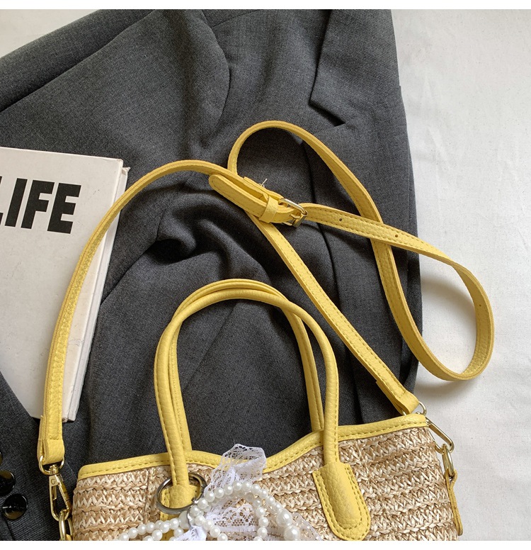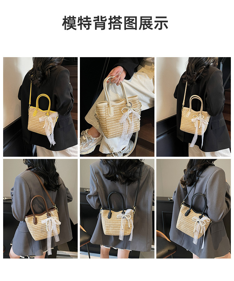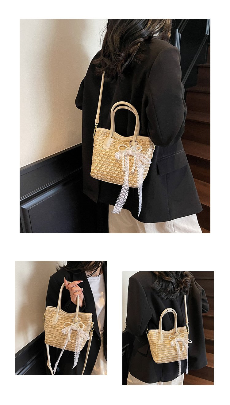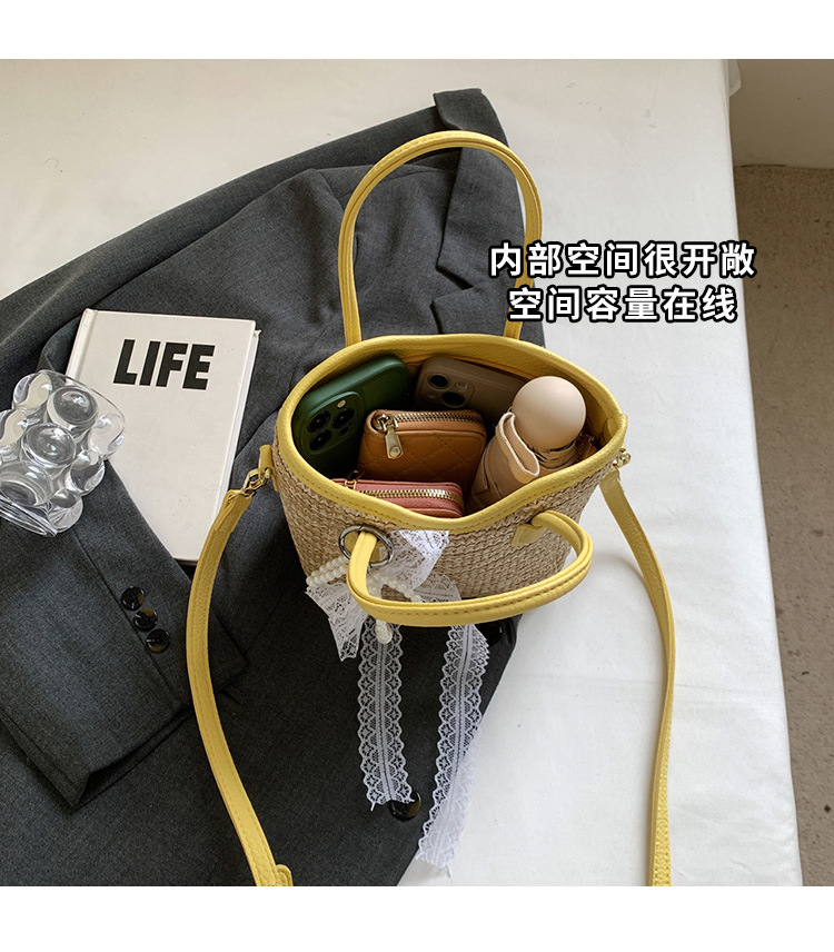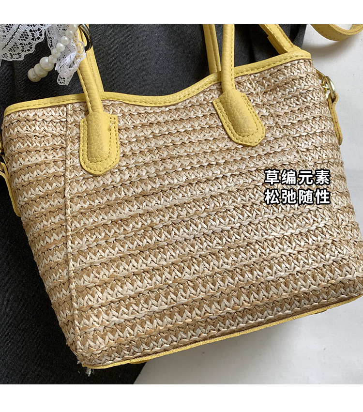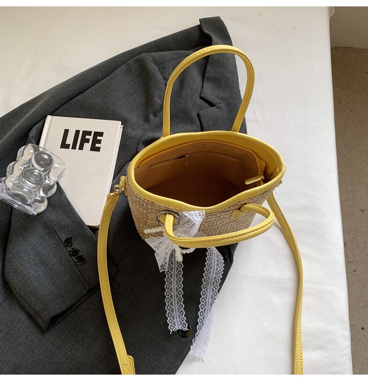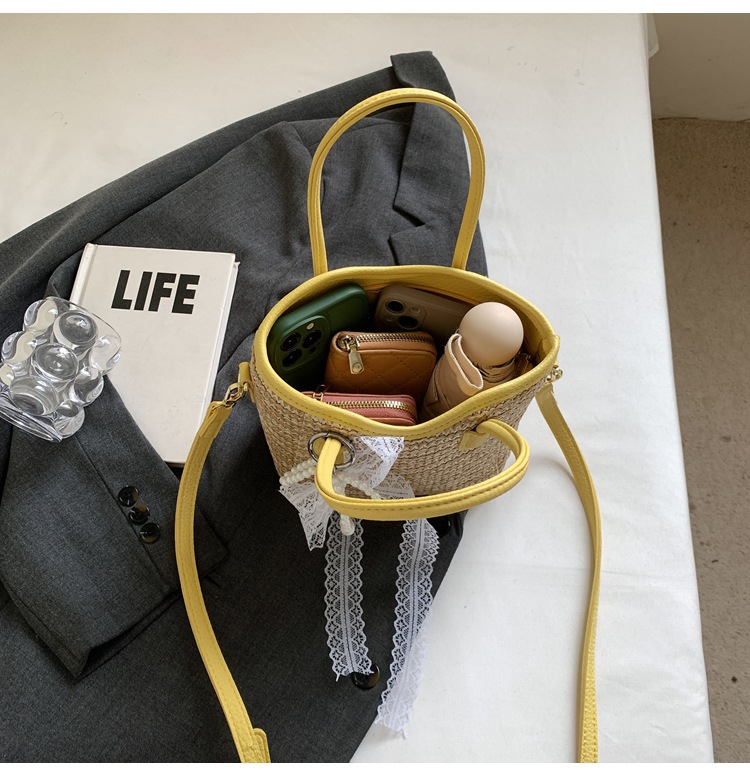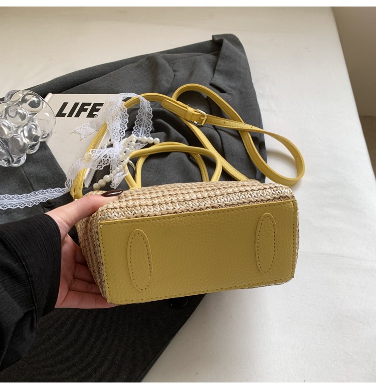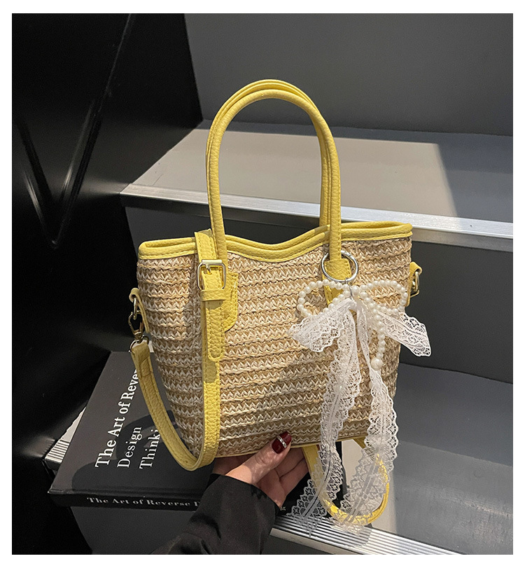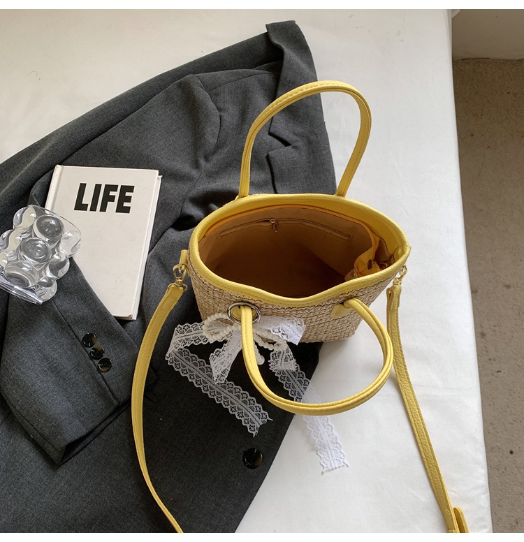 Bolso de cubo portátil de paja de gran capacidad de tendencia para mujer 2025 nuevo bolso de mensajero de hombro de moda de viaje de vacaciones en la playa