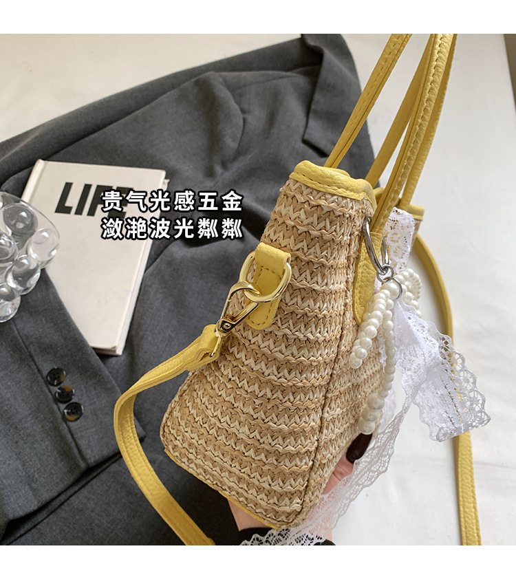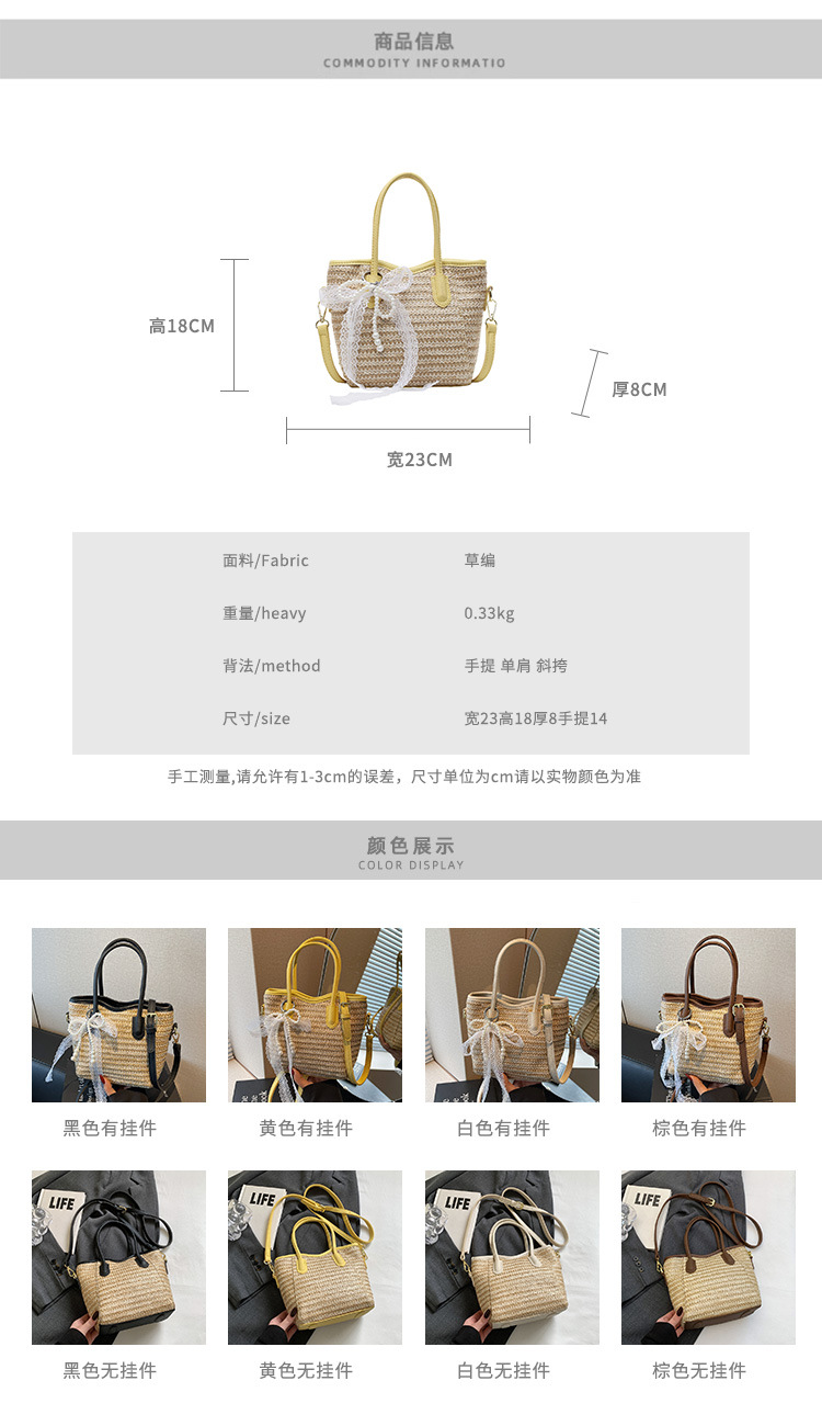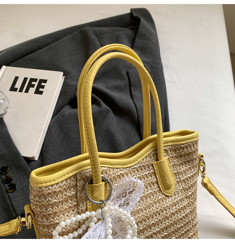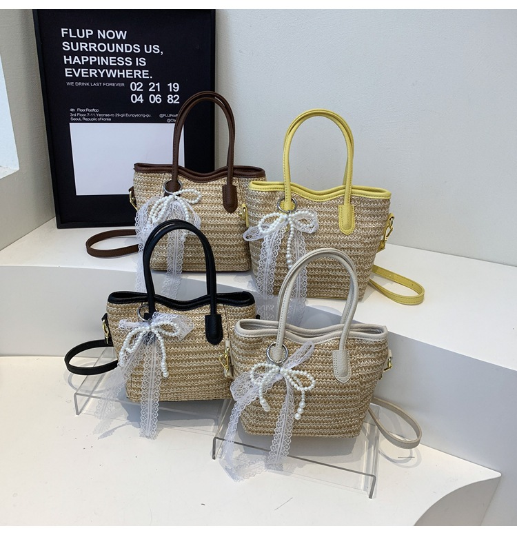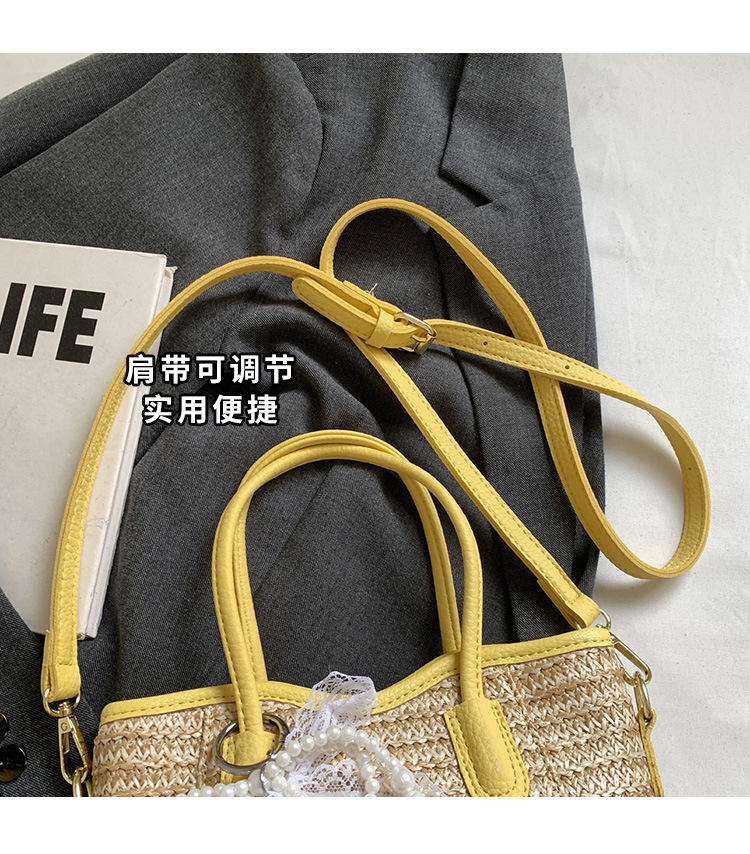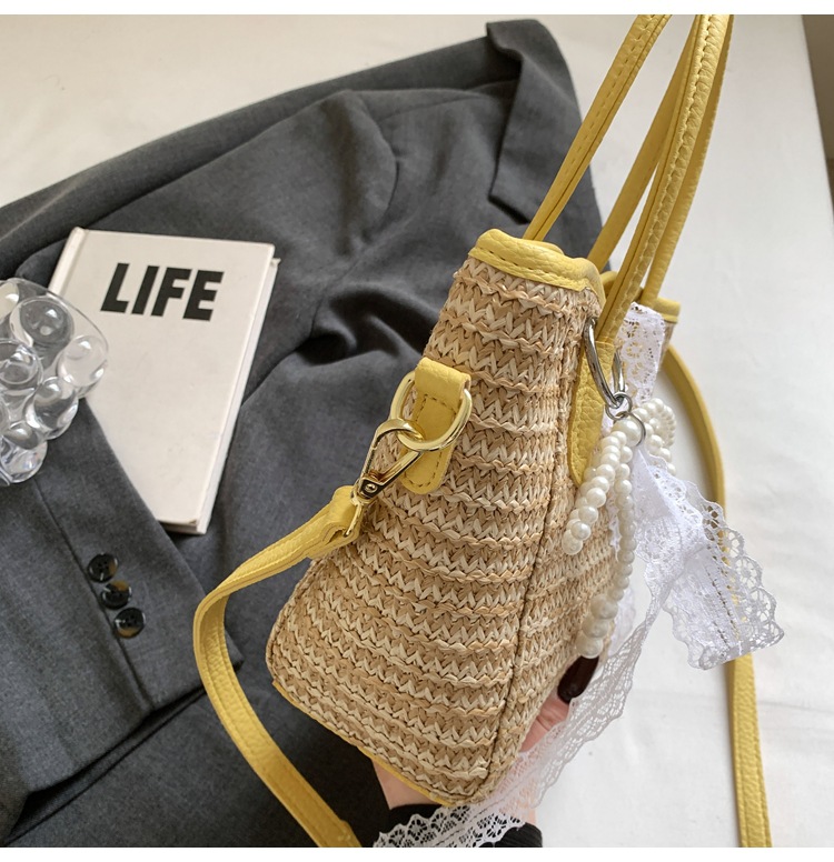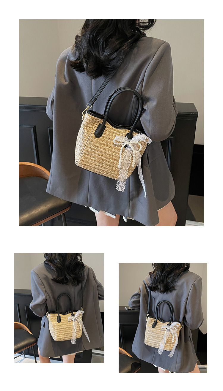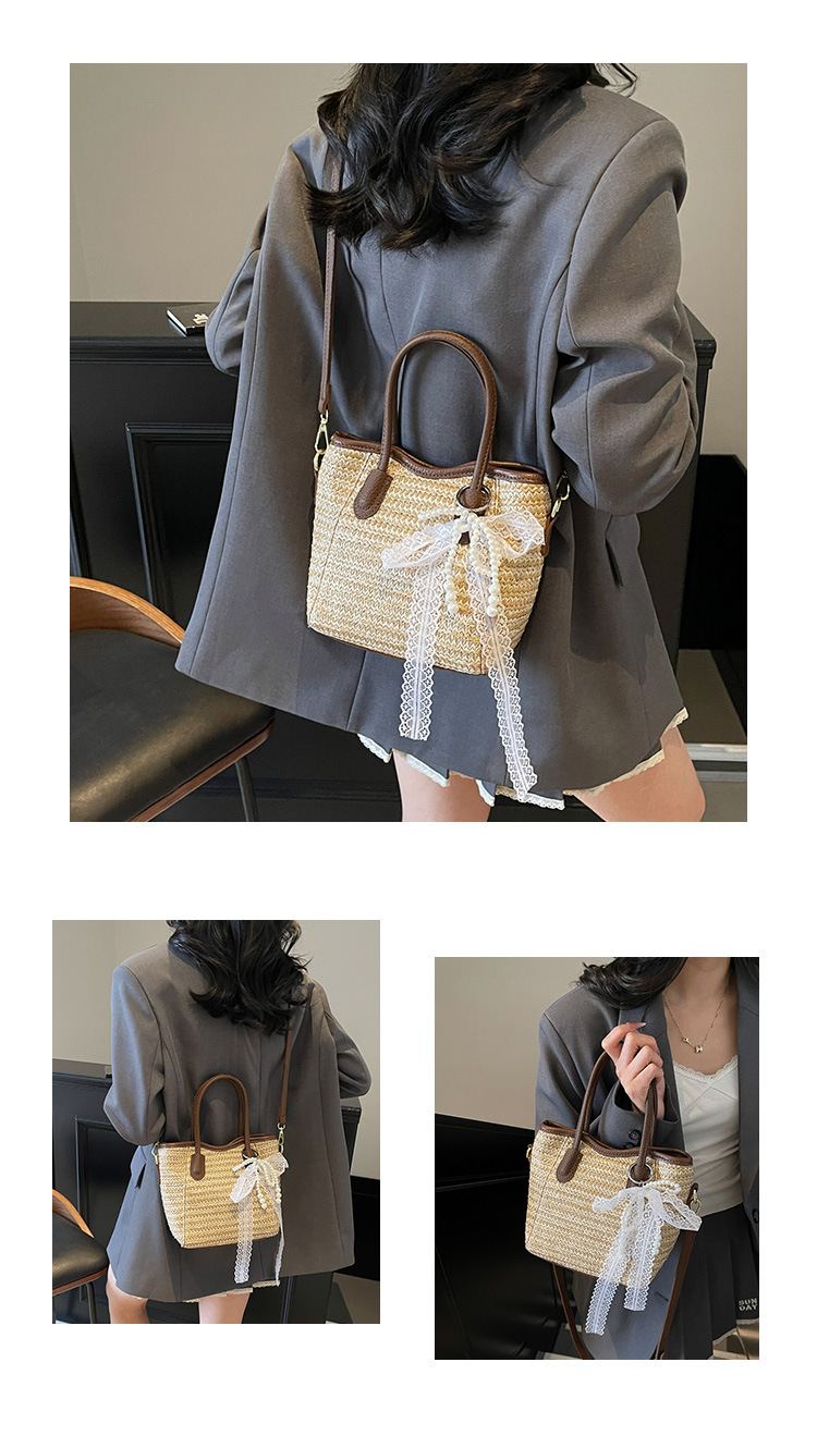 Bolso de cubo portátil de paja de gran capacidad de tendencia para mujer 2025 nuevo bolso de mensajero de hombro de moda de viaje de vacaciones en la playa