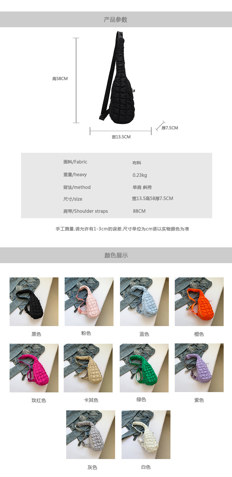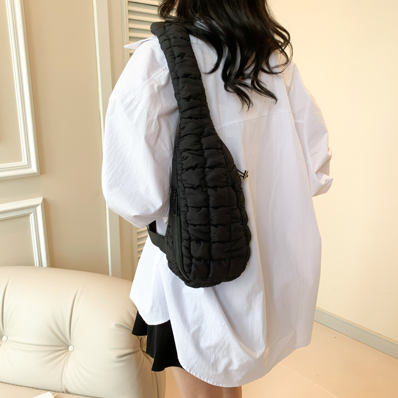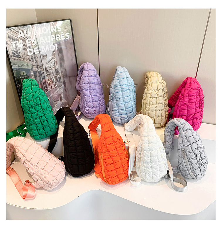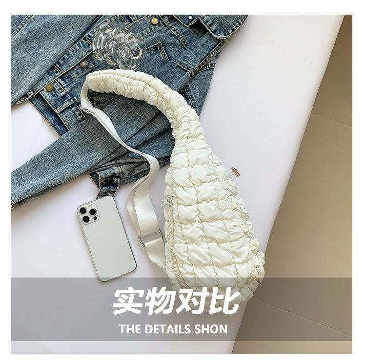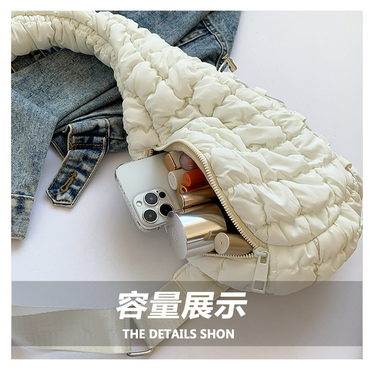 2024 nuevo bolso de pecho casual para mujer bolso de algodón de plumón de burbuja de estilo coreano bolso de mensajero de hombro ligero bolso de nube plisada