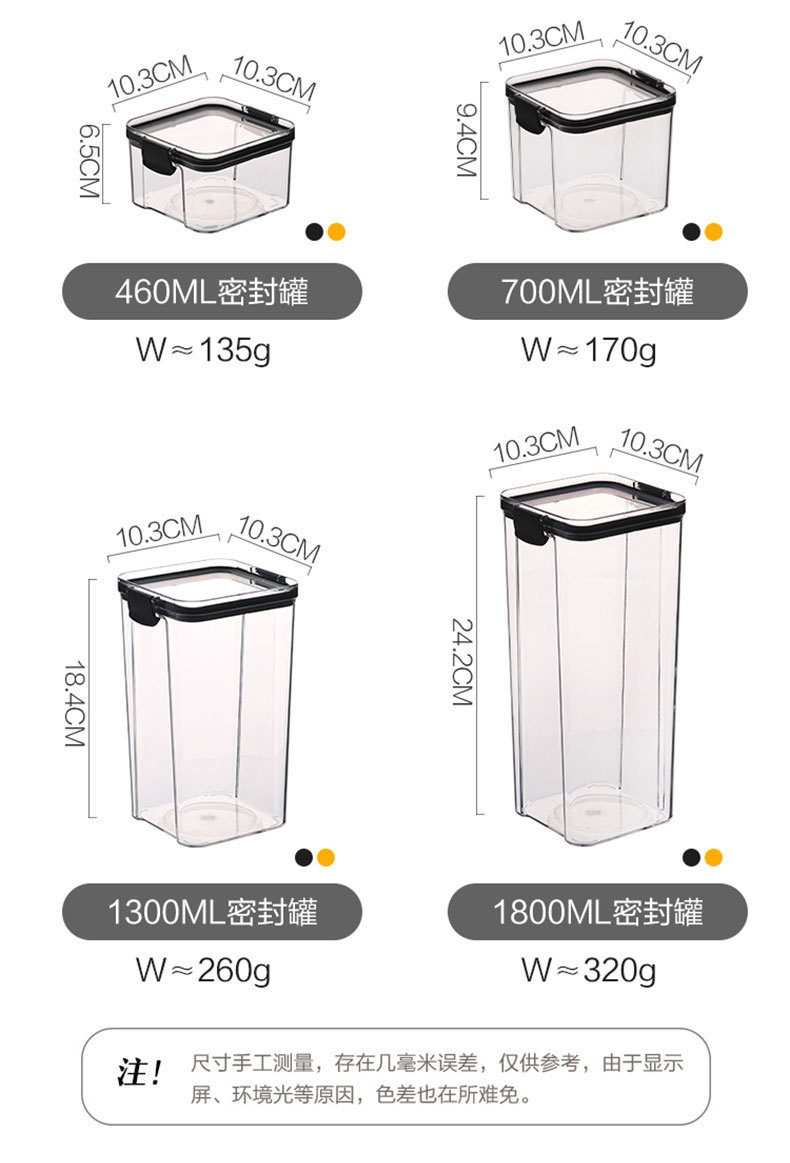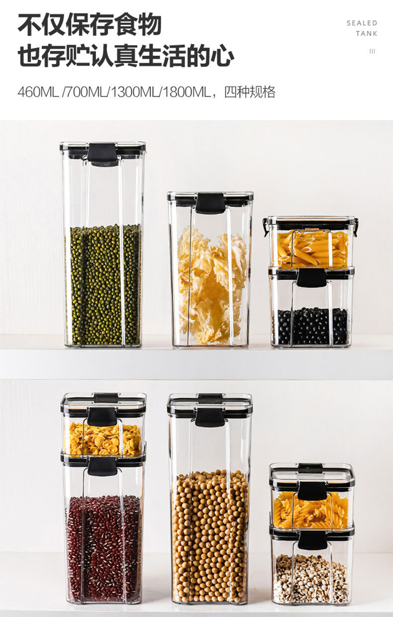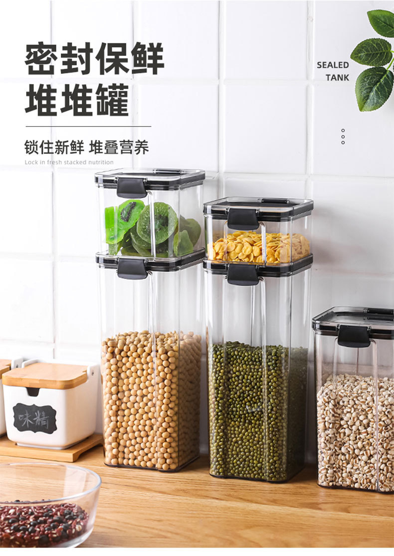 Tanque sellado de granos diversos, tanque de almacenamiento de granos de granos de cocina, tanque de plástico transparente de grado alimenticio, tanque de almacenamiento de productos secos, caja de almacenamiento de bocadillos