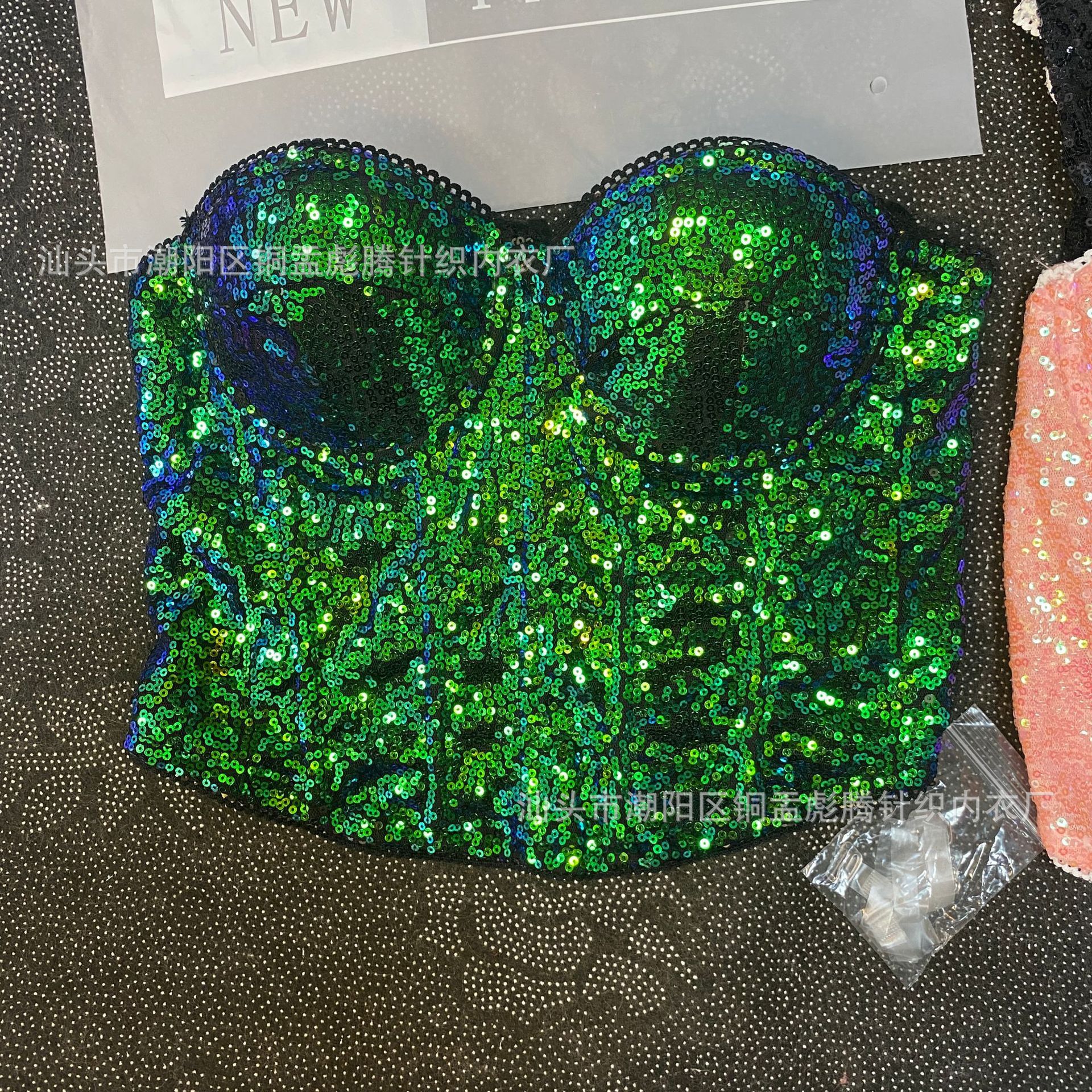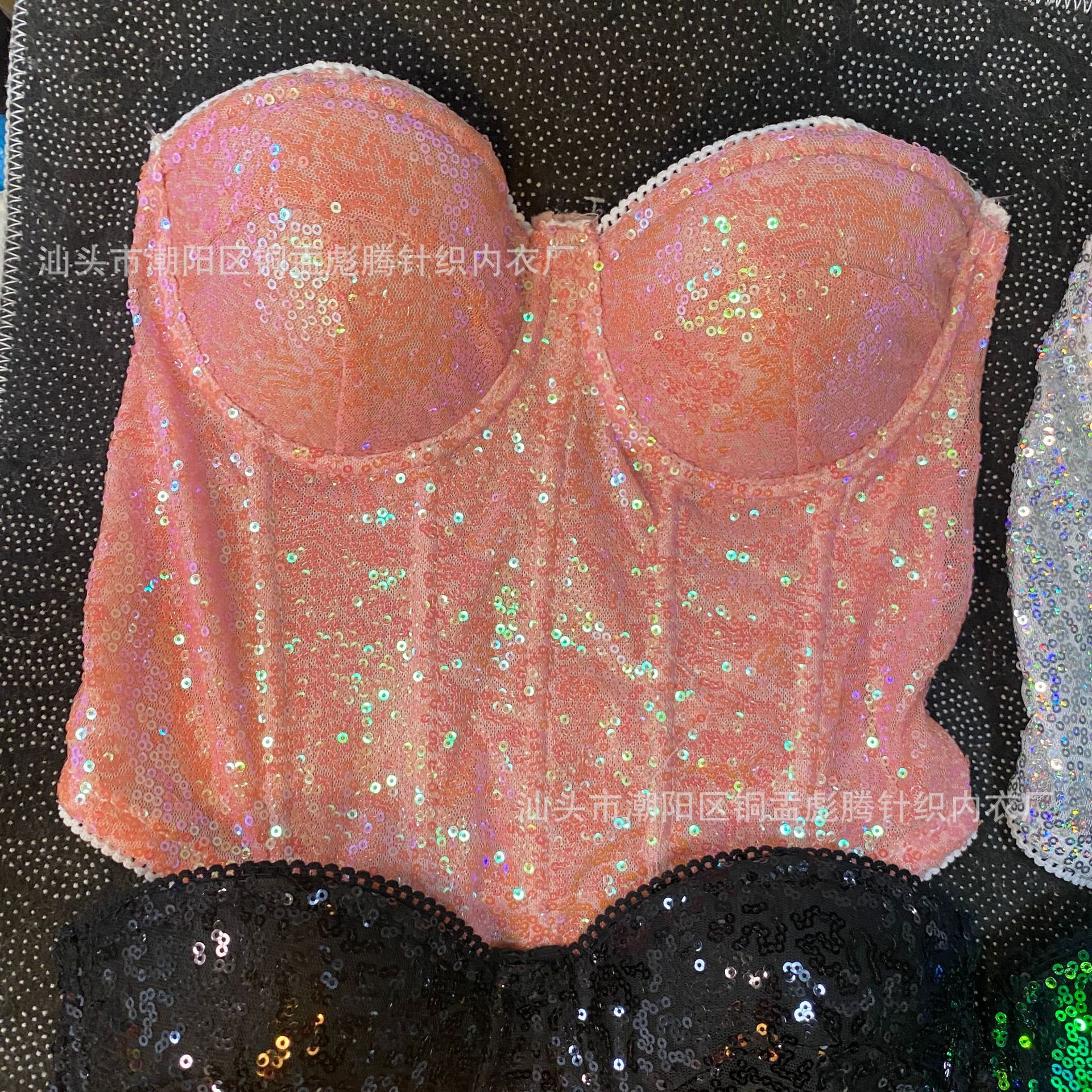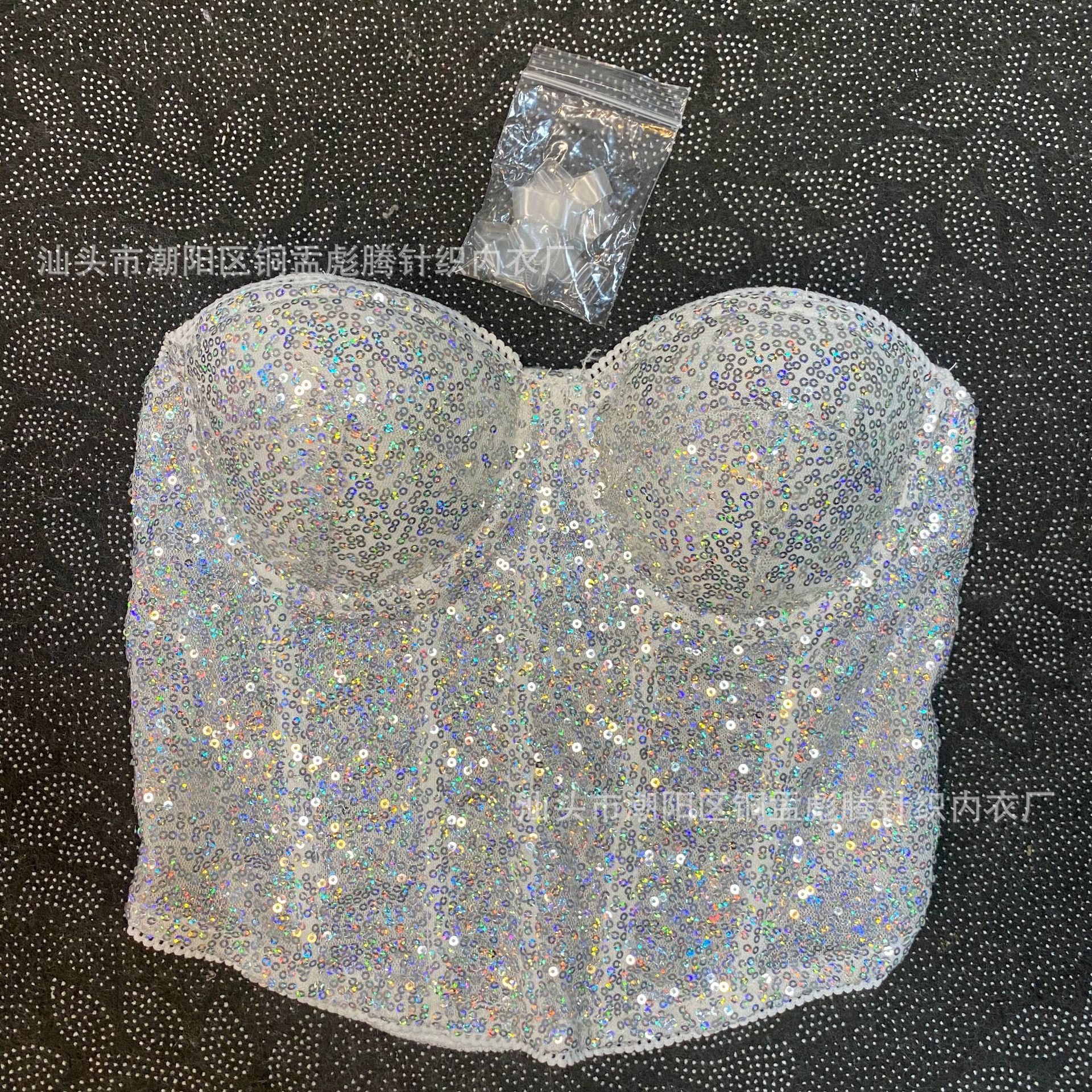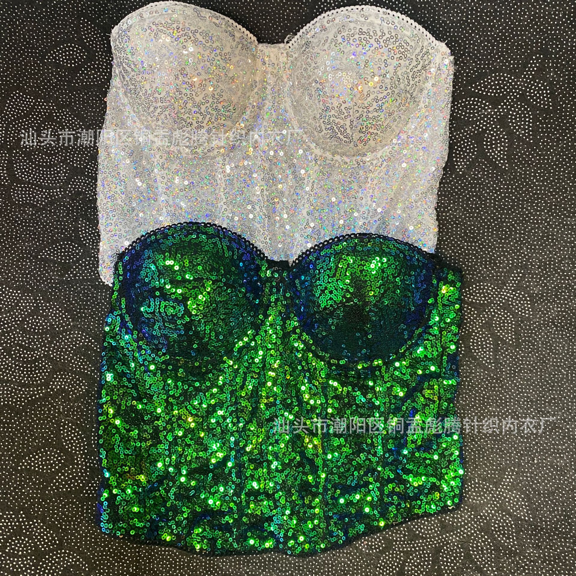 Club nocturno de estilo europeo y americano brillante brillo de pechos industria pesada fantasía sequinilla de hueso de pescado corsé de entrega de correas de hombro de cola miscelánea