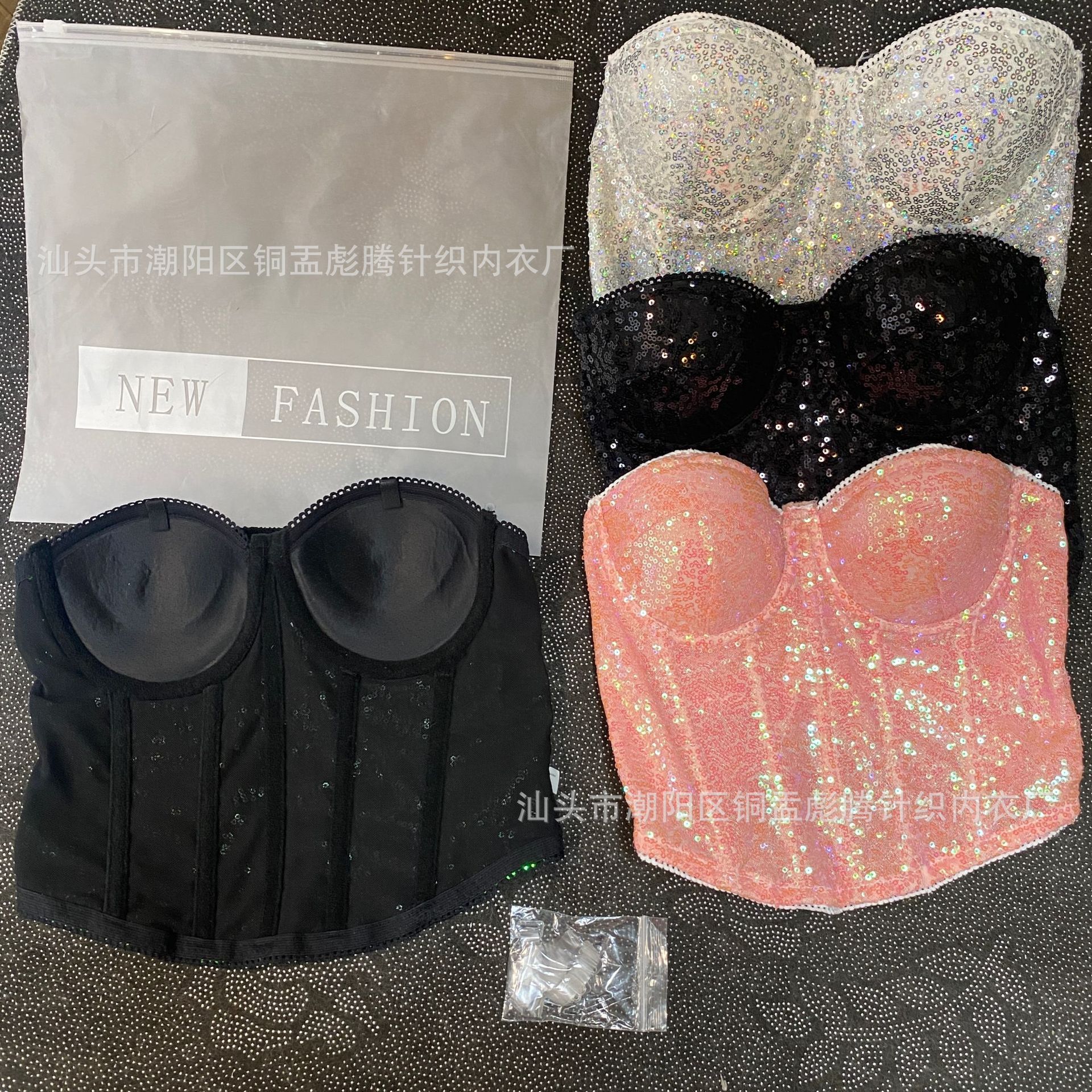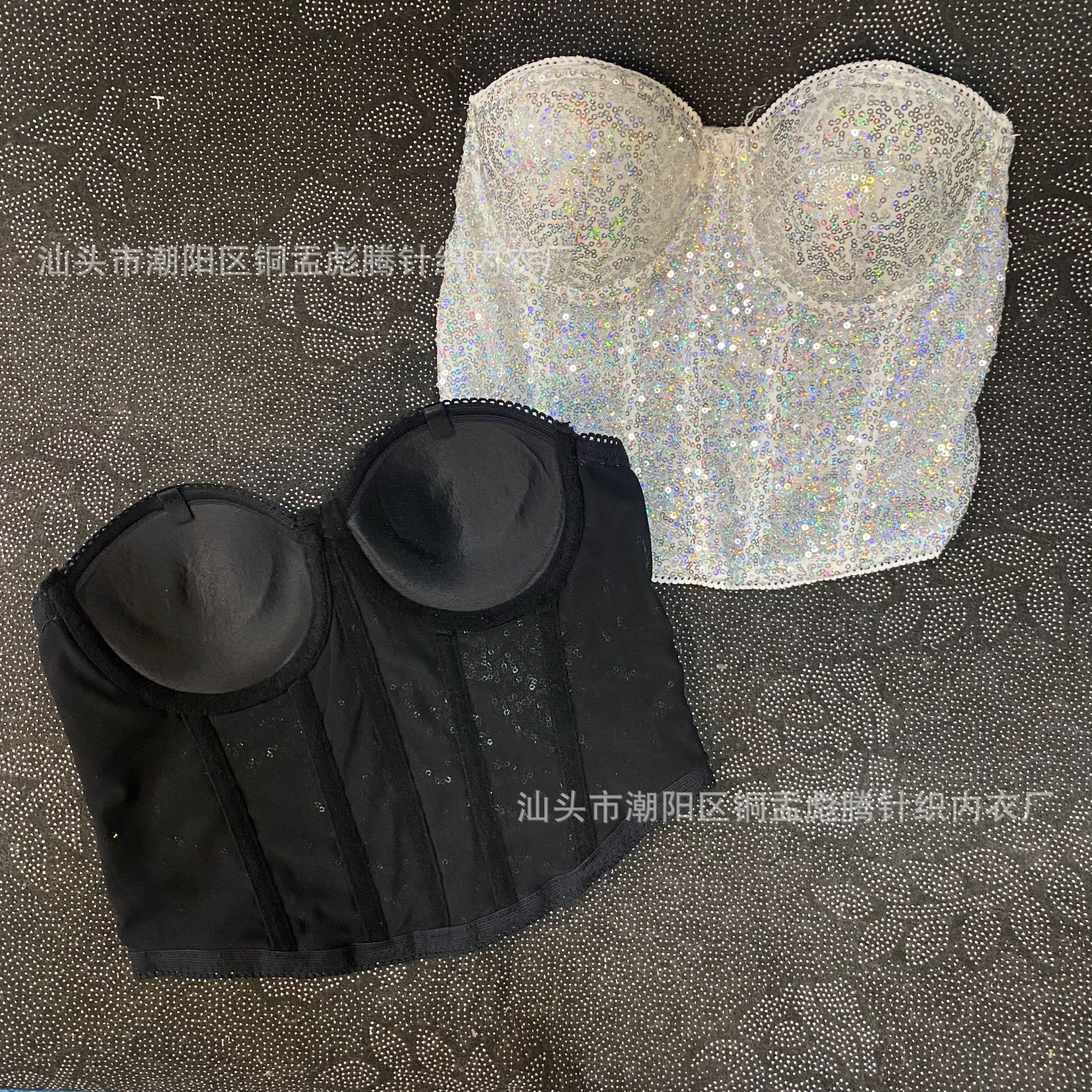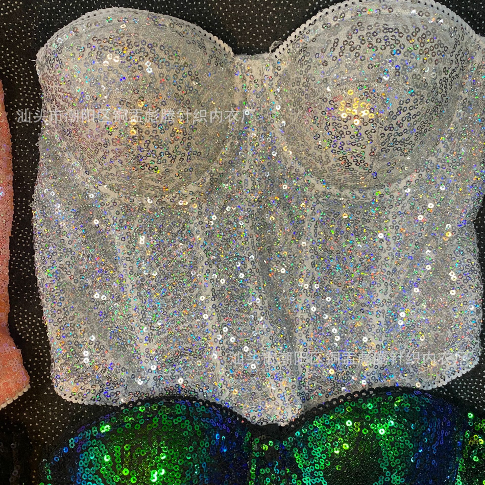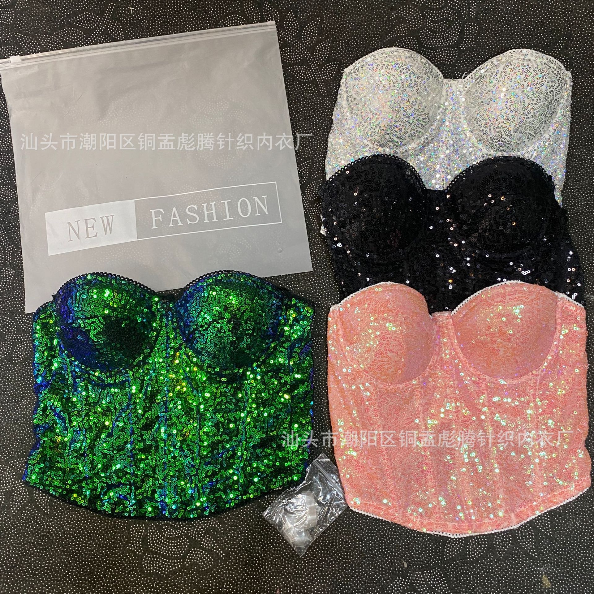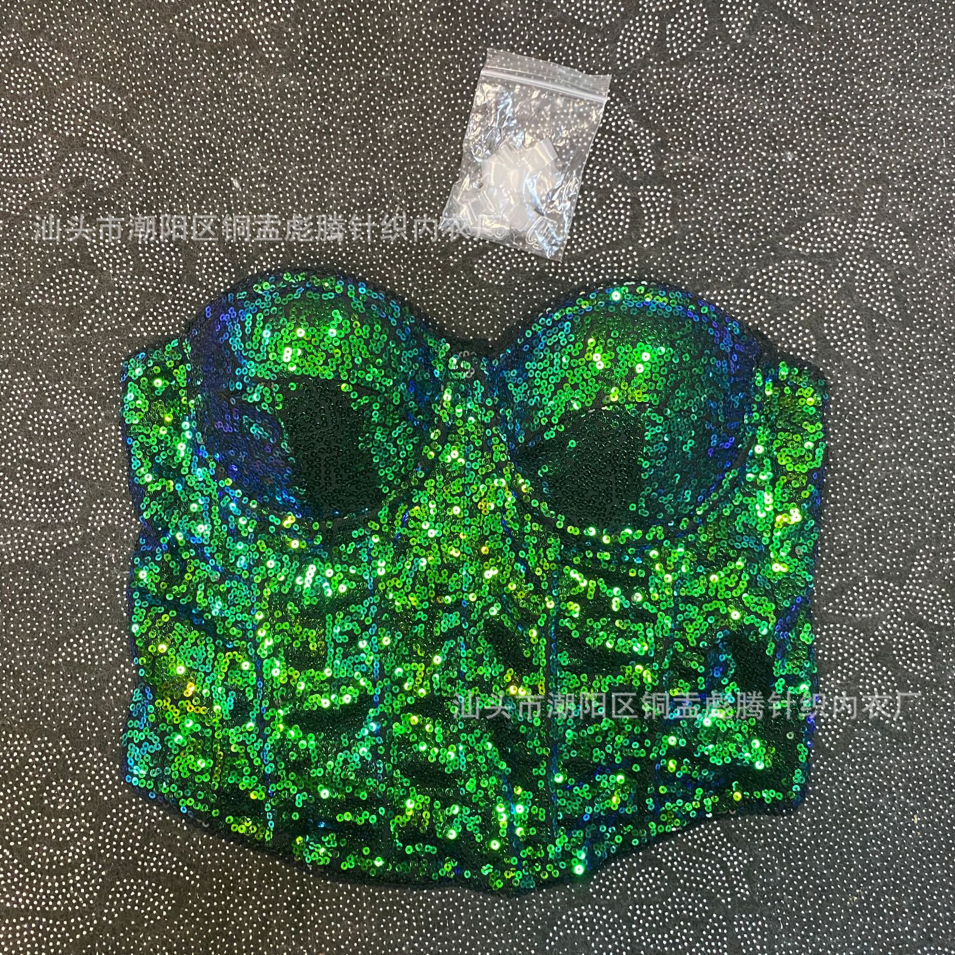 Club nocturno de estilo europeo y americano brillante brillo de pechos industria pesada fantasía sequinilla de hueso de pescado corsé de entrega de correas de hombro de cola miscelánea
