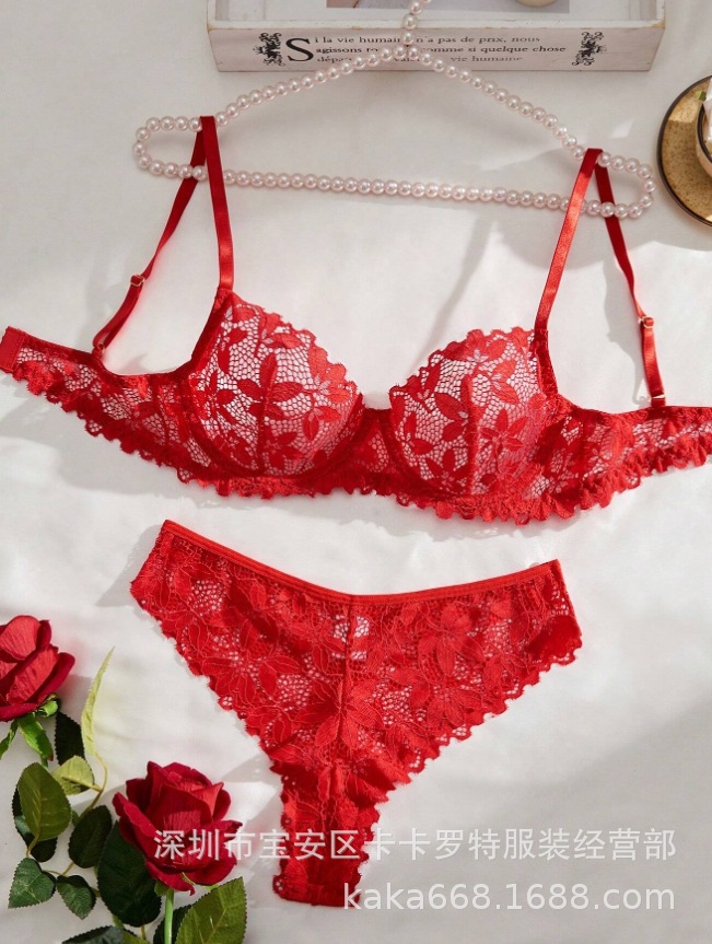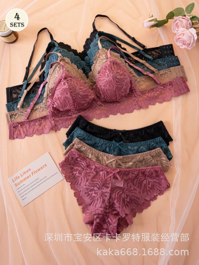 Nueva ropa interior de encaje europea y americana hueco sexy gran pecho pequeño conjunto de sujetadores al por mayor ropa interior de shein transfronteriza
