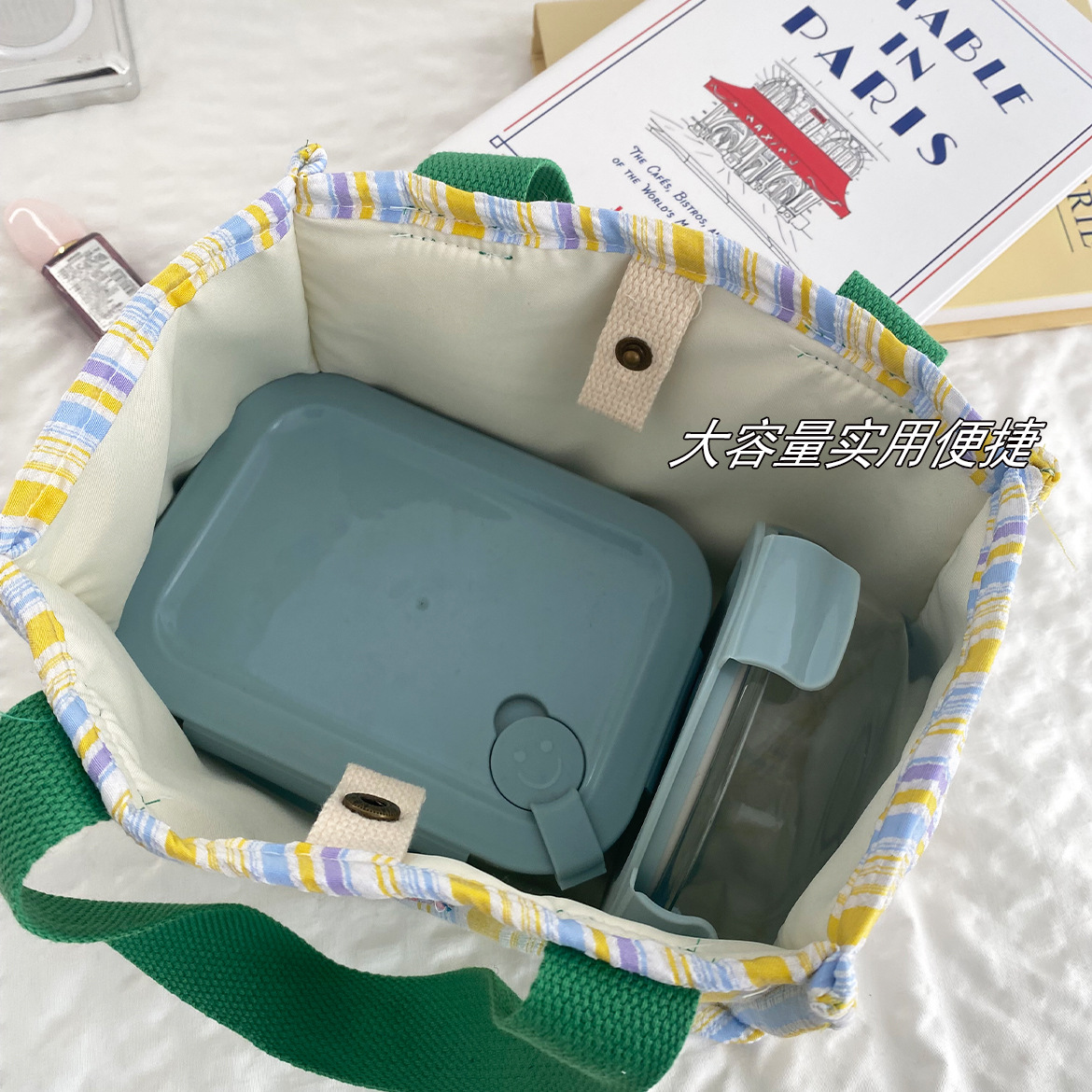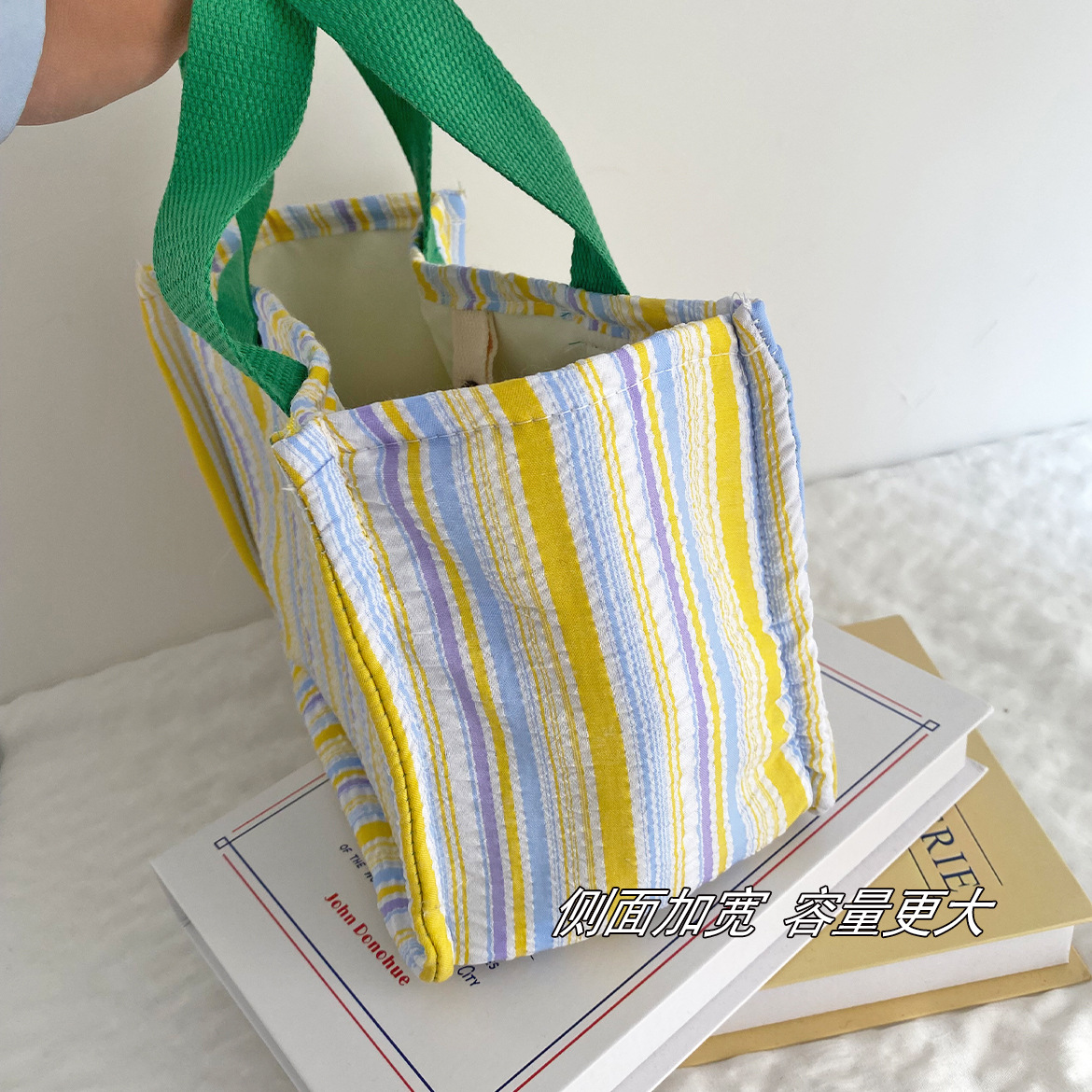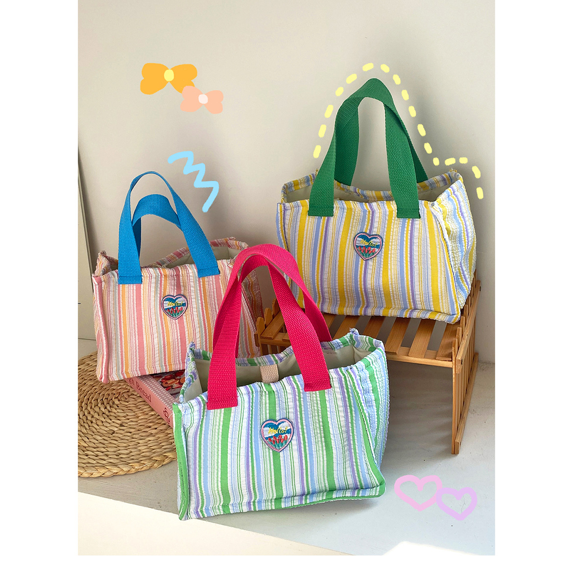 Bolsa de almuerzo de dopamina de contraste de color aislante de calor, bolsa de mano de rayas de espuma plegadas, bolsa de almuerzo encantadora para llevar bolsa de almuerzo al trabajo