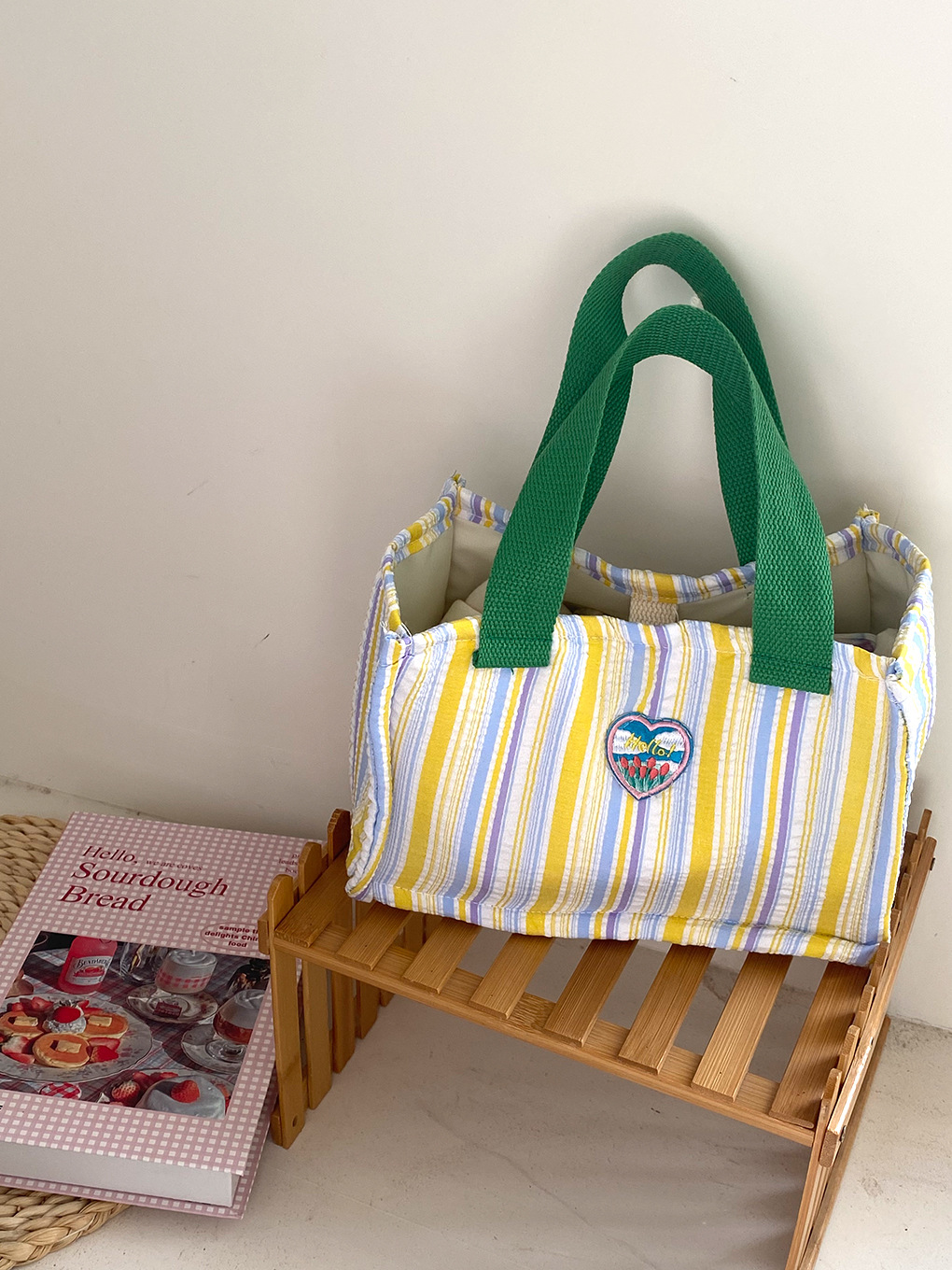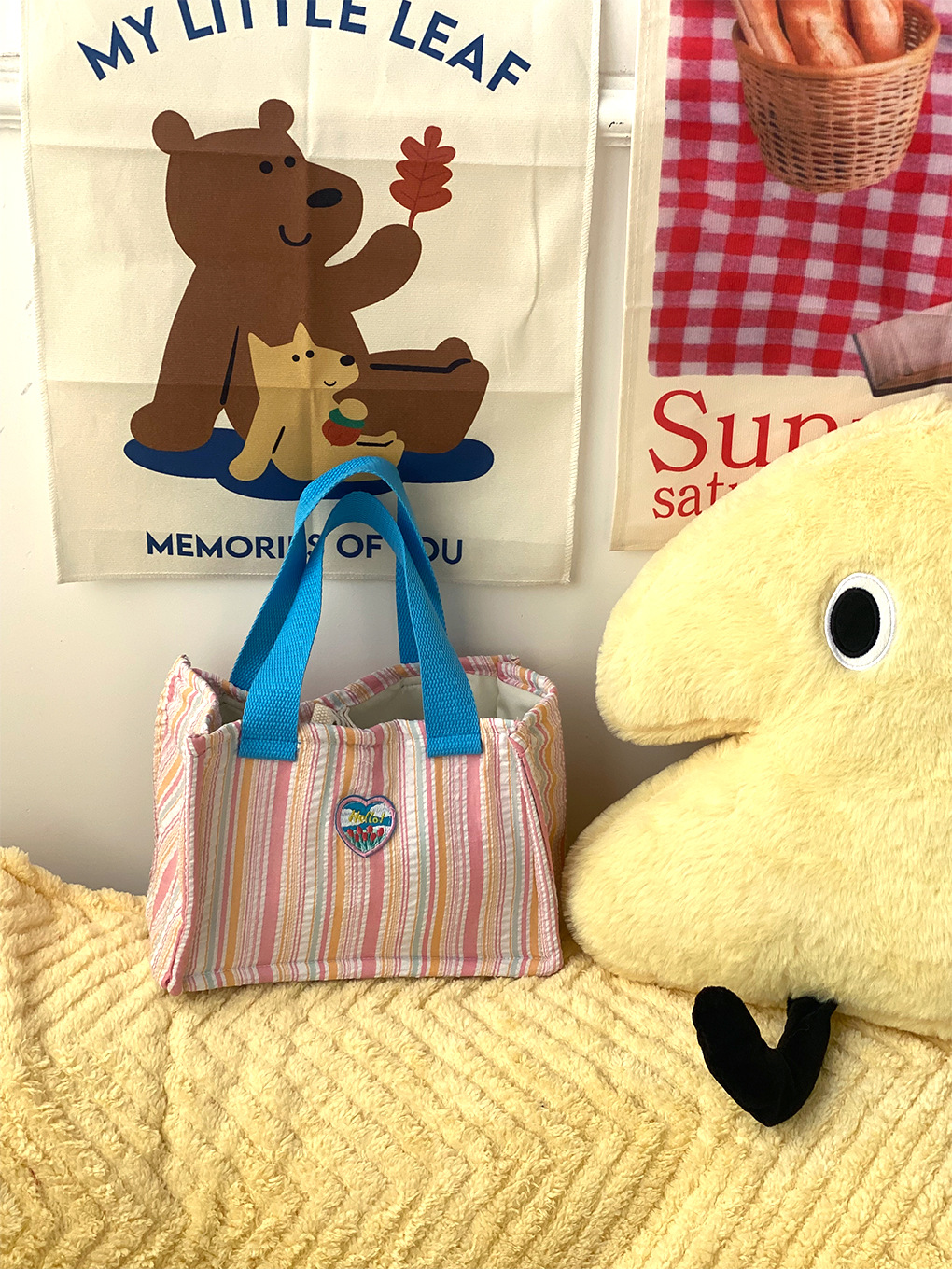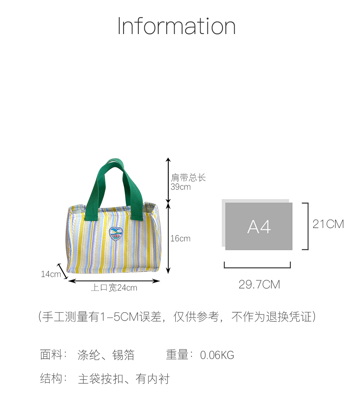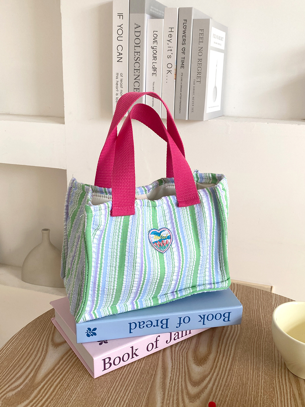 Bolsa de almuerzo de dopamina de contraste de color aislante de calor, bolsa de mano de rayas de espuma plegadas, bolsa de almuerzo encantadora para llevar bolsa de almuerzo al trabajo