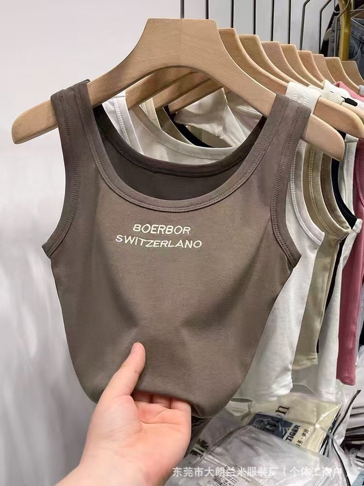 Chaleco pequeño de estilo coreano, mujer dulce y caliente con bordado en el interior, vestido corto sin mangas, base envuelta en el pecho, hermosa camisa de espalda