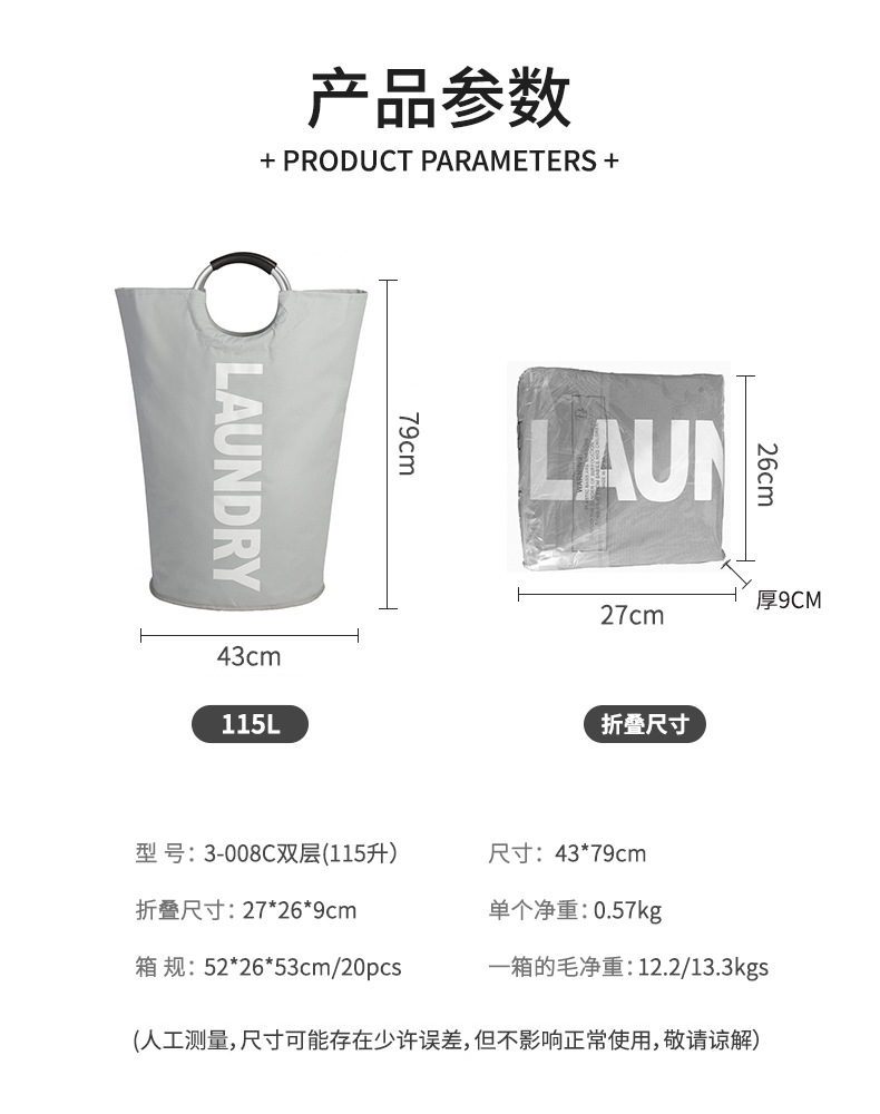115 litros de doble gran tamaño cesta de ropa sucia transfronteriza de gran capacidad de baño cesta de juguetes bolsa de lavandería plegable