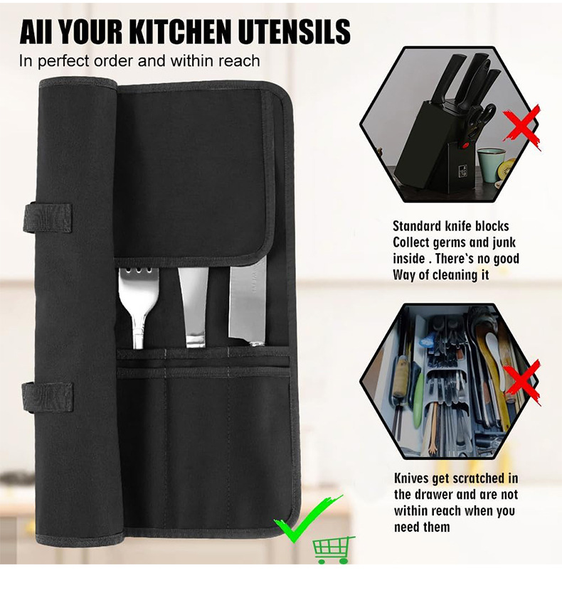 Bolsa de almacenamiento de cuchillos transfronterizos Oxford tela portátil bolsa de almacenamiento de cuchillos de comedor occidental de gran capacidad bolsa de cocinero portátil