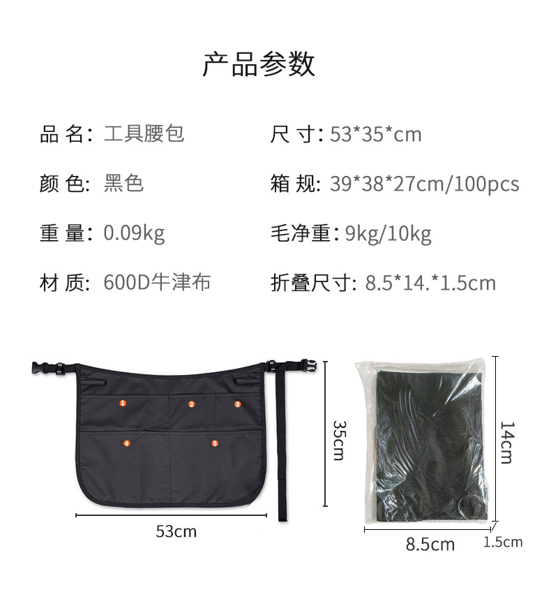 | Uso principal | Bolsa de cinturón multifuncional, bolsa de cinturón ligera, cinturón ligero, bolsa de cinturón para herramientas integrales |