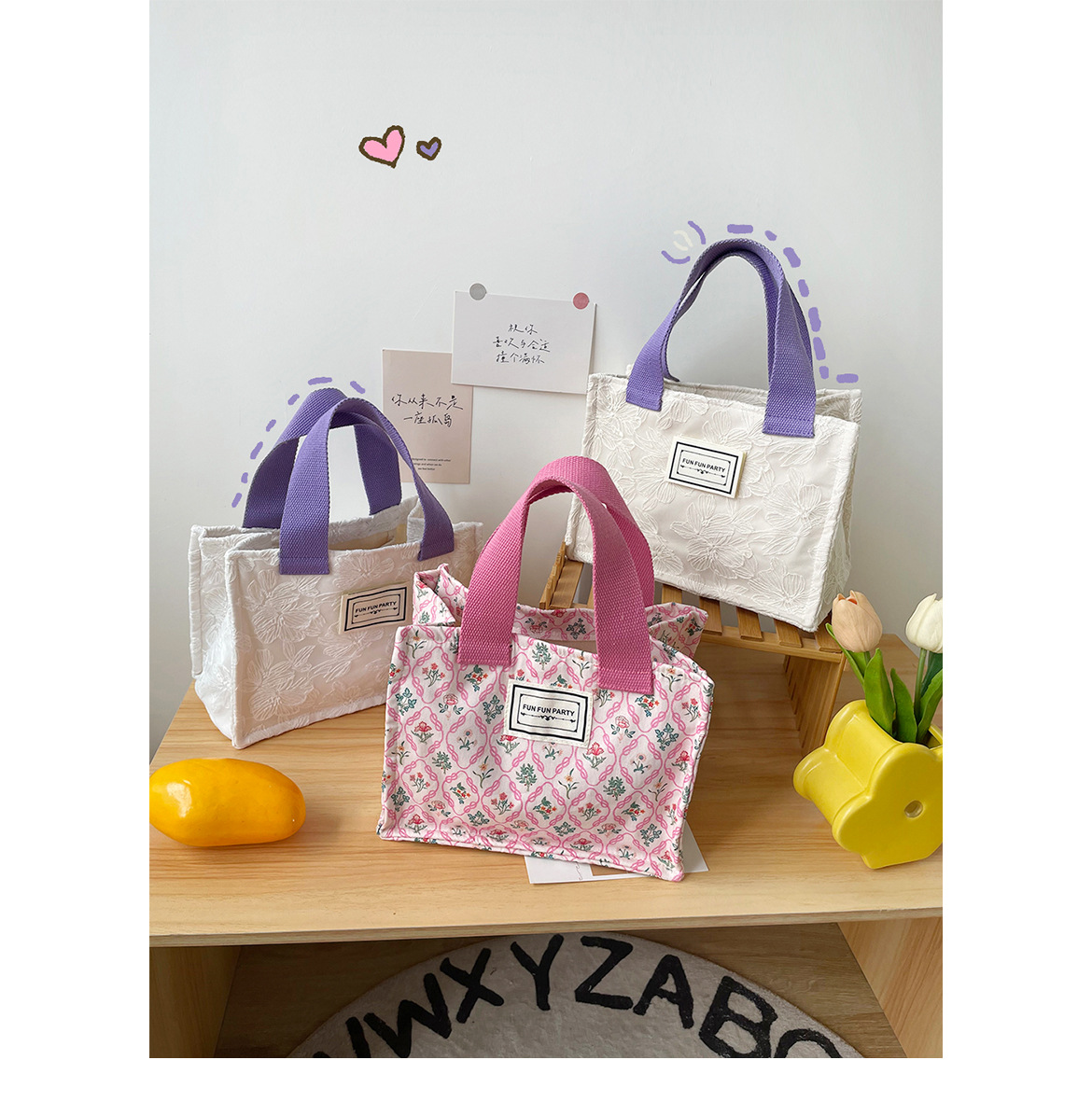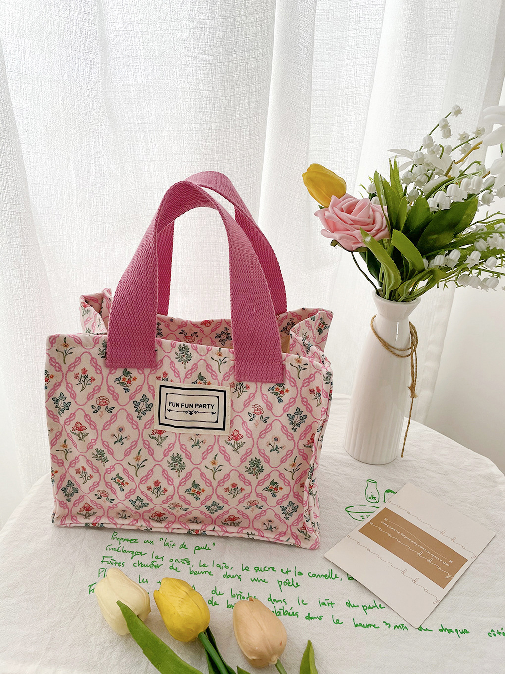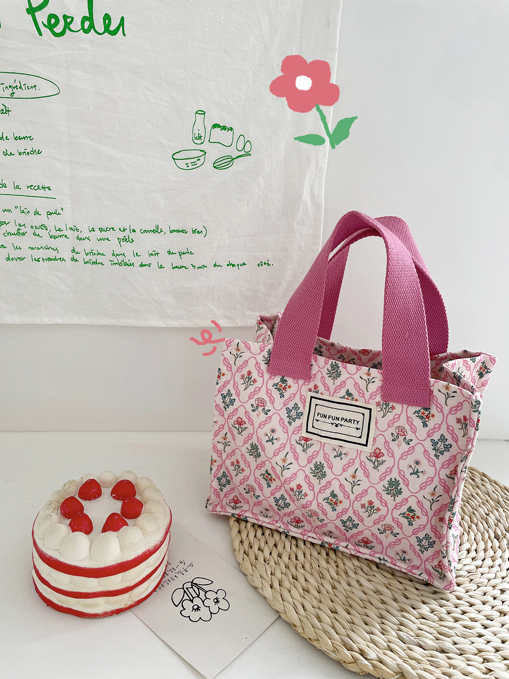 Amazon transfronteriza de suministro/picnic floral caja de almuerzo bolsa de todo el partido de la mano que lleva pequeña bolsa cuadrada de encaje bolsa de almacenamiento bolsa de la momia