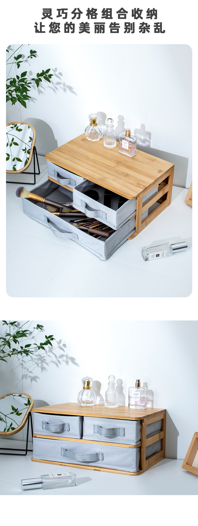Caja de almacenamiento de cosméticos escritorio de alta sensación tocador lápiz labial ceja caja de acabado de gran capacidad de productos de cuidado de la piel estante