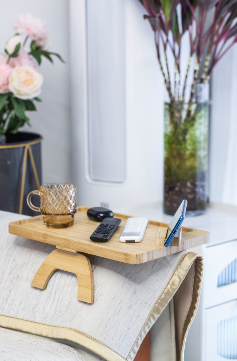 Sofá reposabrazos lado bandeja lado varios móviles mesas de té mini tablero esquina de café doméstico varios estantes ajustables