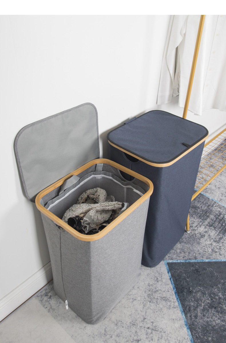 Cubo de almacenamiento de anillo de bambú Oxford tela cesta de lavandería cesta de almacenamiento de ropa sucia cesta plegable productos calientes transfronterizos