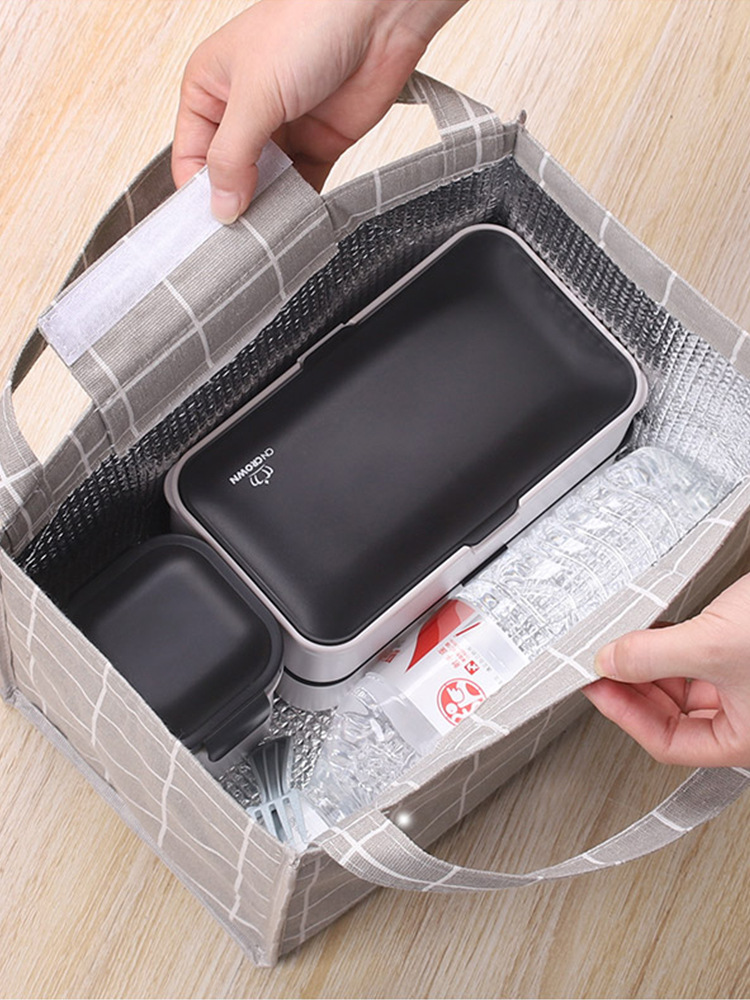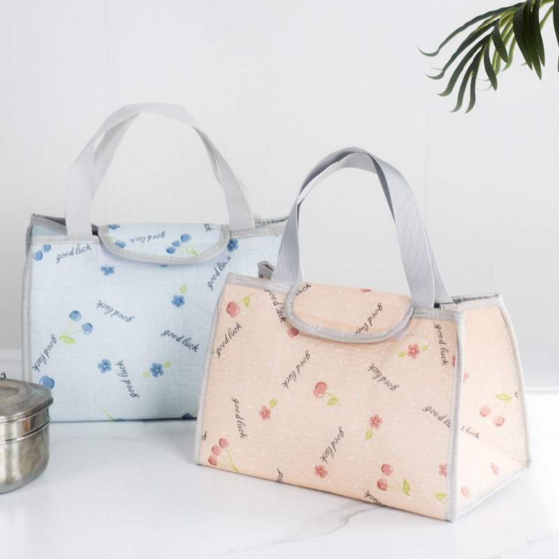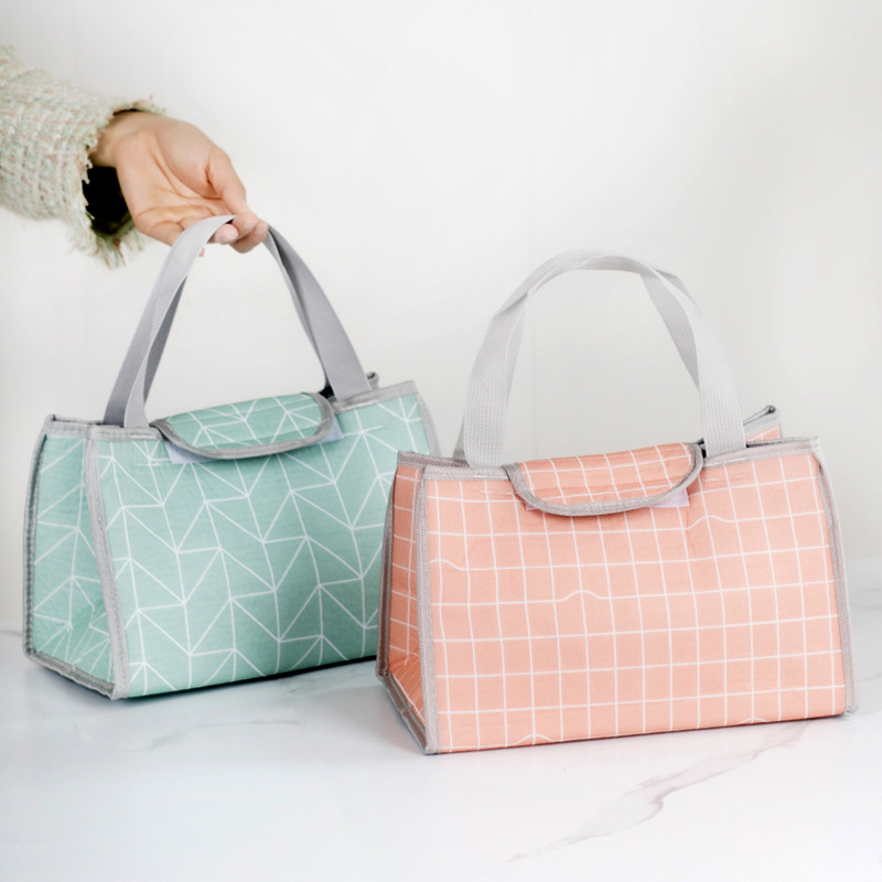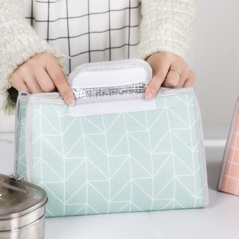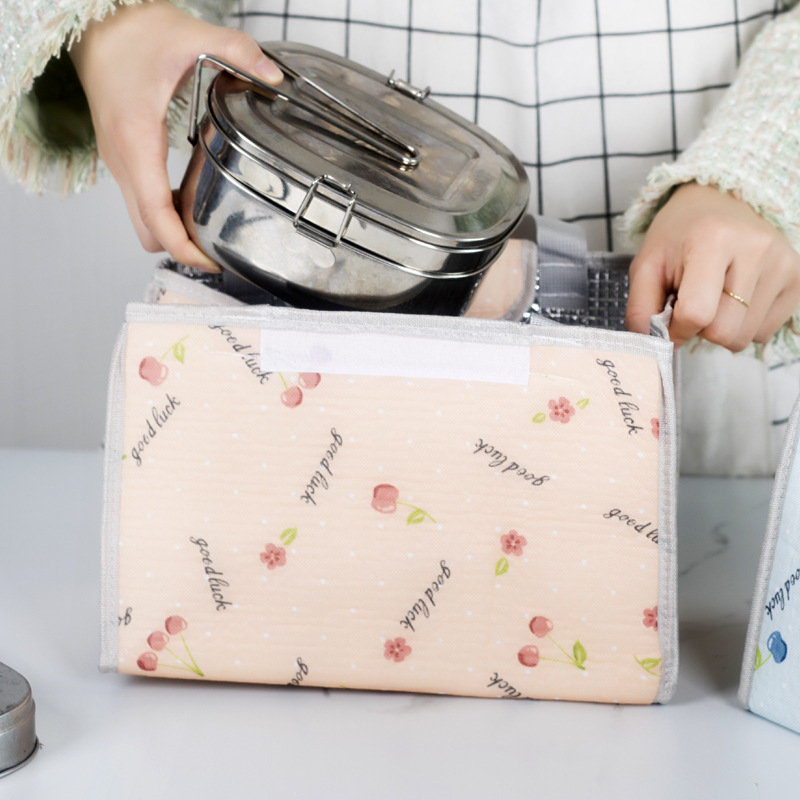 Chuangde bolsa de papel de aluminio portátil a rayas con arroz bolsa de lona de transporte de mano caja de almuerzo engrosada bolsa de aislamiento caja de almuerzo Bento estudiante