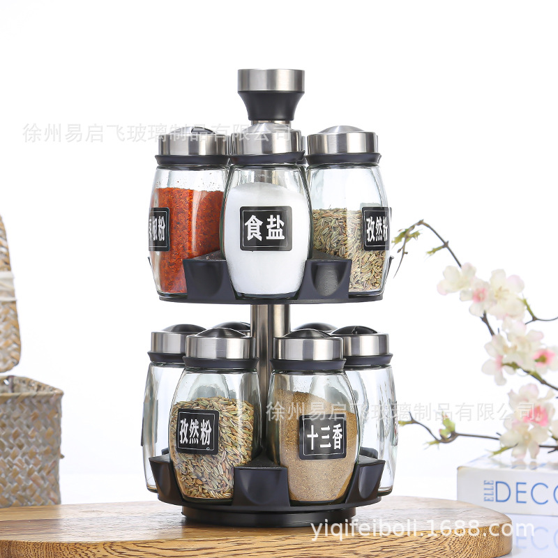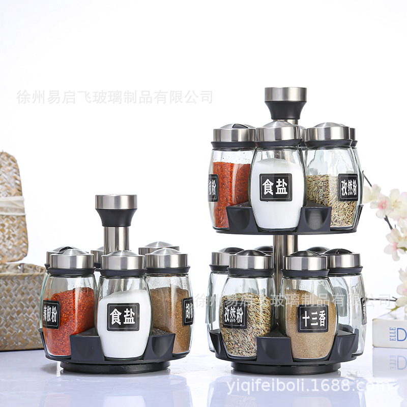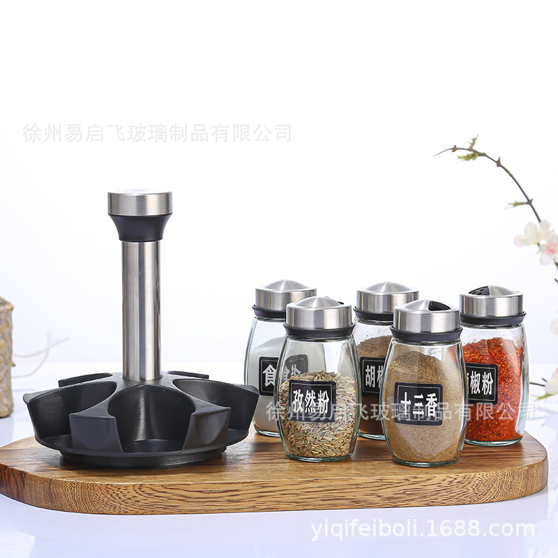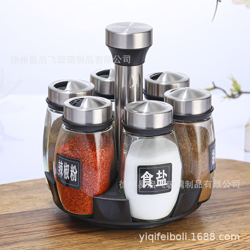 Botella de condimento al por mayor, base giratoria, botella de condimento, set de 7 piezas, botella de condimento de cocina, conjunto de botella de condimento