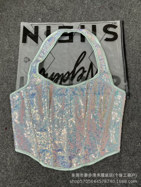 SHEIN transfronterizo inns gradiente sequilla pesada hueso de pescado de verano europeo y americano ropa de vestir chicas calientes discoteca calle envuelto pecho
