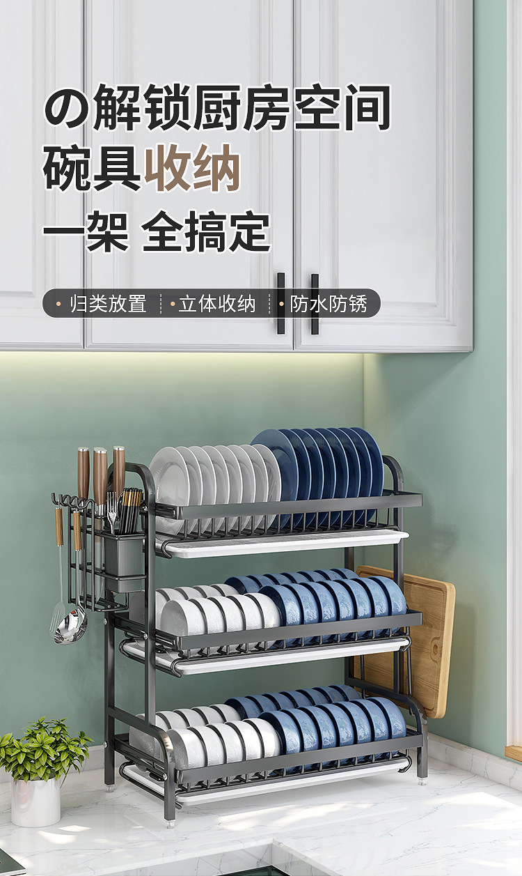 Estante de platos de acero inoxidable, armario de cubierta doméstico, estante de almacenamiento de platos y palillos de doble capa, estante de almacenamiento de platos y platos, estante de cocina, estante de agua de platos y palillos