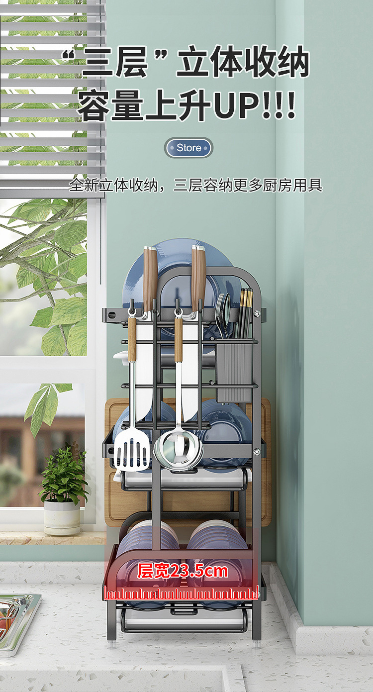Estante de cocina de fábrica, estante de almacenamiento de platos, estante de almacenamiento de platos, estante de drenaje de agua, estante de palillos, estante de cuchillos multifuncional, armario de platos