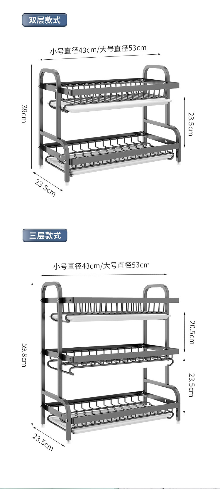 [Negro] 42CM de tres capas - lujo (con soporte de cuchillo + palillos + soporte de placa adhesiva + gancho)
