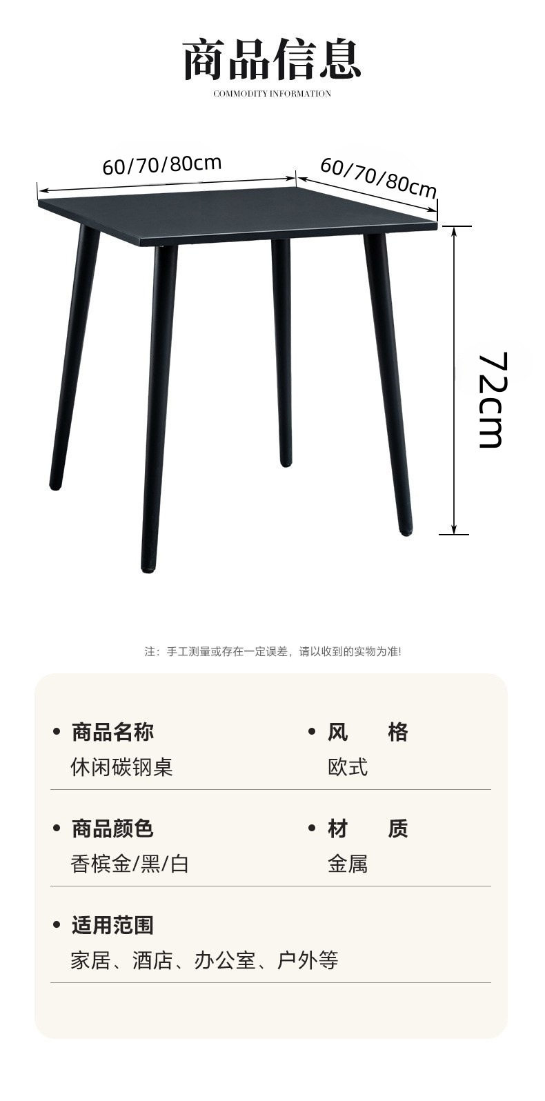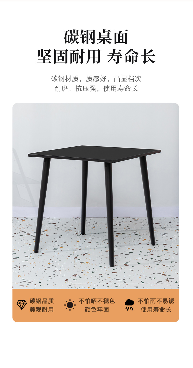Nórdico minimalista balcón al aire libre mesa de acero al carbono decoración al aire libre comedor patio leche tienda de té mesa cuadrada de café
