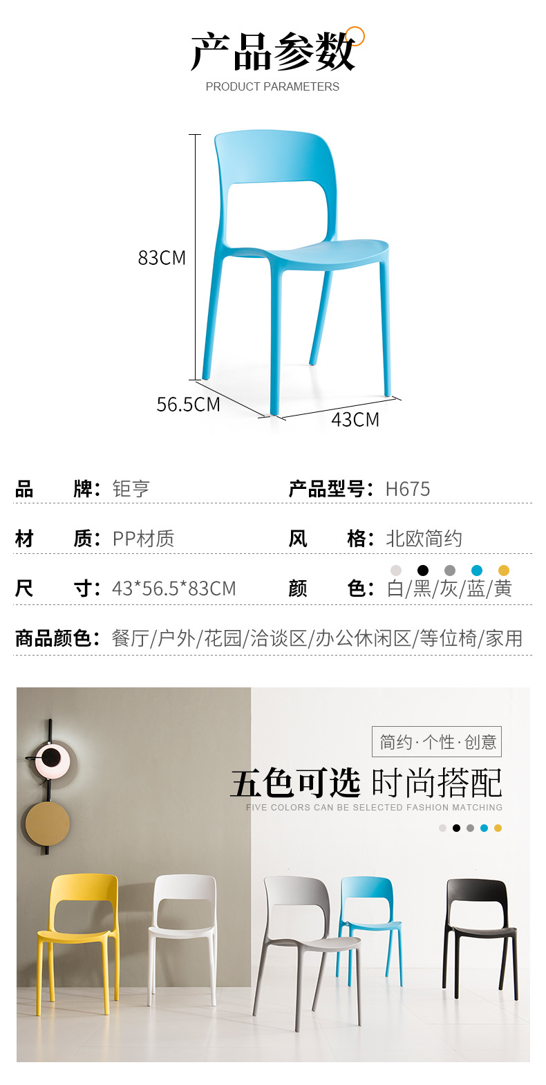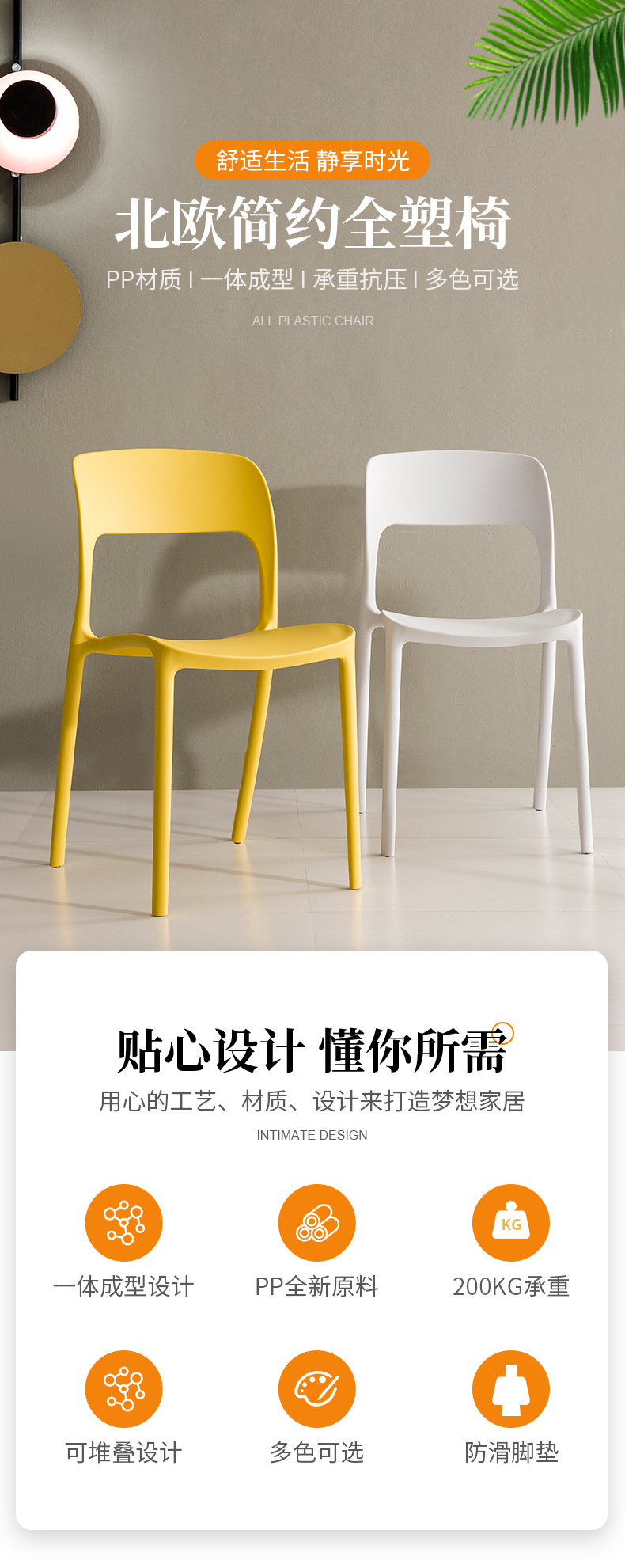 Silla de Comedor con Respaldo de PP para Uso Doméstico, Actividades al Aire Libre, Soporte para Proyectos, Silla de Entrenamiento, Silla de Plástico de Foshan, Diseñada Especialmente para un Estilo Simple y Moderno.