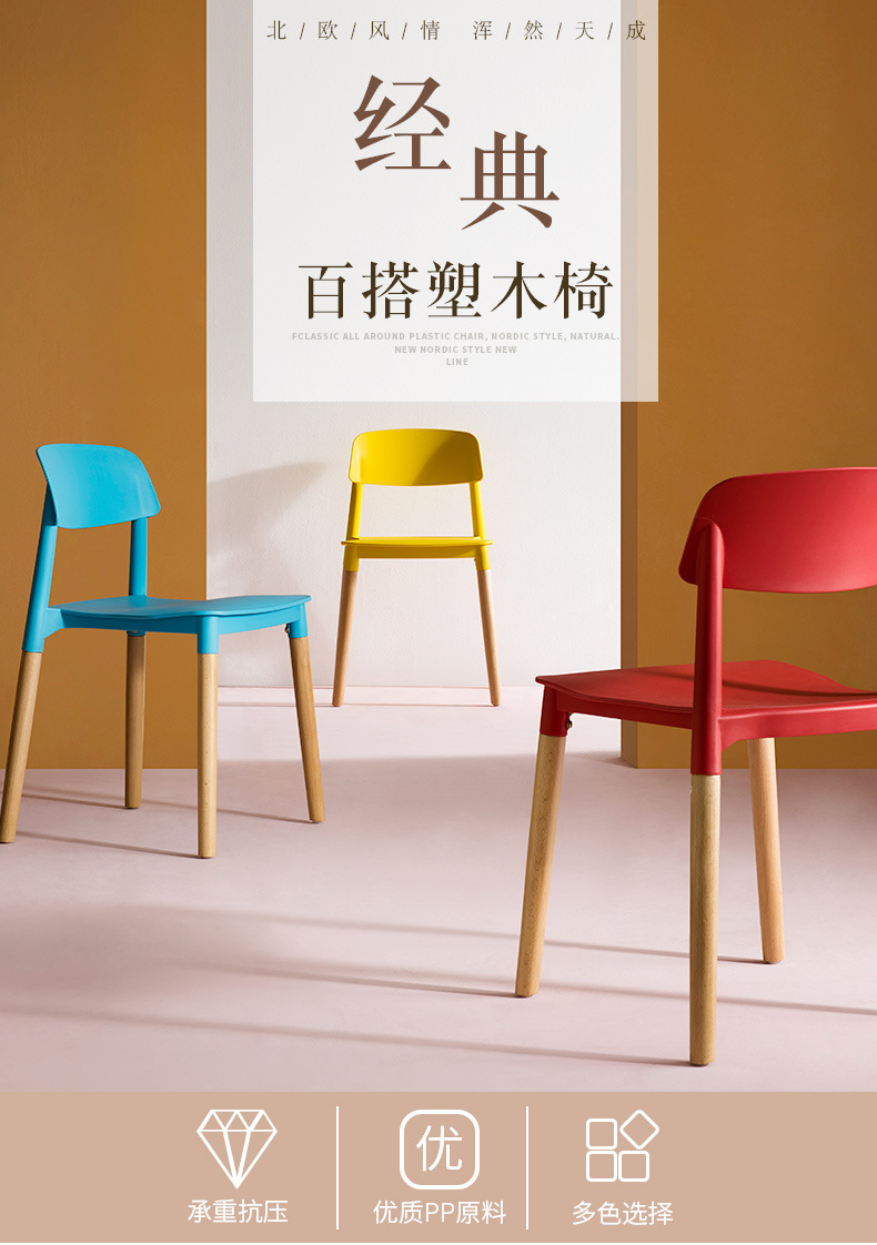 Silla de plástico nórdico moderno creativo simple ocio respaldo silla postre tienda de té de leche restaurante comedor silla al por mayor