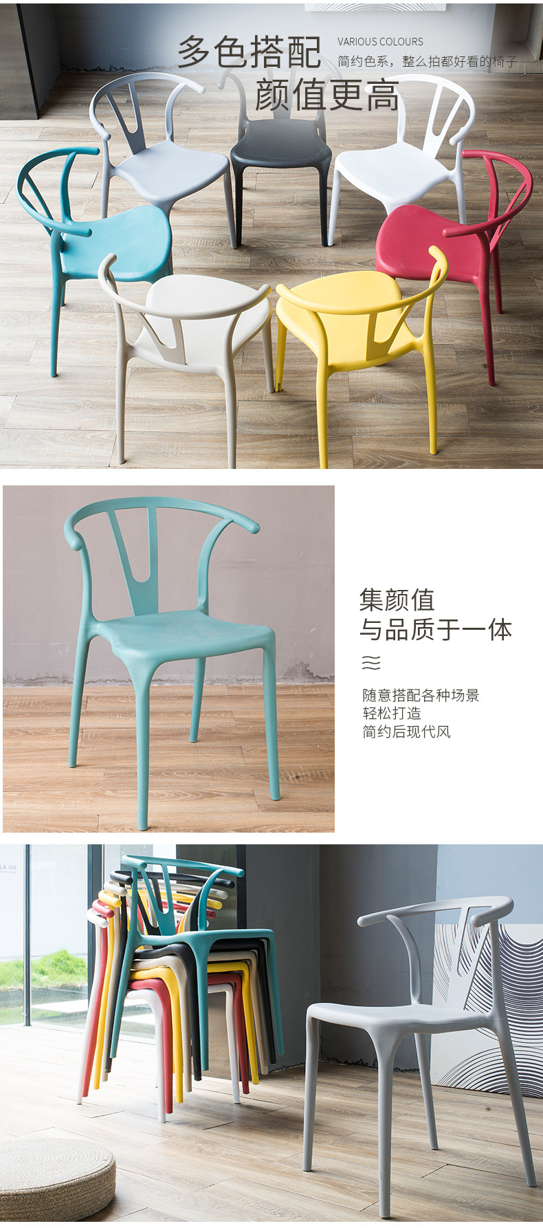 Venta al por mayor transfronteriza silla de plástico nórdico cafetería Silla de ocio leche té postre tienda Internet celebridad respaldo mesa y silla