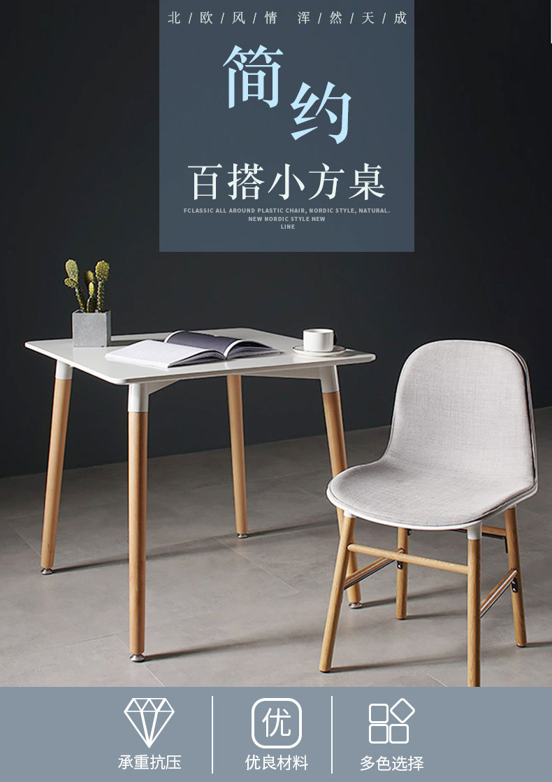 Moderno casual simple mesa cuadrada cafetería leche tienda de té mesa cuadrada de plástico moda nórdica pierna de haya mesa de comedor suministro directo
