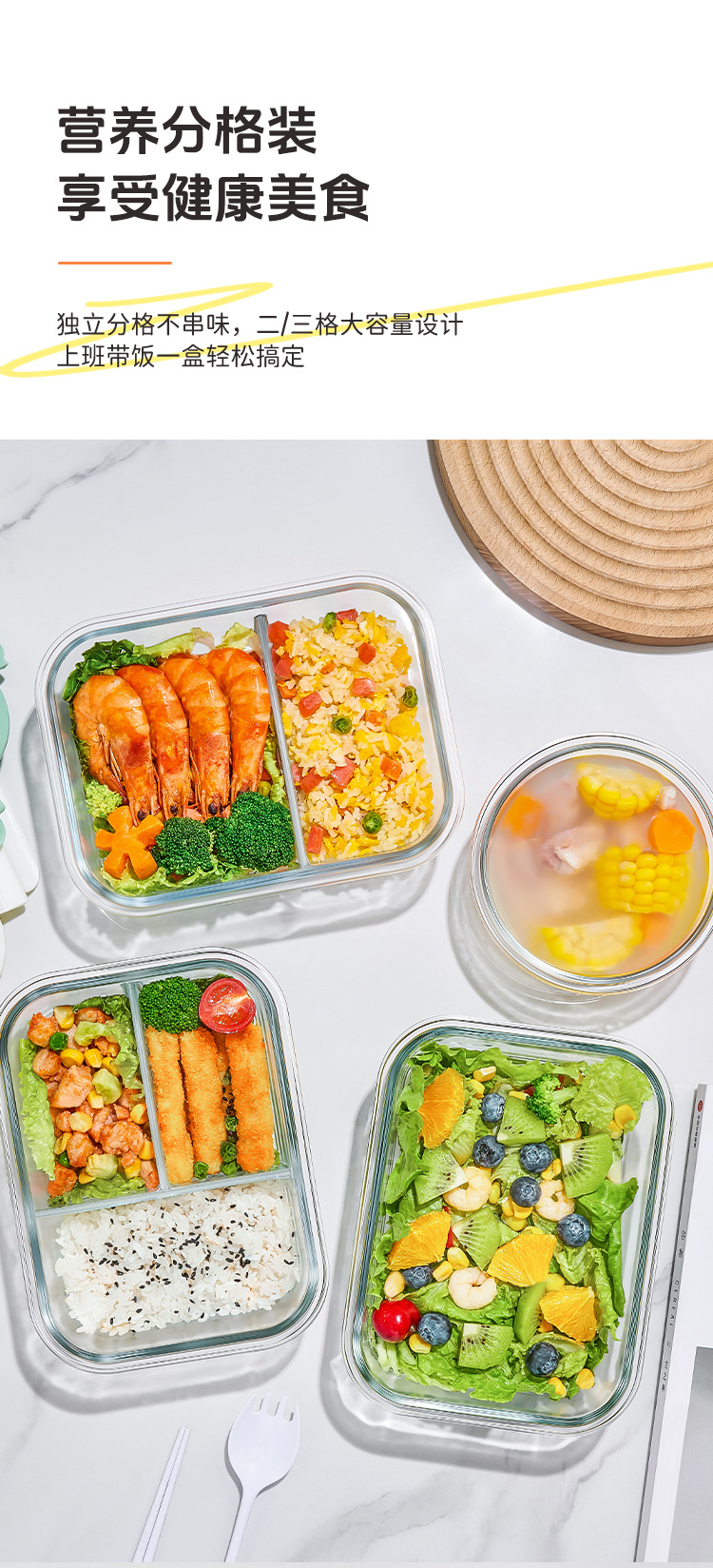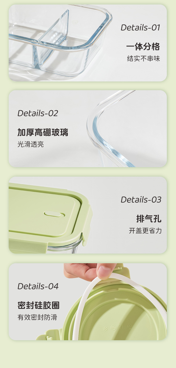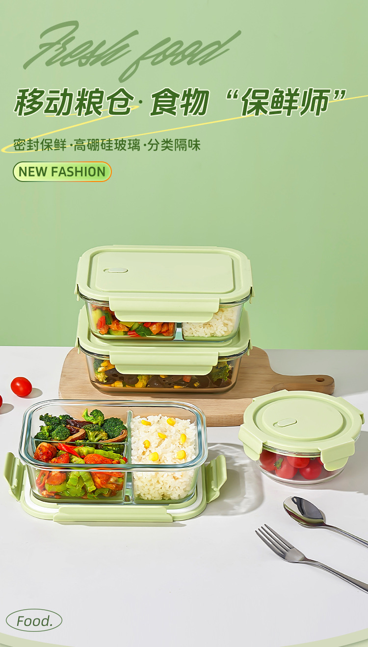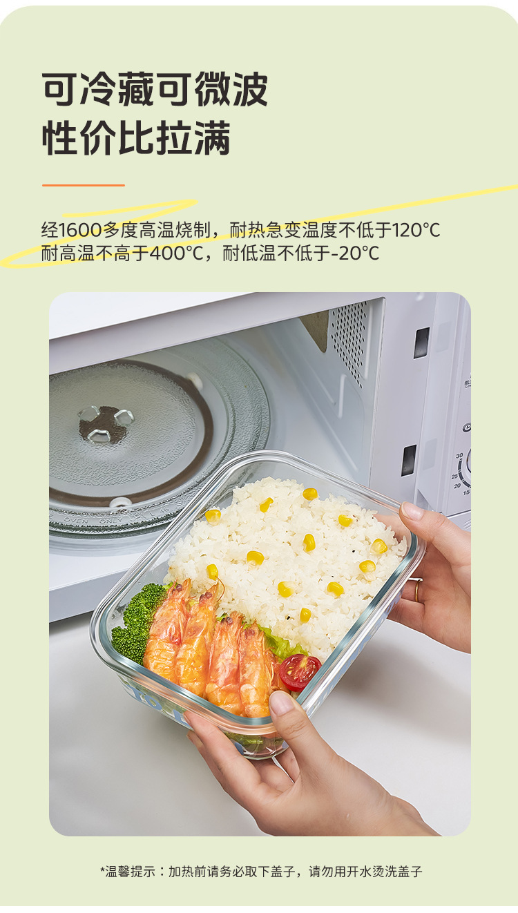 Caja de almuerzo de vidrio especial con cubierta para microondas de gran capacidad para empleados de oficina con arroz sellado a prueba de fugas de almuerzo
