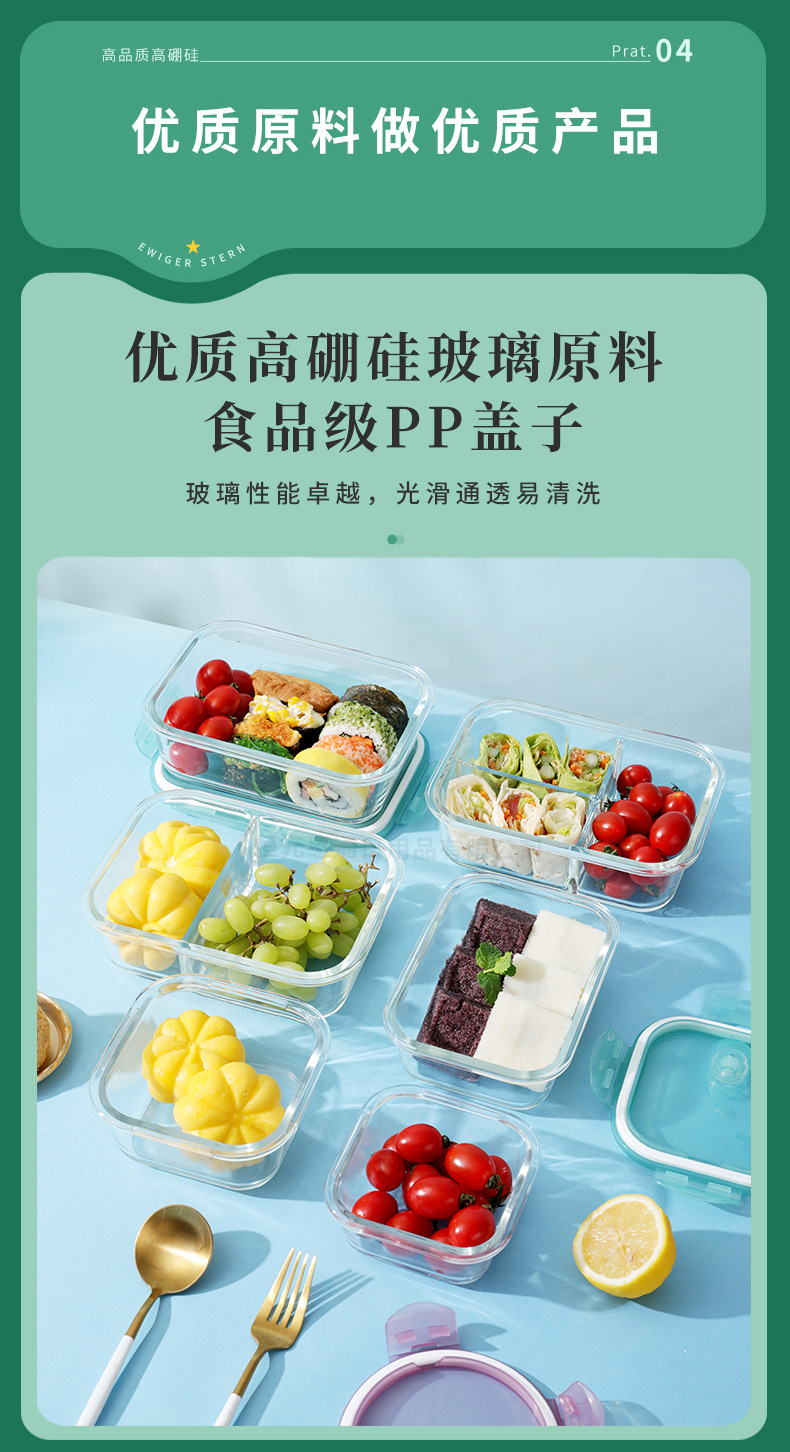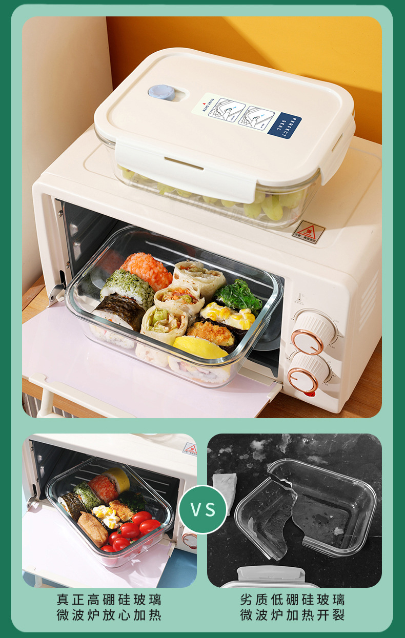 Caja de almuerzo de vidrio puede entrar en el horno de microondas caja de preservación de alta borosilicona personalizada para los estudiantes de oficina con la caja de almuerzo dividida sin sabor