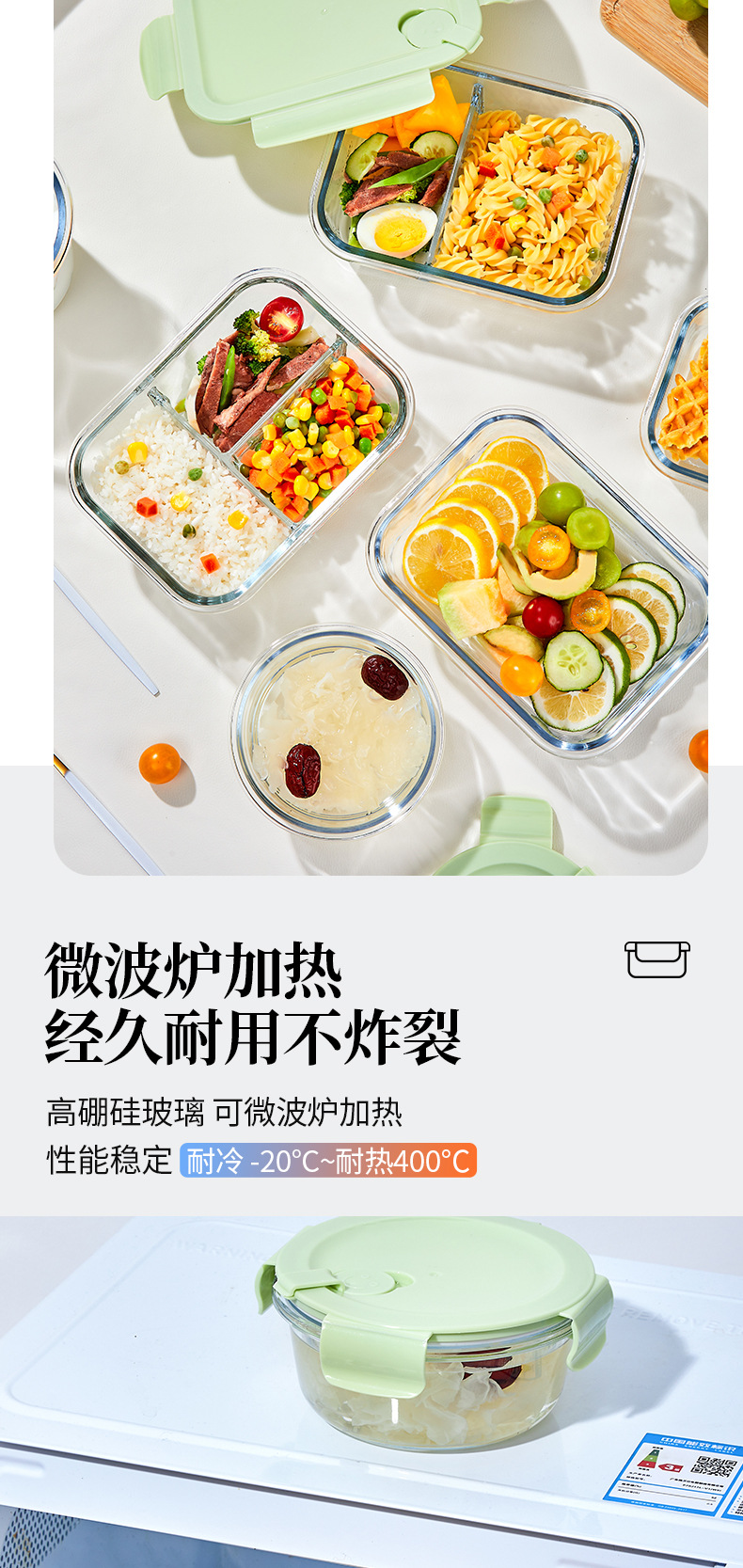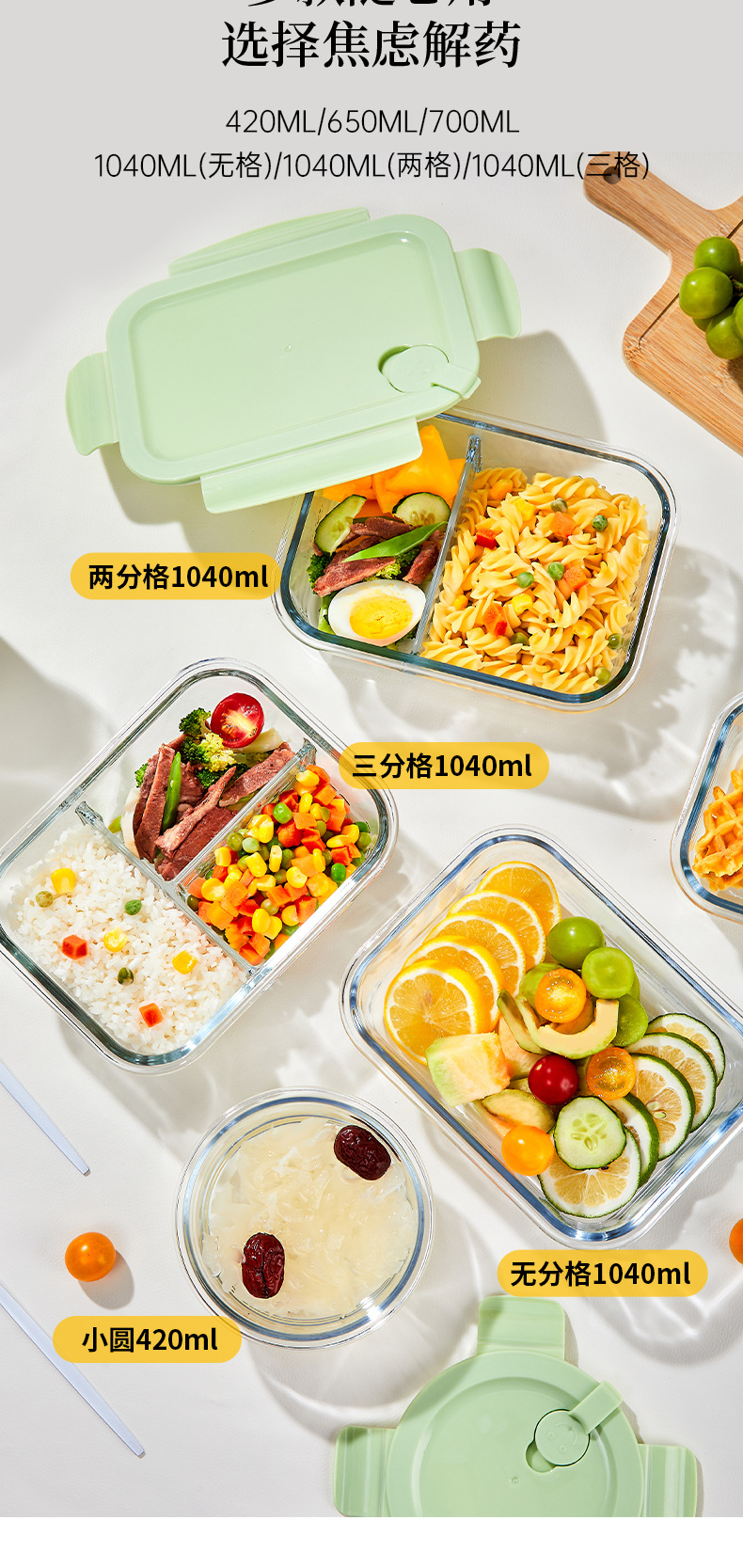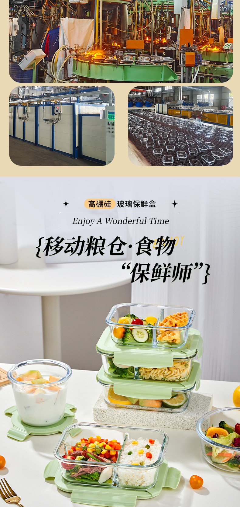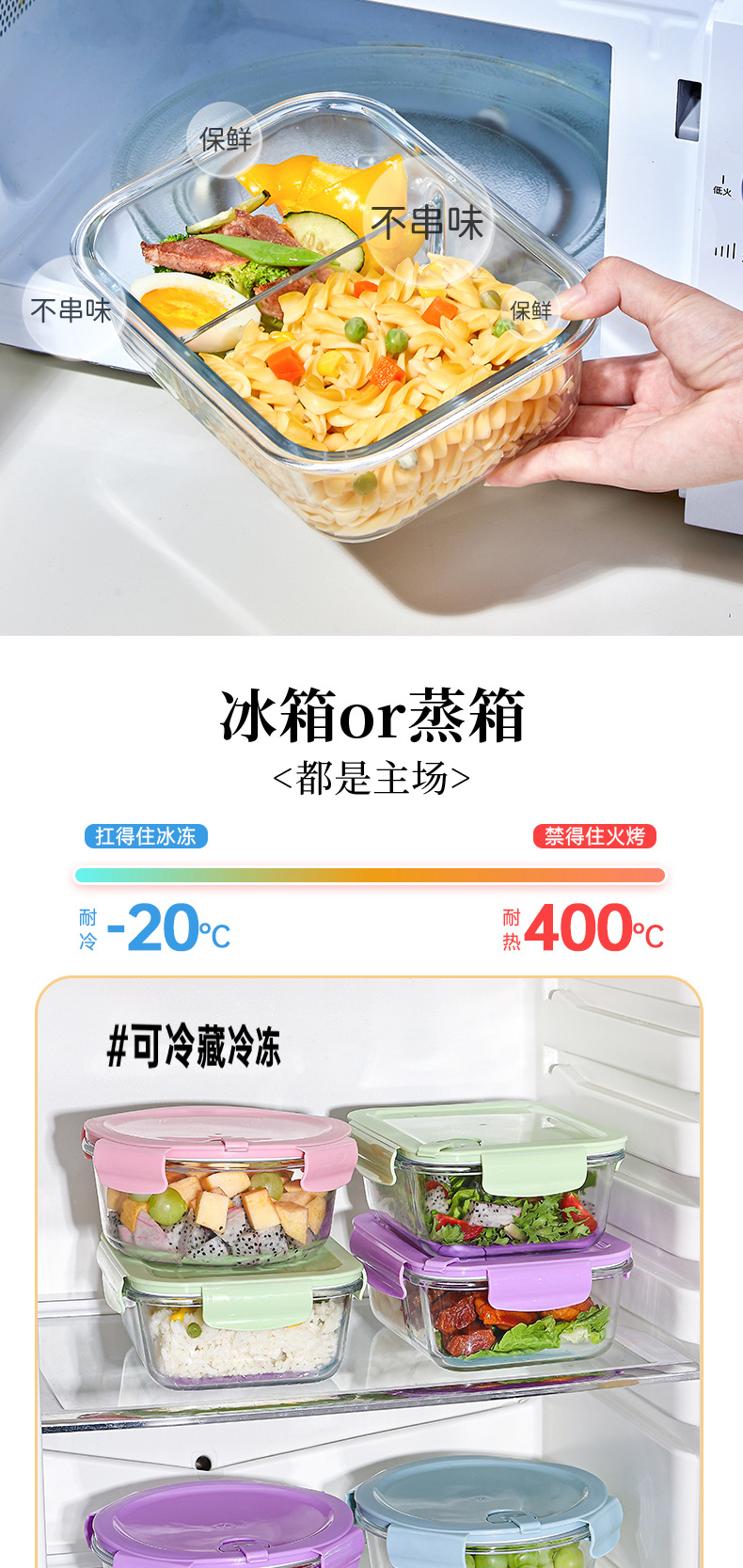 Fábrica directa caja de almacenamiento de vidrio calentamiento de microondas caja de comedor resistente a altas temperaturas cubiertos oficina caja de almuerzo