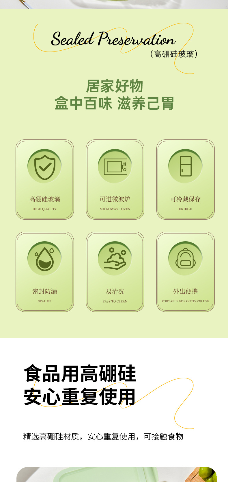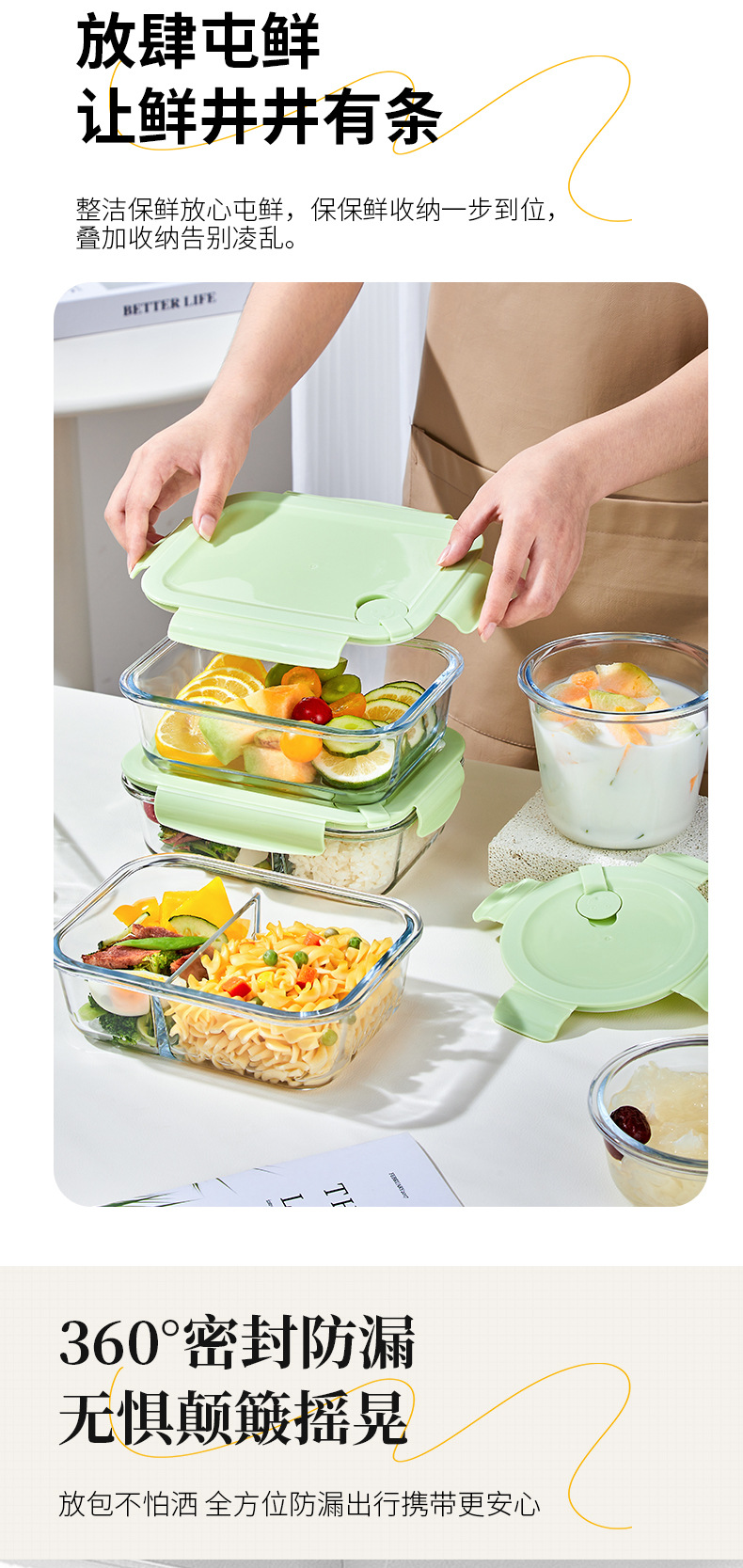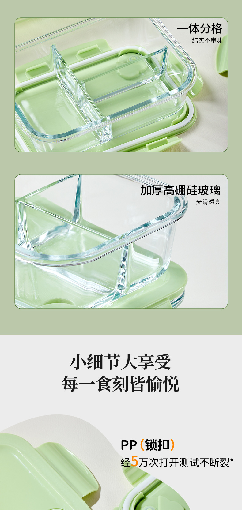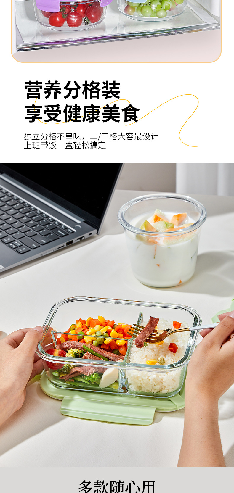 Fábrica directa caja de almacenamiento de vidrio calentamiento de microondas caja de comedor resistente a altas temperaturas cubiertos oficina caja de almuerzo