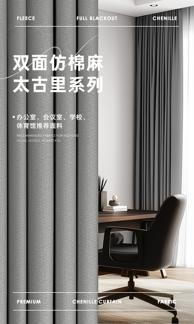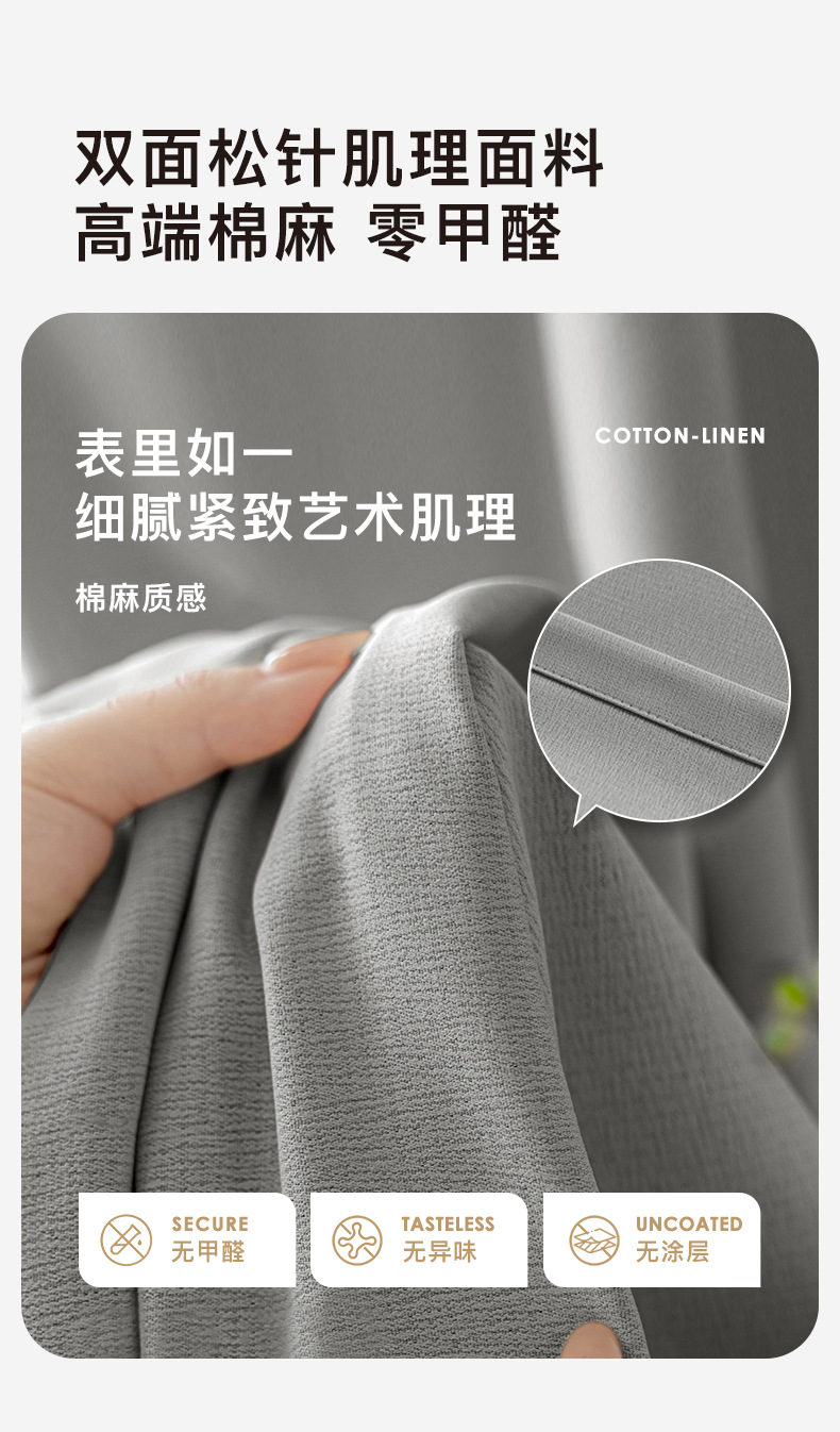 Venta directa de fábrica de cortinas de cáñamo de algodón de imitación de Amazon transfronterizas, productos terminados, cortinas de alto opacas para la oficina de ingeniería escolar de comercio exterior